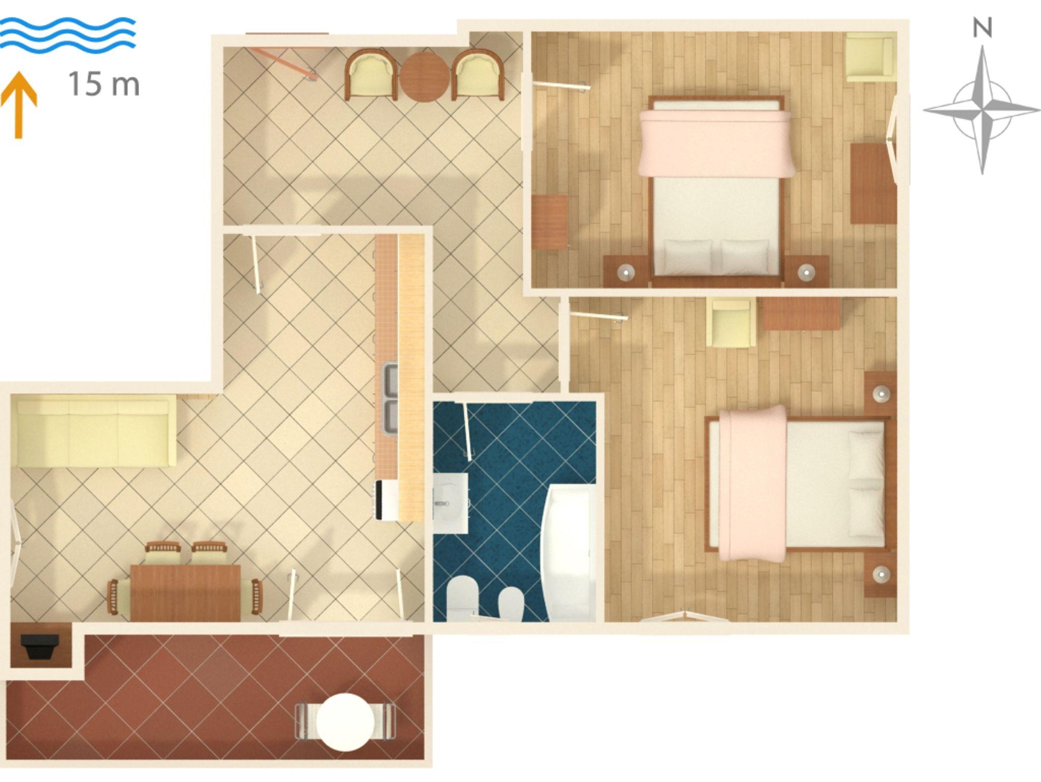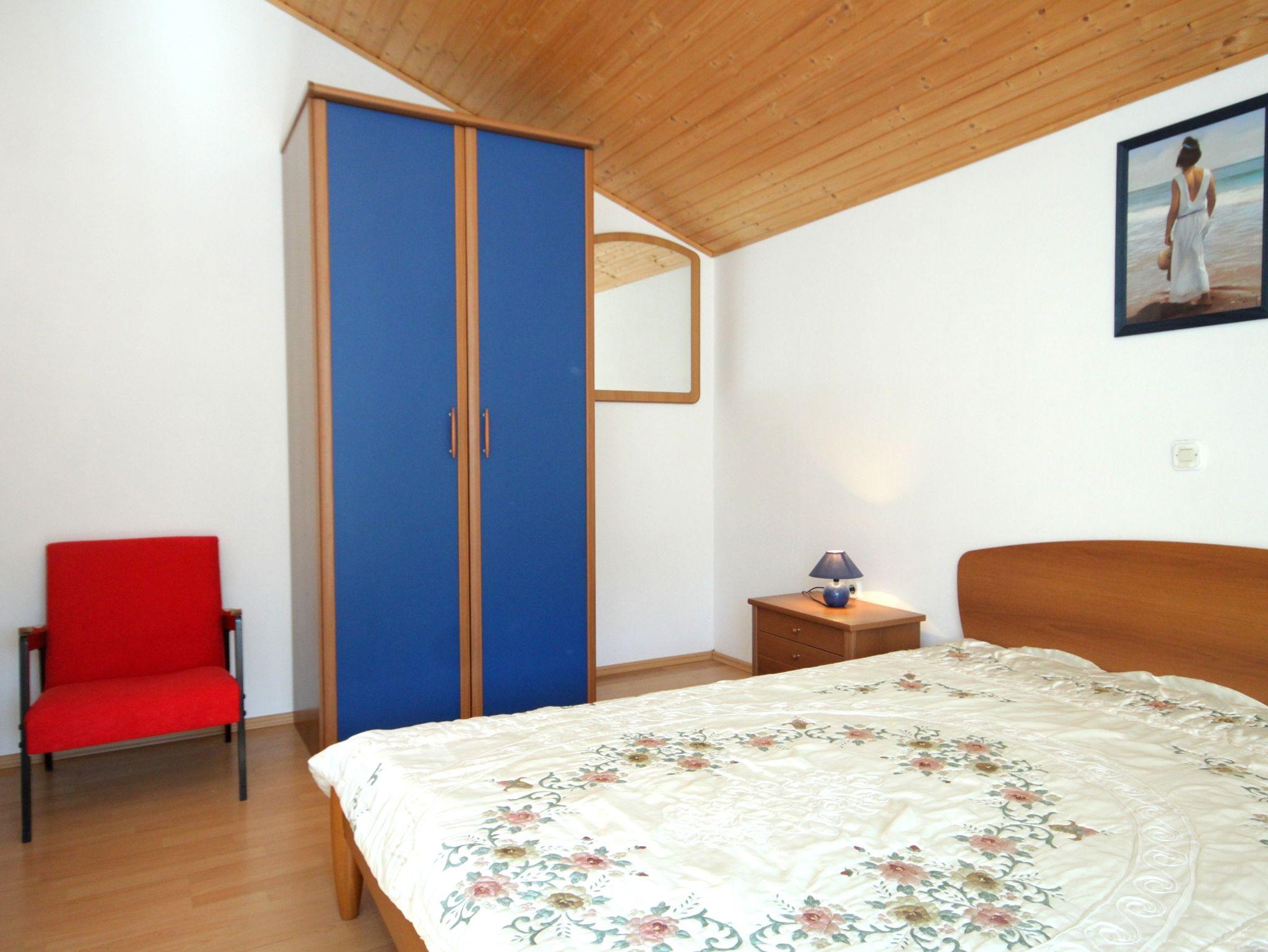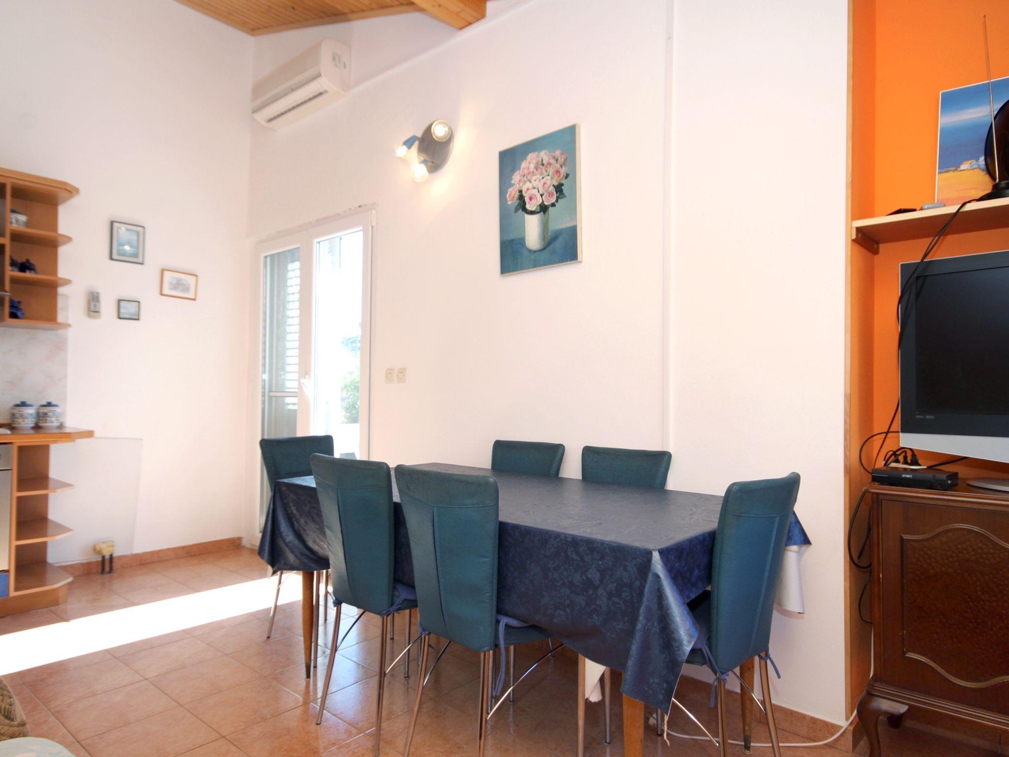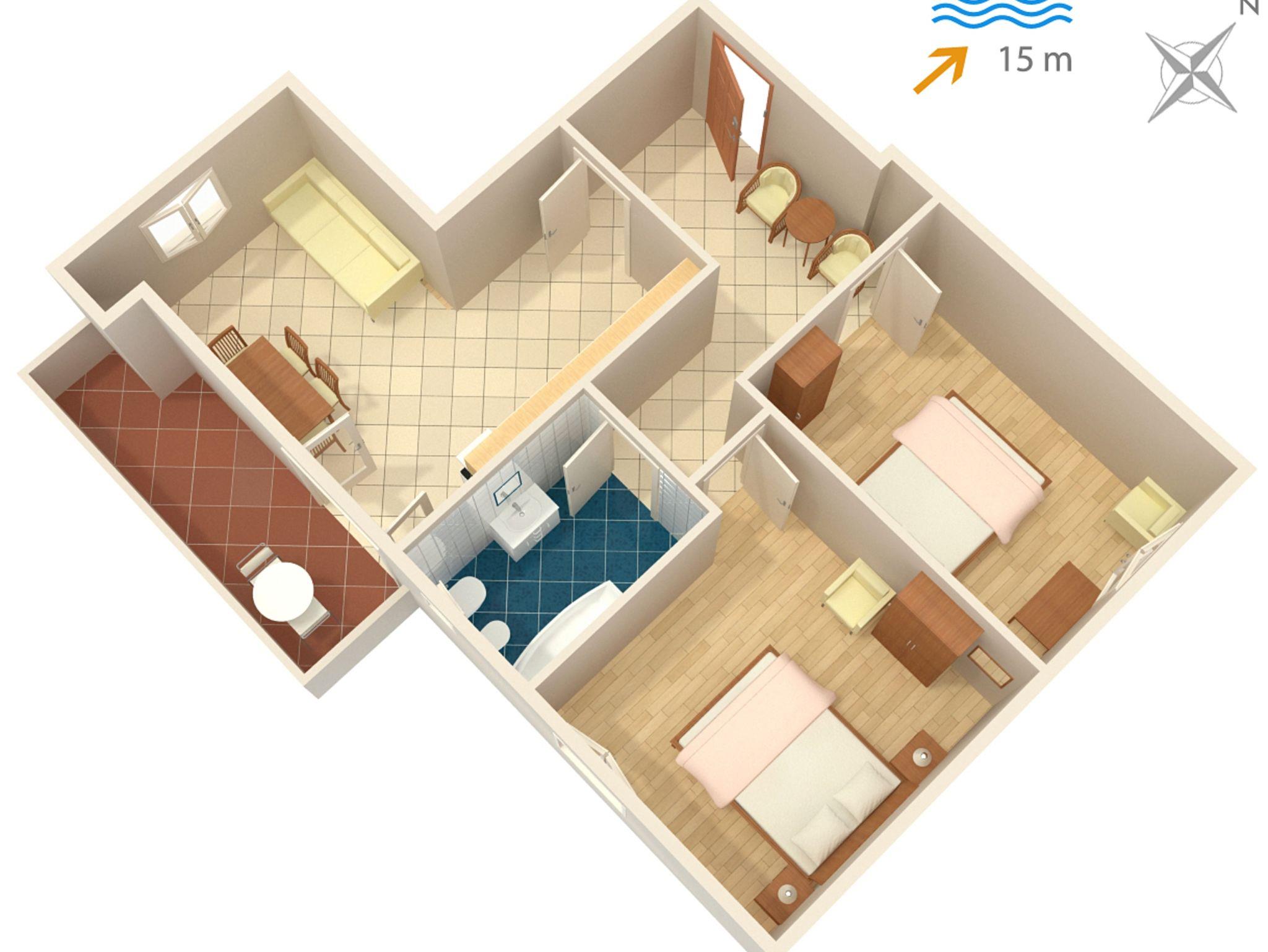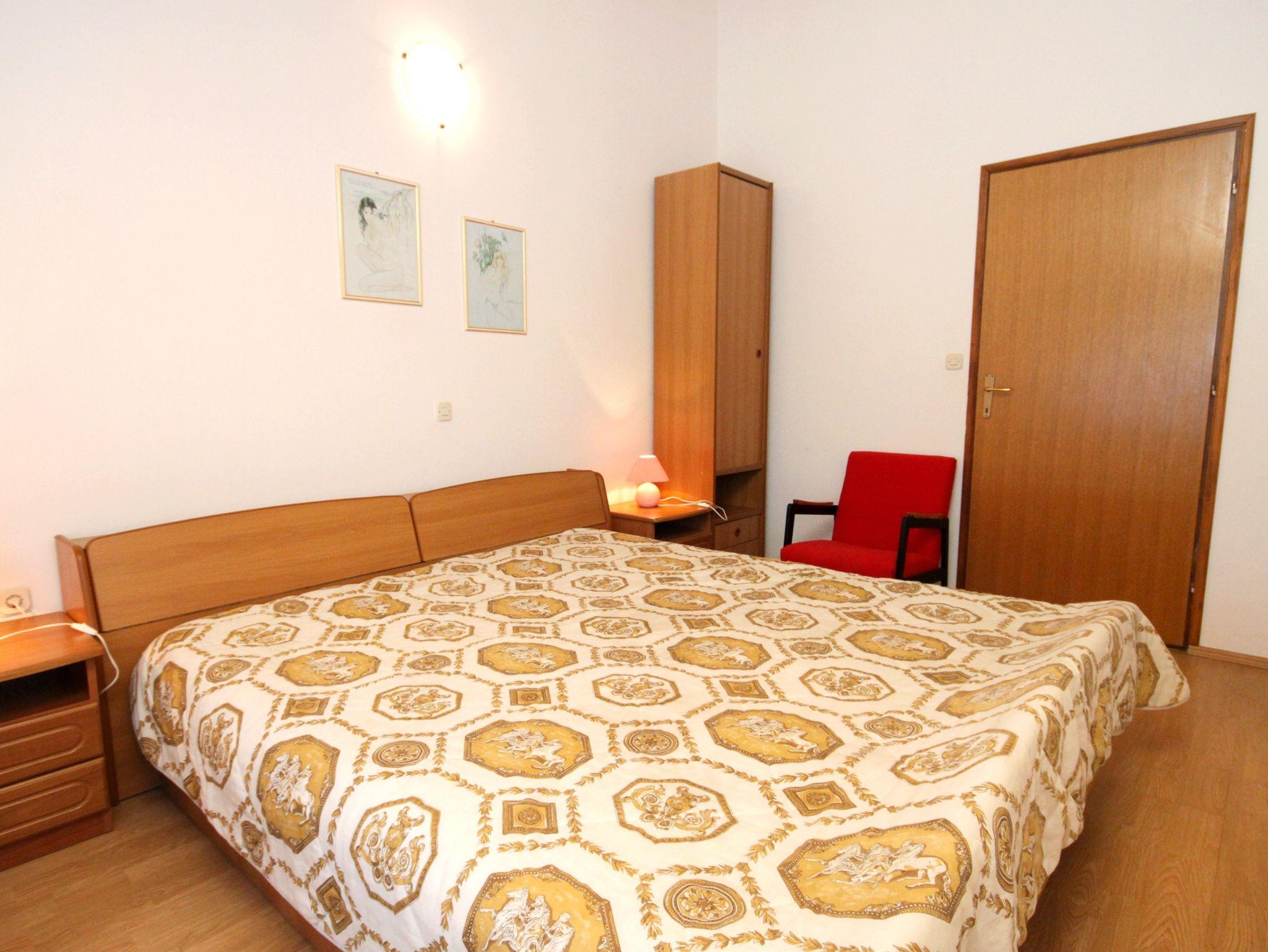Ferienwohnung bietet Platz für 5 Gäste. Die Betten sind in Schlafzimmern, die es 2 gibt, und in Wohnzimmer, innerhalb einer Gesamtfläche von 57m2, angeordnet. Die Gäste haben einen eigenen Balkon zur Verfügung, auf der sie in warmen Sommernächten genießen können. Es ist erlaubt, Speisen auf dem Gemeinschafts-Grill vorzubereiten. IM PREIS INBEGRIFFEN: Kurtaxe, Endreinigung, Klimatisierung, Internet, Bootsanlegeplatz, Bügeleisen, Bügelbrett, Föhn. VERBINDLICHE ZUSÄTZLICHE KOSTEN: Aufzahlung für Kurzaufenthalte (prozentualer Zuschlag pro Nächtigungsanzahl: 30% - 1, 20% - 2, 10% - 3). Die Verfügbarkeit zusätzlicher Dienstleistungen in Ihrem reservierten Termin und die Preise derselben (falls nicht aufgeführt) müssen im Voraus überprüft werden. Zusätzliche Dienstleistungen die in der Zahlungsaufforderung nicht aufgeführt sind werden direkt beim Vermieter bezahlt, angenommen der Gast nutzt auch diese. Ermäßigung auf den Grundpreis: Gratistag 14=13 (bei einem Aufenthalt von 14 Tagen oder mehr erhalten Sie einen Gratistag für den Aufenthalt bis 31.12.26).