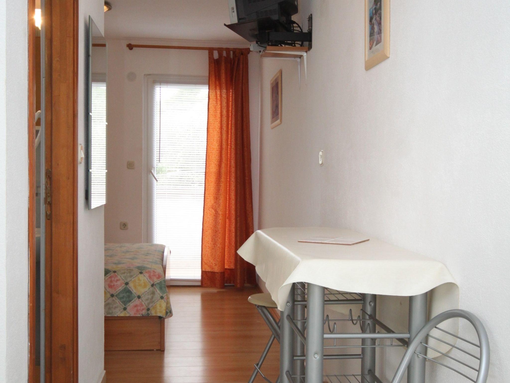 Studio bietet Platz für 2 Gäste. Die Betten sind in Schlafzimmern, die es 1 gibt, innerhalb einer Gesamtfläche von 21m2, angeordnet. Die Gäste haben eine eigene Terrasse zur Verfügung, auf der sie in warmen Sommernächten genießen können. Das Studio-Apartment bietet Meerblick. Es ist erlaubt, Speisen auf dem Gemeinschafts-Grill vorzubereiten. In der Unterkunftseinheit besteht die Möglichkeit des Mitbringens von Haustieren gegen Aufpreis. IM PREIS INBEGRIFFEN: Kurtaxe, Endreinigung, Klimatisierung, Parkplatz, Internet, Wäschewaschen, Bootsanlegeplatz, Bügeleisen, Bügelbrett, Föhn. VERBINDLICHE ZUSÄTZLICHE KOSTEN: Aufzahlung für Kurzaufenthalte (prozentualer Zuschlag pro Nächtigungsanzahl: 30% - 1, 20% - 2, 10% - 3). UNVERBINDLICHE ZUSÄTZLICHE KOSTEN: Haustiere (10,00 € pro Nacht). Die Verfügbarkeit zusätzlicher Dienstleistungen in Ihrem reservierten Termin und die Preise derselben (falls nicht aufgeführt) müssen im Voraus überprüft werden. Zusätzliche Dienstleistungen die in der Zahlungsaufforderung nicht aufgeführt sind werden direkt beim Vermieter bezahlt, angenommen der Gast nutzt auch diese.