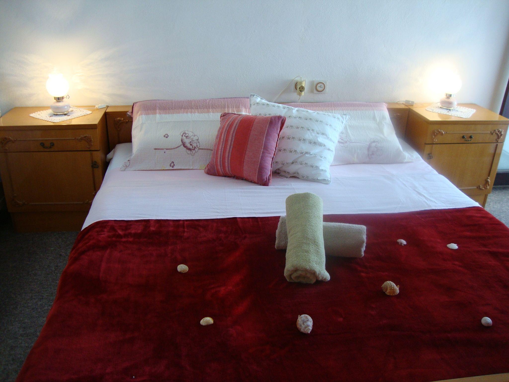 Ferienwohnung bietet Platz für 6 Gäste. Die Betten sind in Schlafzimmern, die es 3 gibt, innerhalb einer Gesamtfläche von 92m2, angeordnet. Die Gäste haben eine eigene Terrasse zur Verfügung, auf der sie in warmen Sommernächten genießen können. Das Apartment bietet Meerblick. Es ist erlaubt, Speisen auf dem Gemeinschafts-Grill vorzubereiten. IM PREIS INBEGRIFFEN: Kurtaxe, Endreinigung, Klimatisierung, Parkplatz, Internet, Kinderbett, Bügeleisen, Bügelbrett, Föhn. VERBINDLICHE ZUSÄTZLICHE KOSTEN: Aufzahlung für Kurzaufenthalte (prozentualer Zuschlag pro Nächtigungsanzahl: 30% - 1, 20% - 2, 10% - 3). Die Verfügbarkeit zusätzlicher Dienstleistungen in Ihrem reservierten Termin und die Preise derselben (falls nicht aufgeführt) müssen im Voraus überprüft werden. Zusätzliche Dienstleistungen die in der Zahlungsaufforderung nicht aufgeführt sind werden direkt beim Vermieter bezahlt, angenommen der Gast nutzt auch diese.
