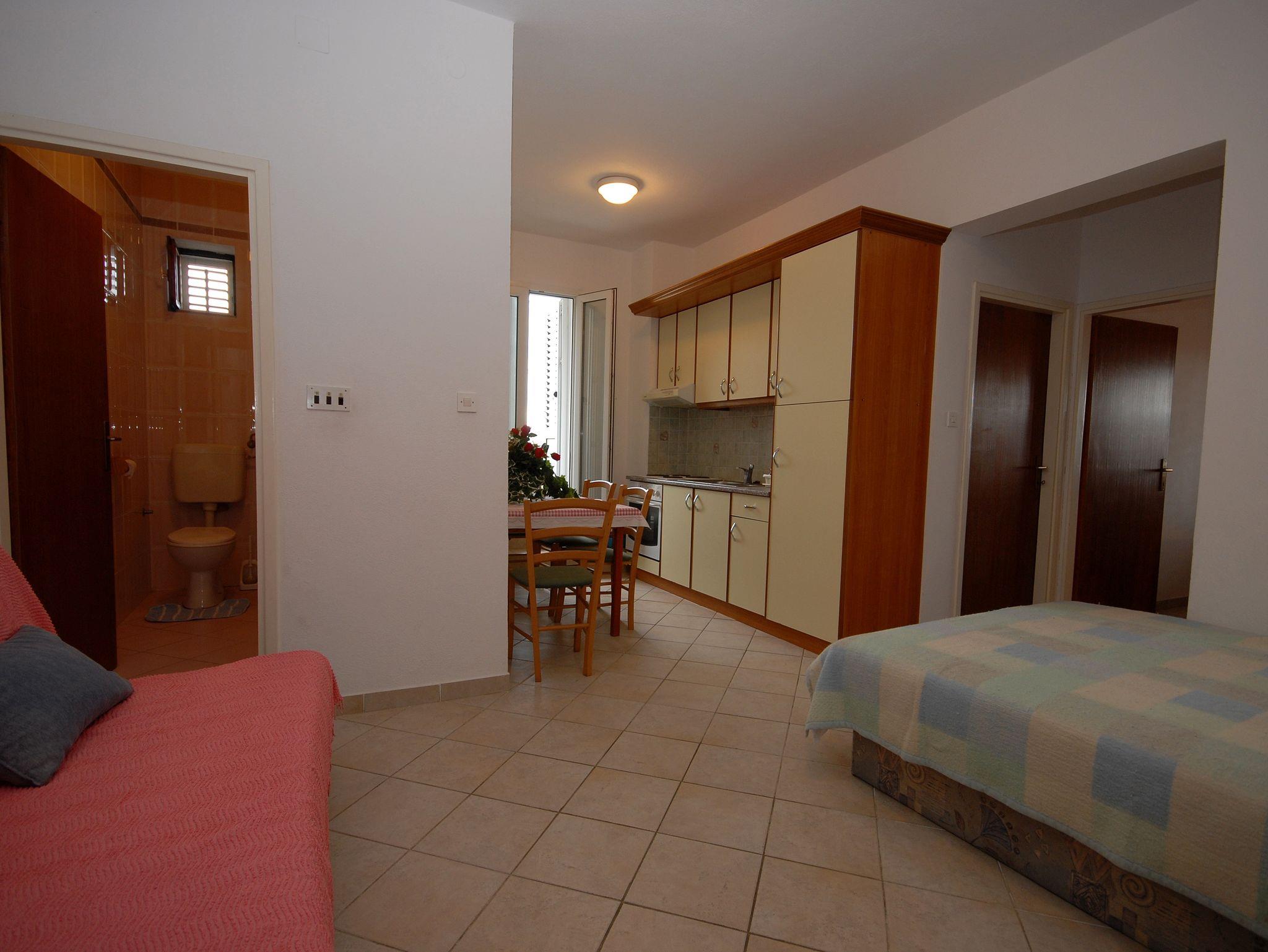 Ferienwohnung bietet Platz für 4 Gäste. Die Betten sind in Schlafzimmern, die es 2 gibt, innerhalb einer Gesamtfläche von 40m2, angeordnet. Die Gäste haben einen eigenen Balkon zur Verfügung, auf der sie in warmen Sommernächten genießen können. Das Apartment bietet Meerblick. Es ist erlaubt, Speisen auf dem Gemeinschafts-Grill vorzubereiten. Während ihres Aufenthalts können Gäste das gemeinsam zur Nutzung stehende Schwimmbad benutzen. IM PREIS INBEGRIFFEN: Kurtaxe, Endreinigung, Pool, Parkplatz, Internet, Kinderbett, 2 Kinderbettchen (im Preis enthalten). VERBINDLICHE ZUSÄTZLICHE KOSTEN: Aufzahlung für Kurzaufenthalte (prozentualer Zuschlag pro Nächtigungsanzahl: 30% - 1, 20% - 2, 10% - 3). UNVERBINDLICHE ZUSÄTZLICHE KOSTEN: Klimatisierung (0,50 € pro Stunde), Wäschewaschen (5,00 € Waschen). Die Verfügbarkeit zusätzlicher Dienstleistungen in Ihrem reservierten Termin und die Preise derselben (falls nicht aufgeführt) müssen im Voraus überprüft werden. Zusätzliche Dienstleistungen die in der Zahlungsaufforderung nicht aufgeführt sind werden direkt beim Vermieter bezahlt, angenommen der Gast nutzt auch diese.