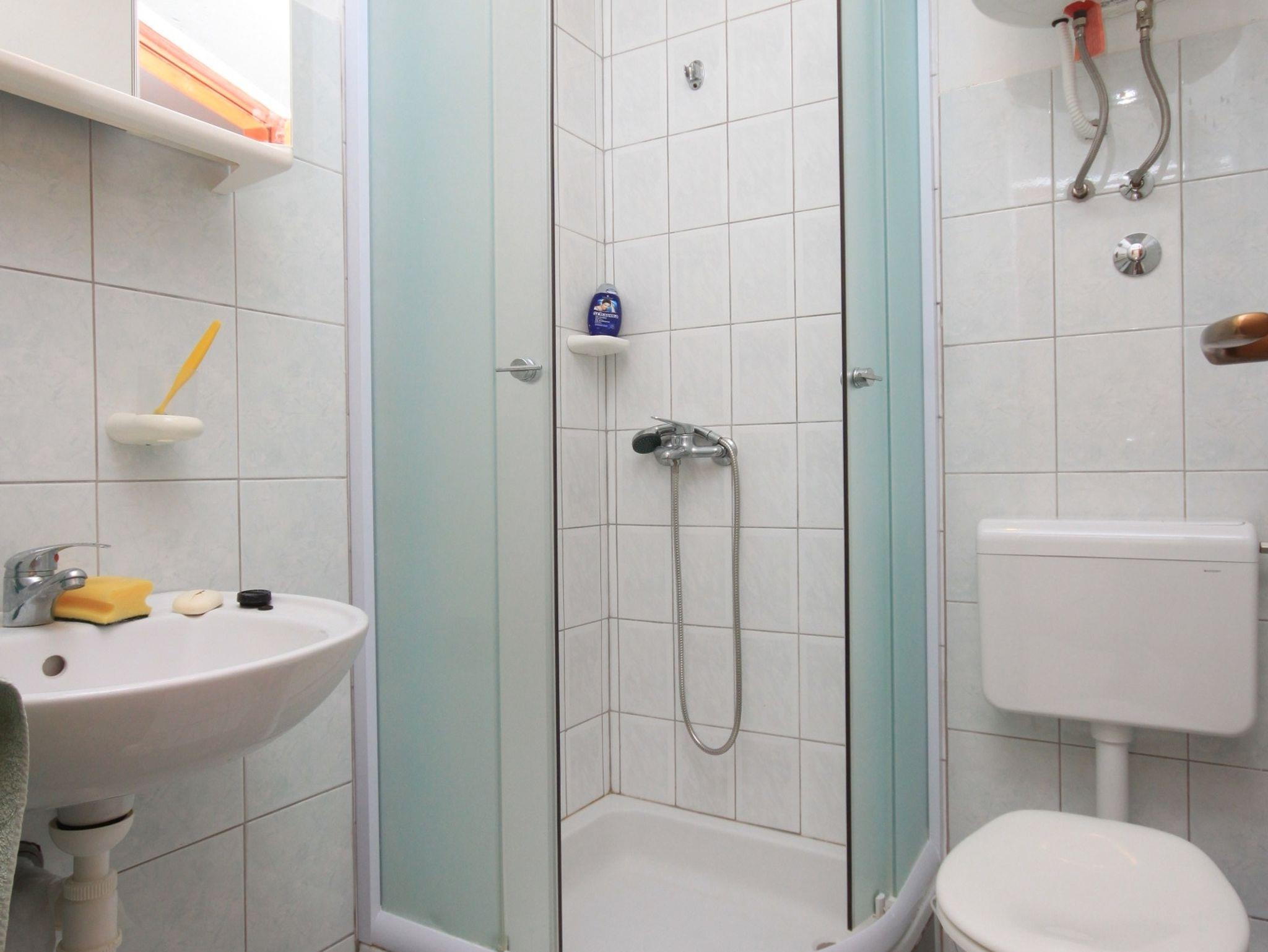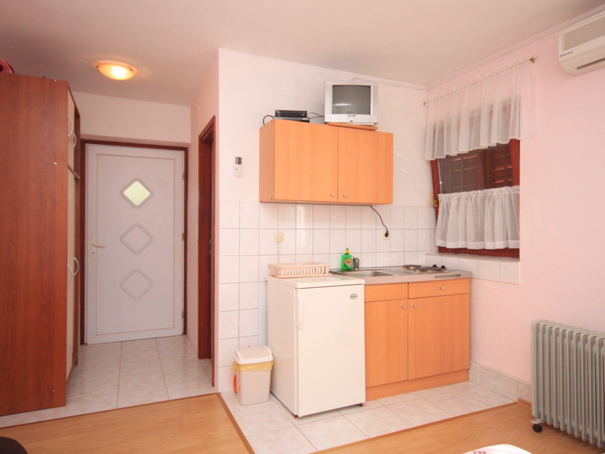 Studio bietet Platz für 2 Gäste. Die Betten sind in Schlafzimmern, die es 1 gibt, innerhalb einer Gesamtfläche von 18m2, angeordnet. Die Gäste haben eine eigene Terrasse zur Verfügung, auf der sie in warmen Sommernächten genießen können. Das Studio-Apartment bietet Meerblick. Es ist erlaubt, Speisen auf dem Gemeinschafts-Grill vorzubereiten. In der Unterkunftseinheit besteht die Möglichkeit des Mitbringens von Haustieren gegen Aufpreis. IM PREIS INBEGRIFFEN: Kurtaxe, Endreinigung, Klimatisierung, Parkplatz, Internet, Bügeleisen, Bügelbrett, Föhn. VERBINDLICHE ZUSÄTZLICHE KOSTEN: Aufzahlung für Kurzaufenthalte (prozentualer Zuschlag pro Nächtigungsanzahl: 30% - 1, 20% - 2, 10% - 3). UNVERBINDLICHE ZUSÄTZLICHE KOSTEN: Haustiere (10,00 € pro Nacht). Die Verfügbarkeit zusätzlicher Dienstleistungen in Ihrem reservierten Termin und die Preise derselben (falls nicht aufgeführt) müssen im Voraus überprüft werden. Zusätzliche Dienstleistungen die in der Zahlungsaufforderung nicht aufgeführt sind werden direkt beim Vermieter bezahlt, angenommen der Gast nutzt auch diese. Ermäßigung auf den Grundpreis: Gratistag 14=13 (bei einem Aufenthalt von 14 Tagen oder mehr erhalten Sie einen Gratistag für den Aufenthalt bis 31.12.26).