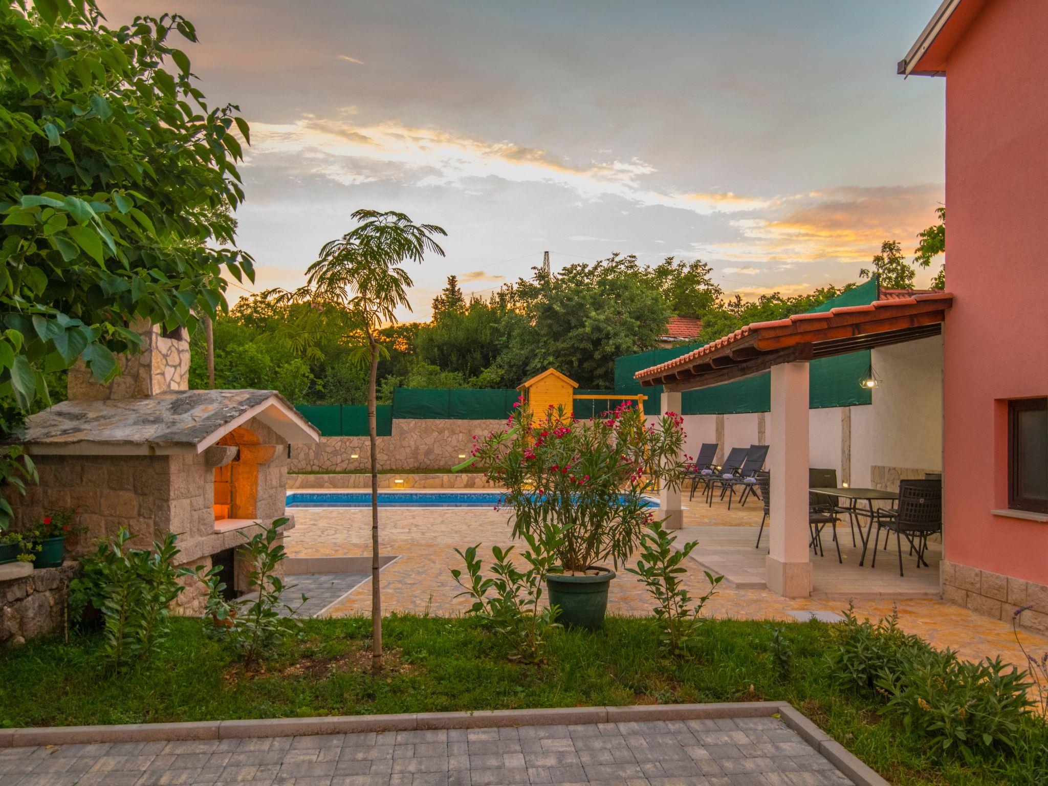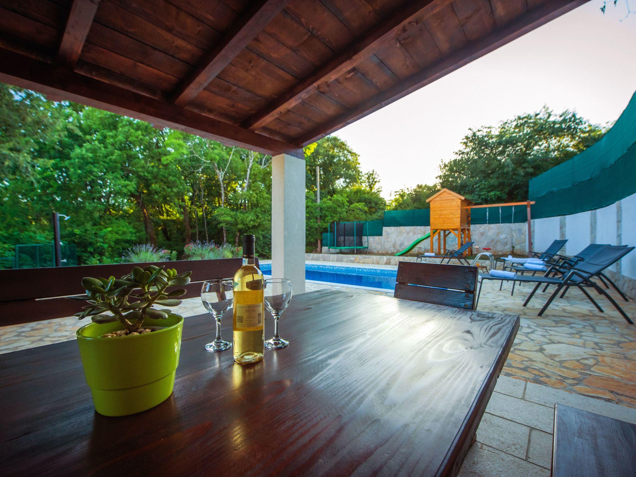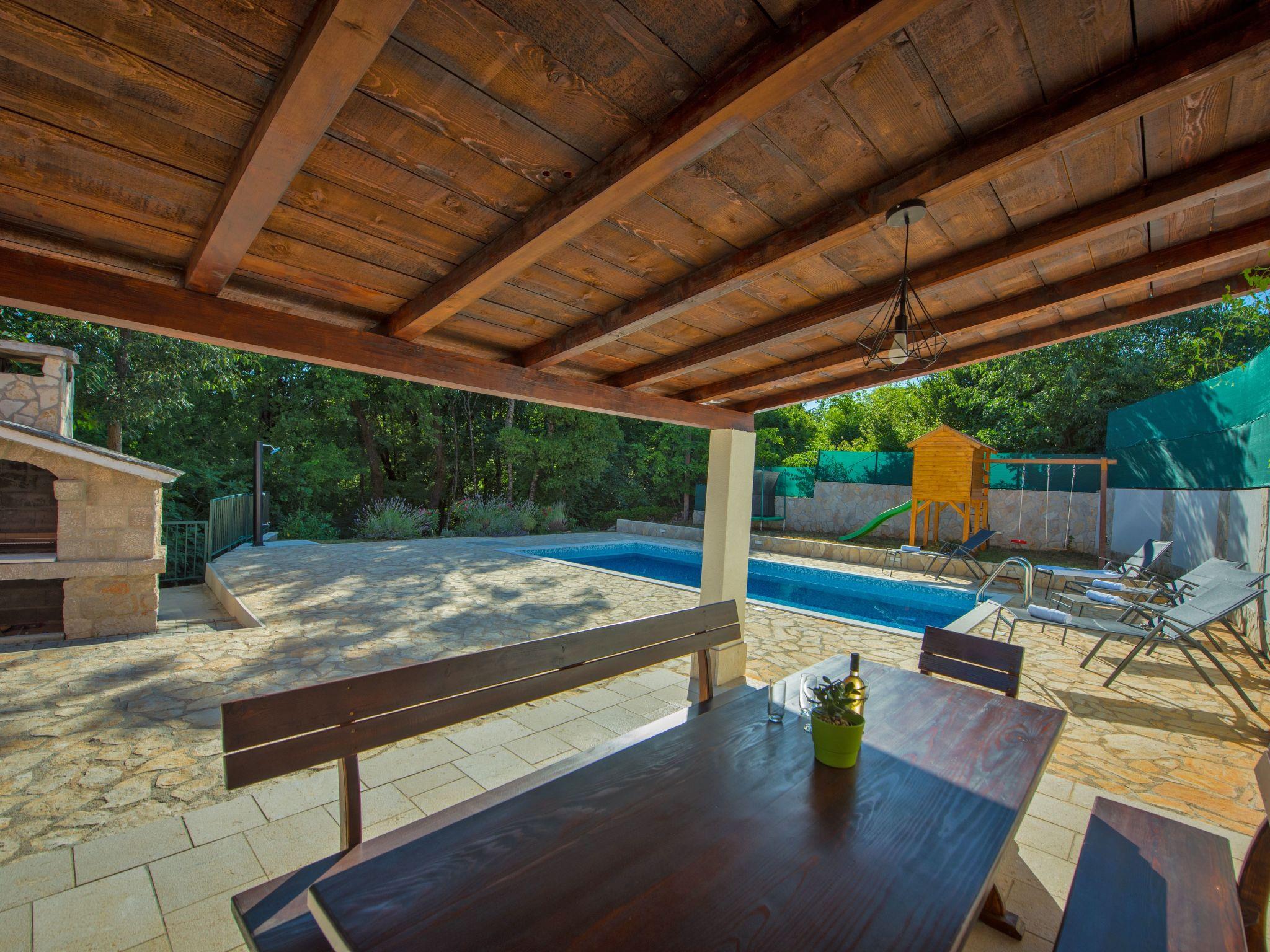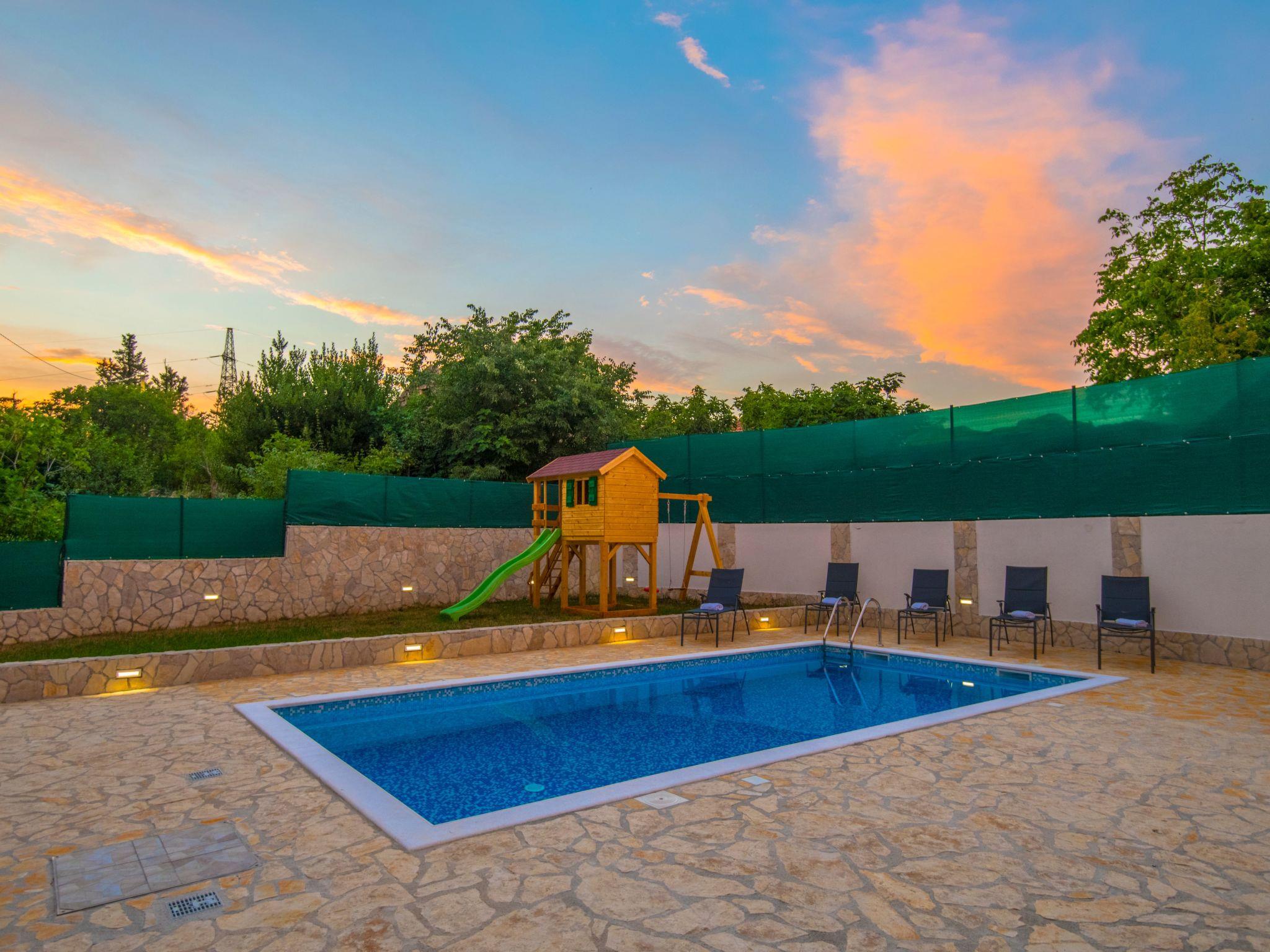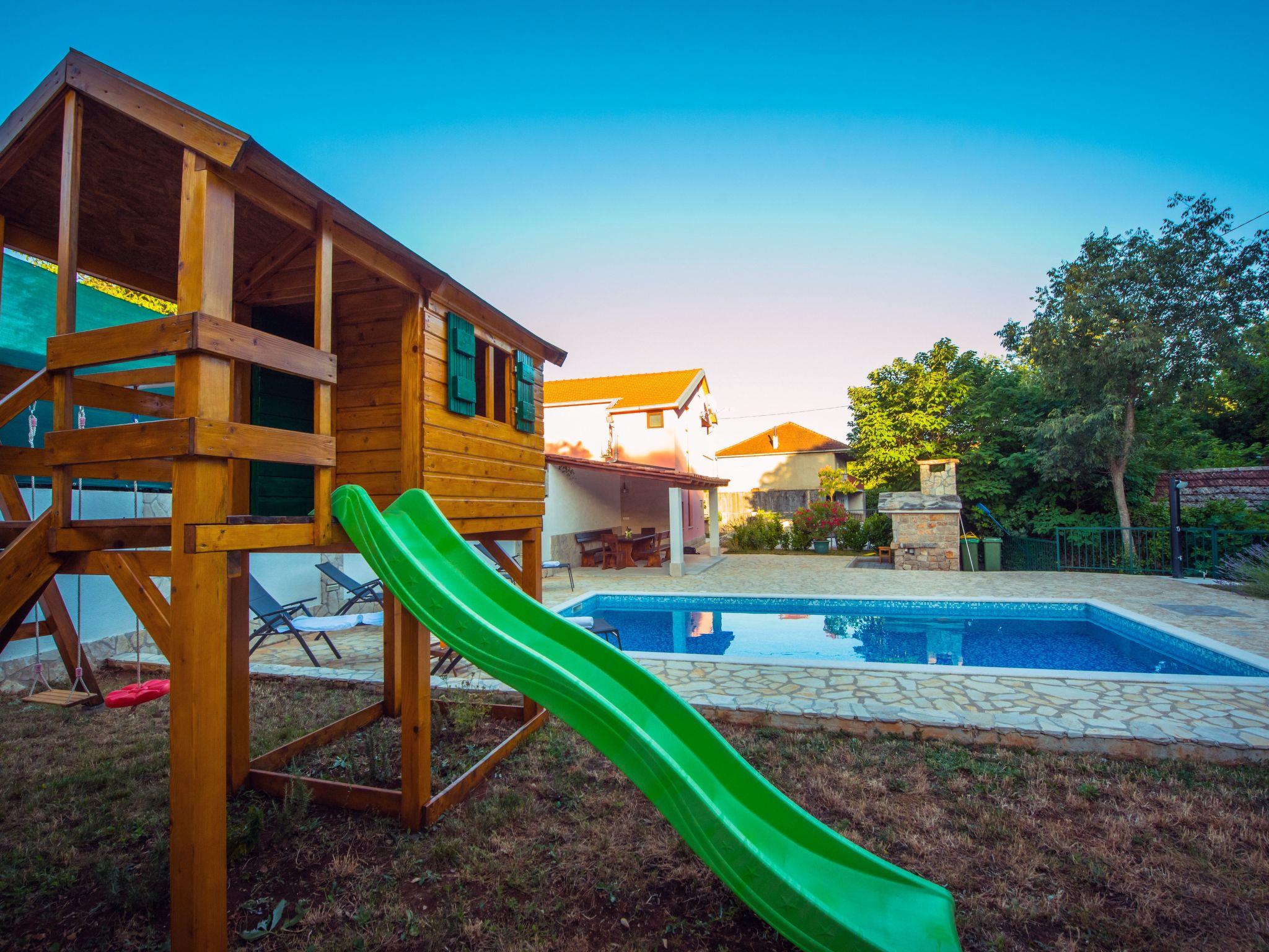 Villa has everything you need for a perfect holiday in this peaceful and quiet environment and it's ideal if you want to enjoy family days out and also if you want friends gathering vacation. The house can accommodate 8 persons and is divided in two parts: ground floor and the first floor. On the ground floor there is a large living room, a kitchen, a dining room, one bedroom with double beds and one bathroom. On the first floor there are 2 bedrooms with double beds, 1 bedroom with 2 single beds and also one bathroom. House is air conditioned and outside pool (32 m²) will give you refreshment during summer days. There is also washing machine on your disposal. The house disposes with a beautiful garden and typical fireplace on wood for BBQ, as well as the private parking. In front of villa is field for playing sports and the playground for children in our private garden.