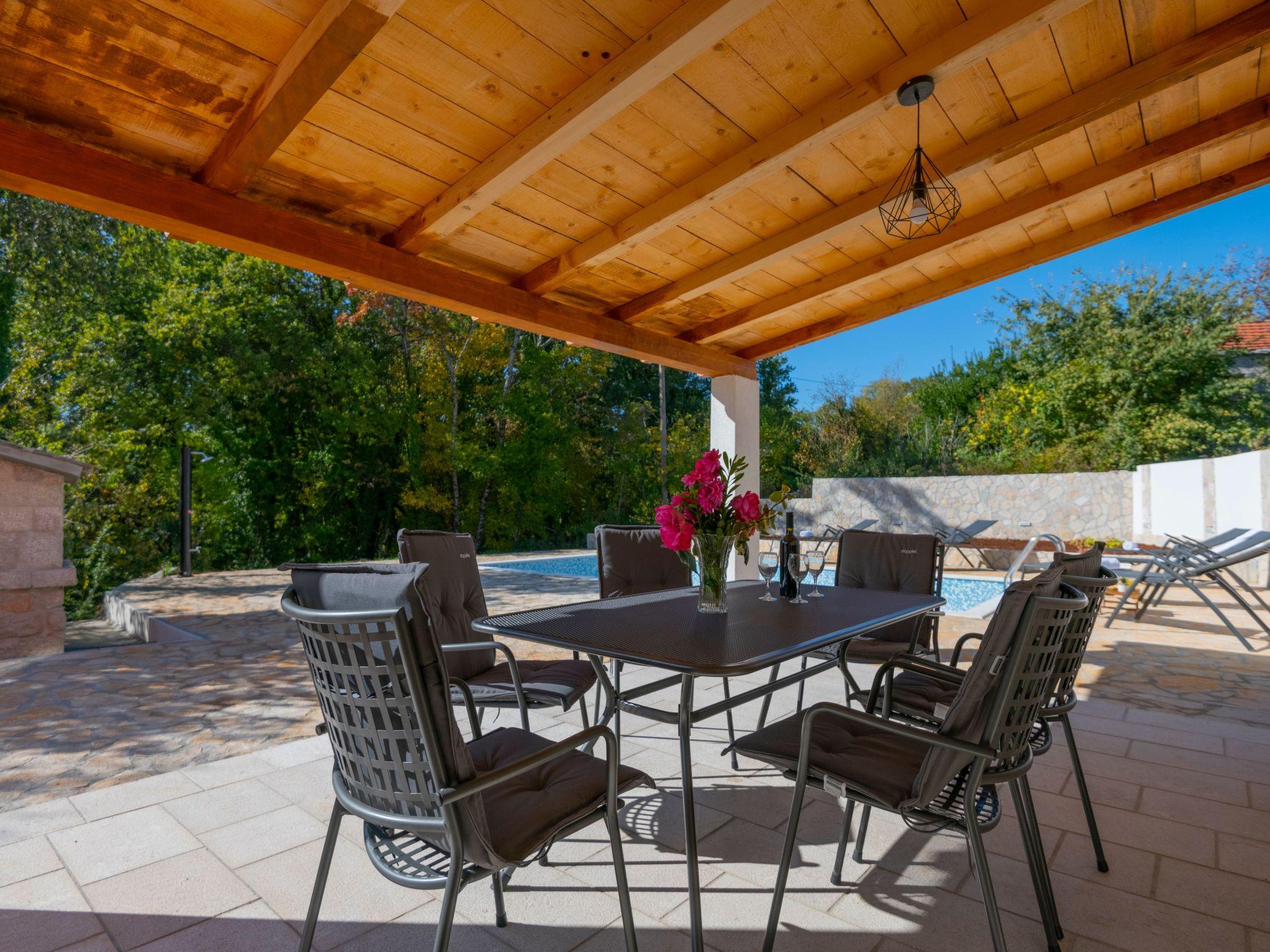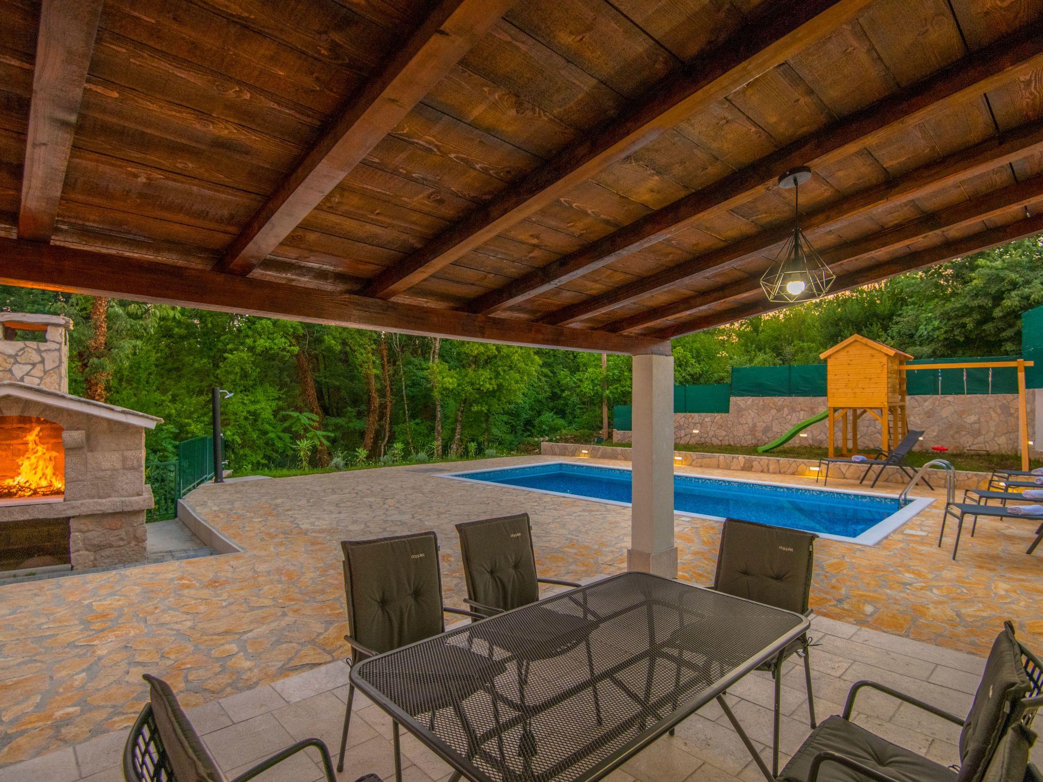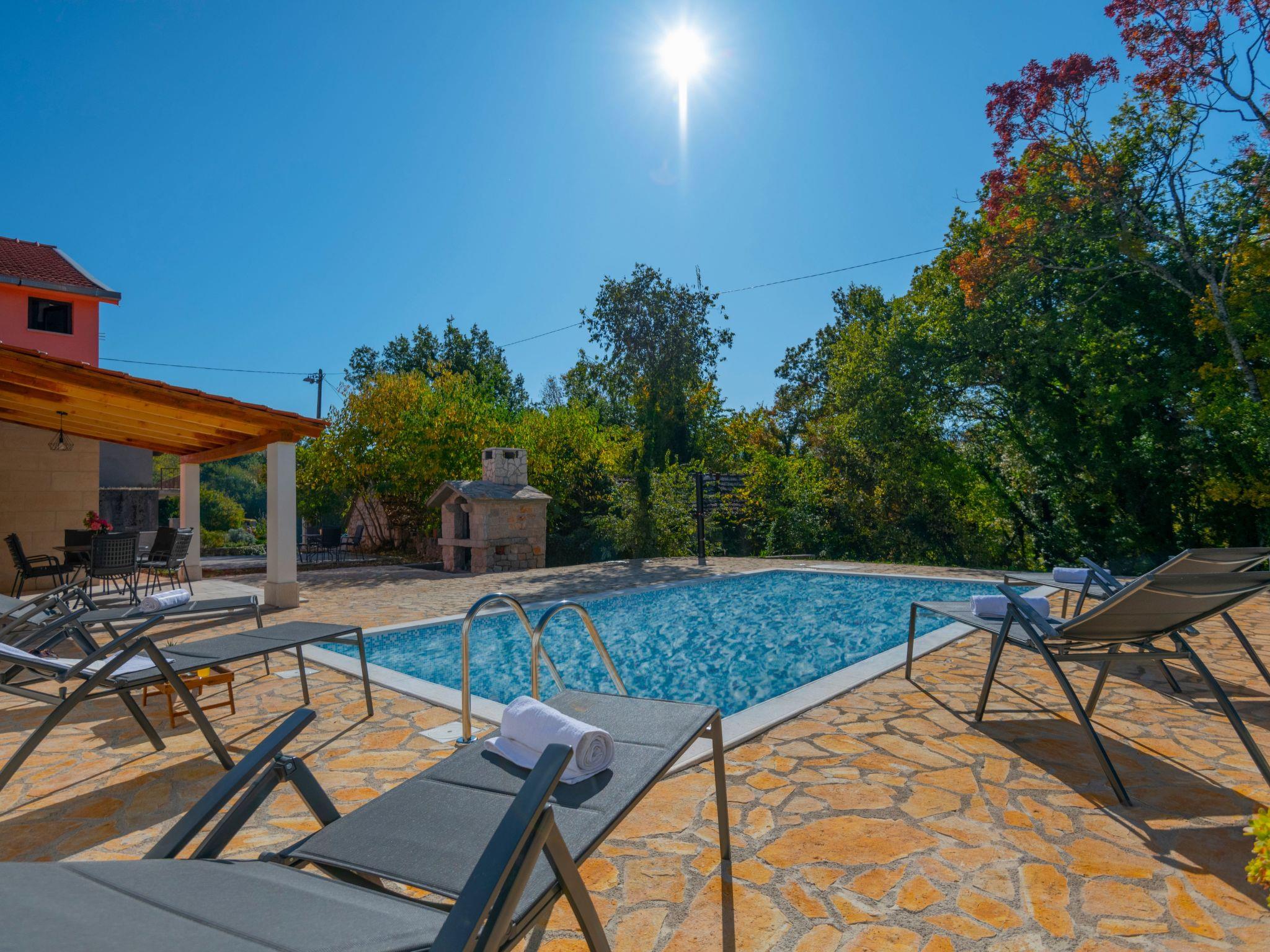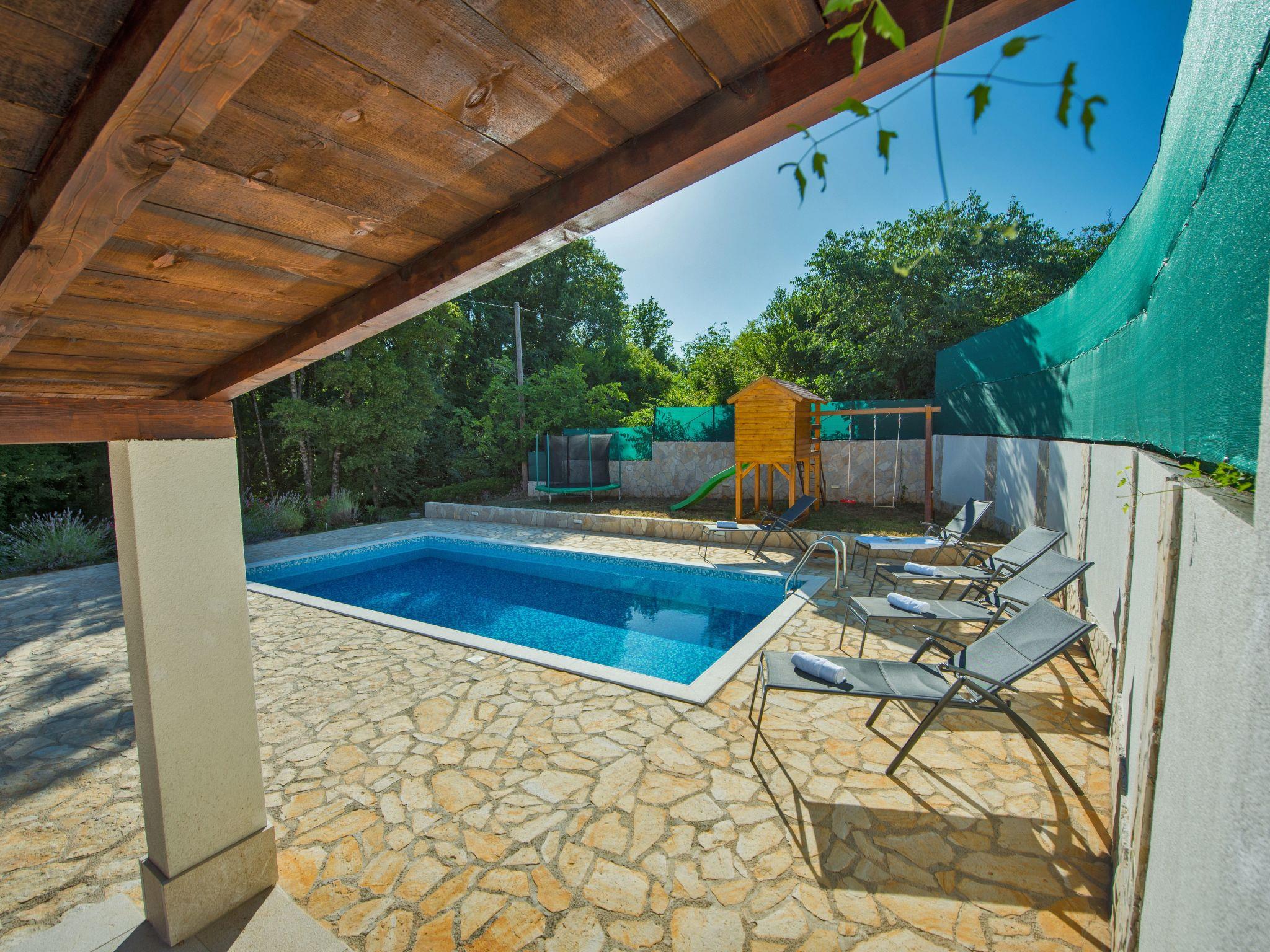 Villa has everything you need for a perfect holiday in this peaceful and quiet environment and it's ideal if you want to enjoy family days out and also if you want friends gathering vacation. The house can accommodate 8 persons and is divided in two parts: ground floor and the first floor. On the ground floor there is a large living room, a kitchen, a dining room, one bedroom with double beds and one bathroom. On the first floor there are 2 bedrooms with double beds, 1 bedroom with 2 single beds and also one bathroom. House is air conditioned and outside pool (32 m²) will give you refreshment during summer days. There is also washing machine on your disposal. The house disposes with a beautiful garden and typical fireplace on wood for BBQ, as well as the private parking. In front of villa is field for playing sports and the playground for children in our private garden.