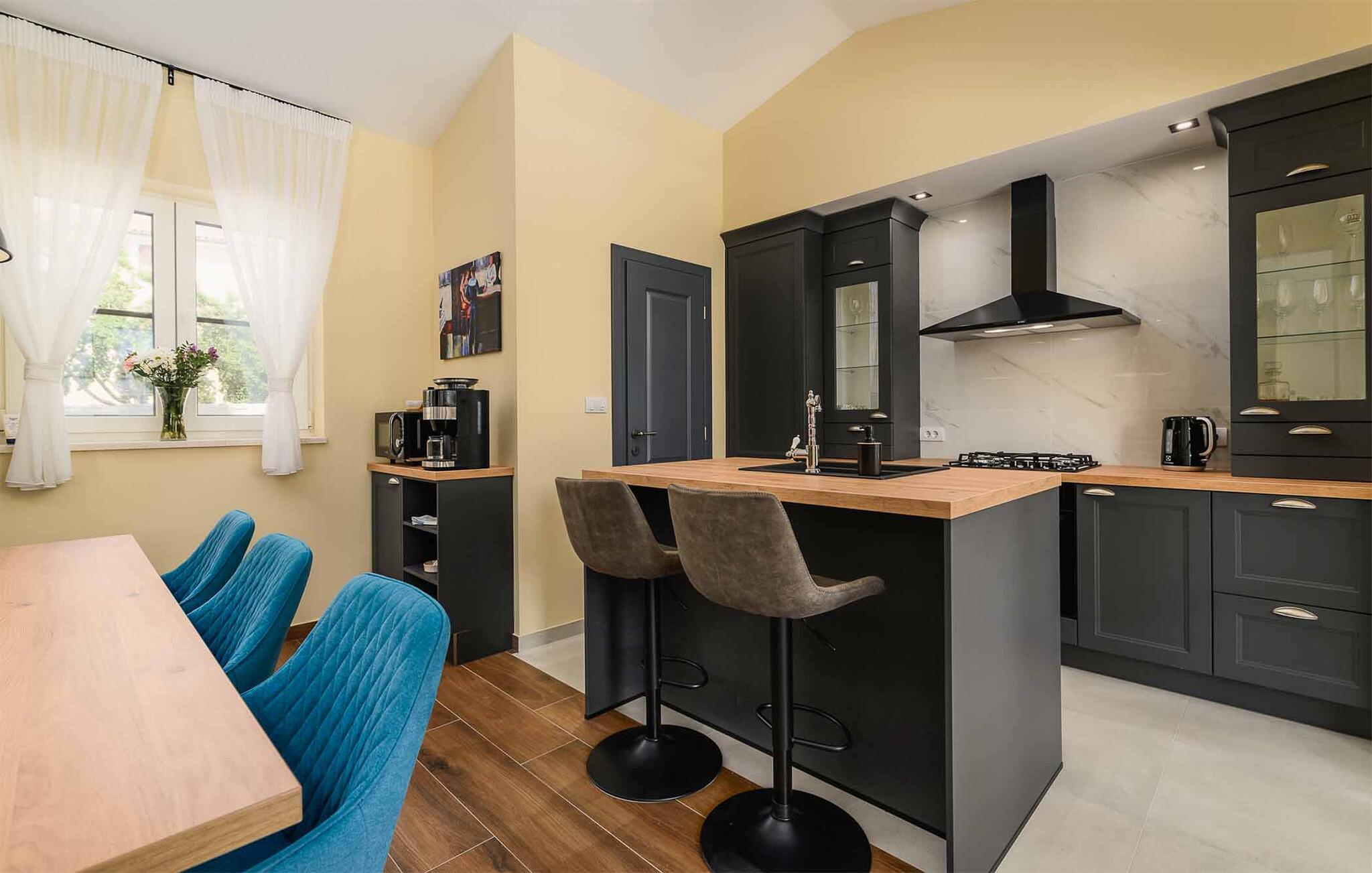 Huset ligger midt i det smukke og mangfoldige istriske landskab af frodige skove og bølgende bakker. Landsbyen er virkelig hyggelig og byder på ideelle forhold for jer, der gerne vil nyde naturen og bare slappe af. Tag på vandre- eller cykelture på de mange stier gennem det maleriske landskab og forbi Limski-kanalen med sine fantastiske klipper og krystalklare vand. Her kan I sejle i kajak, snorkle og blot nyde den betagende udsigt. Kulturinteresserede kan tage en tur til den historiske by Rovinj, hvis snoede gader og venetianske arkitektur er yderst fascinerende. Og så må I opleve de lokale taverner, hvor I kan smage på de regionale delikatesser og udsøgte vine. Besøg også de omkringliggende vingårde og smag på de lækre, lokale dråber.