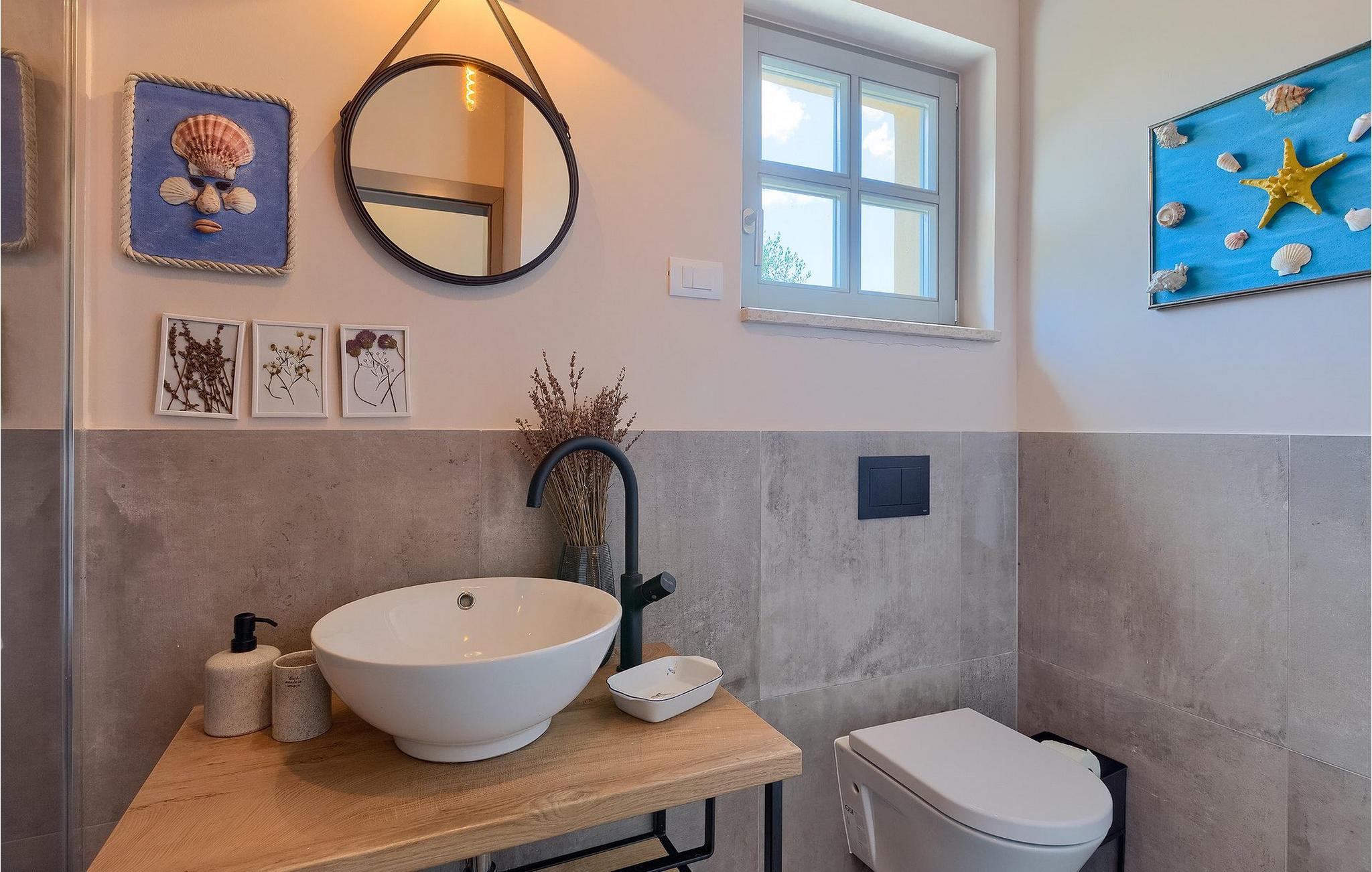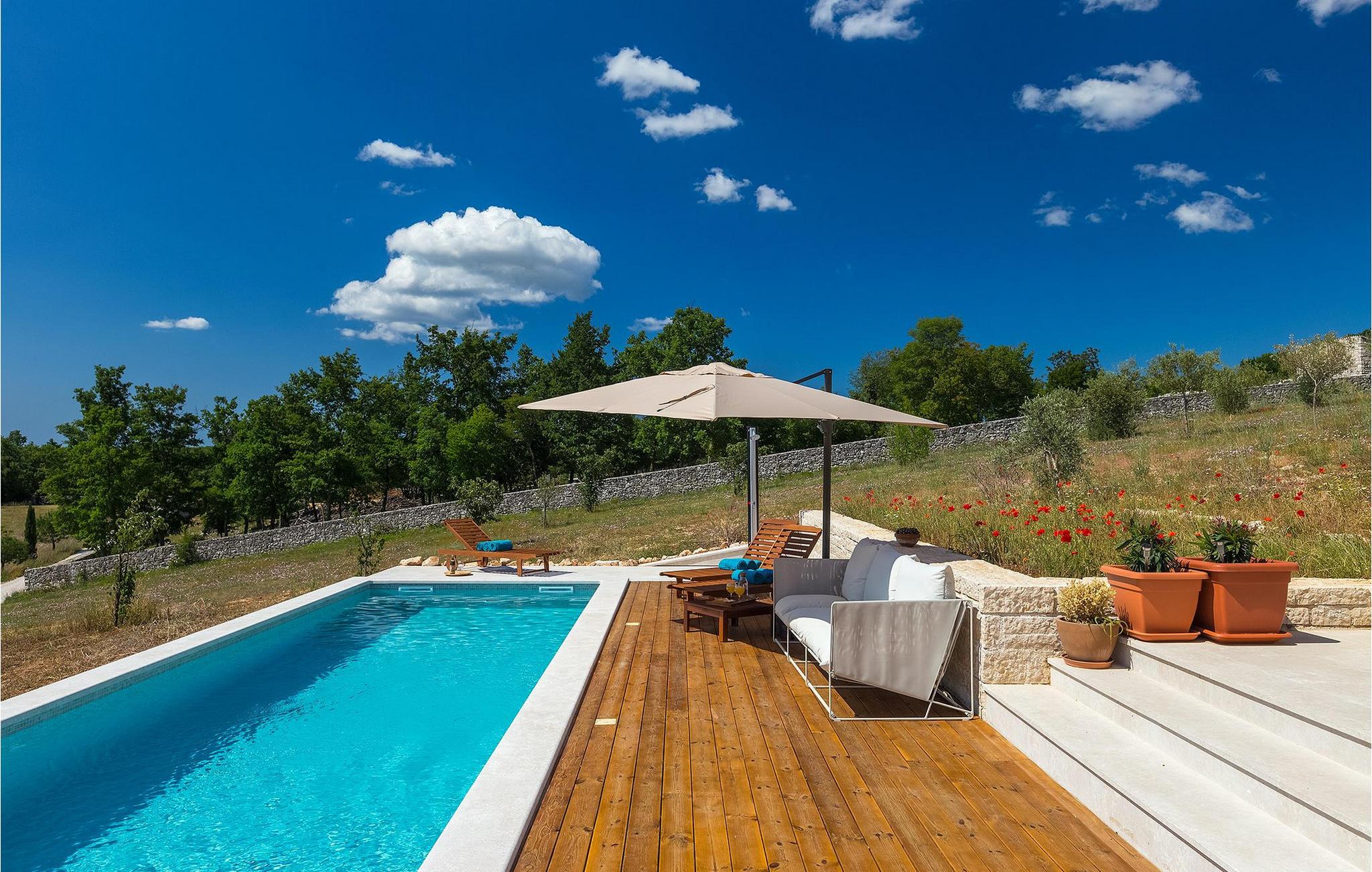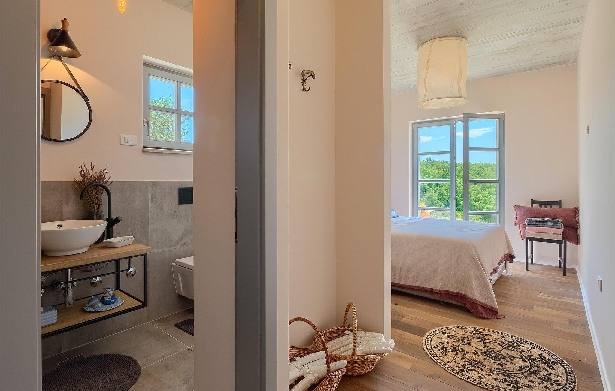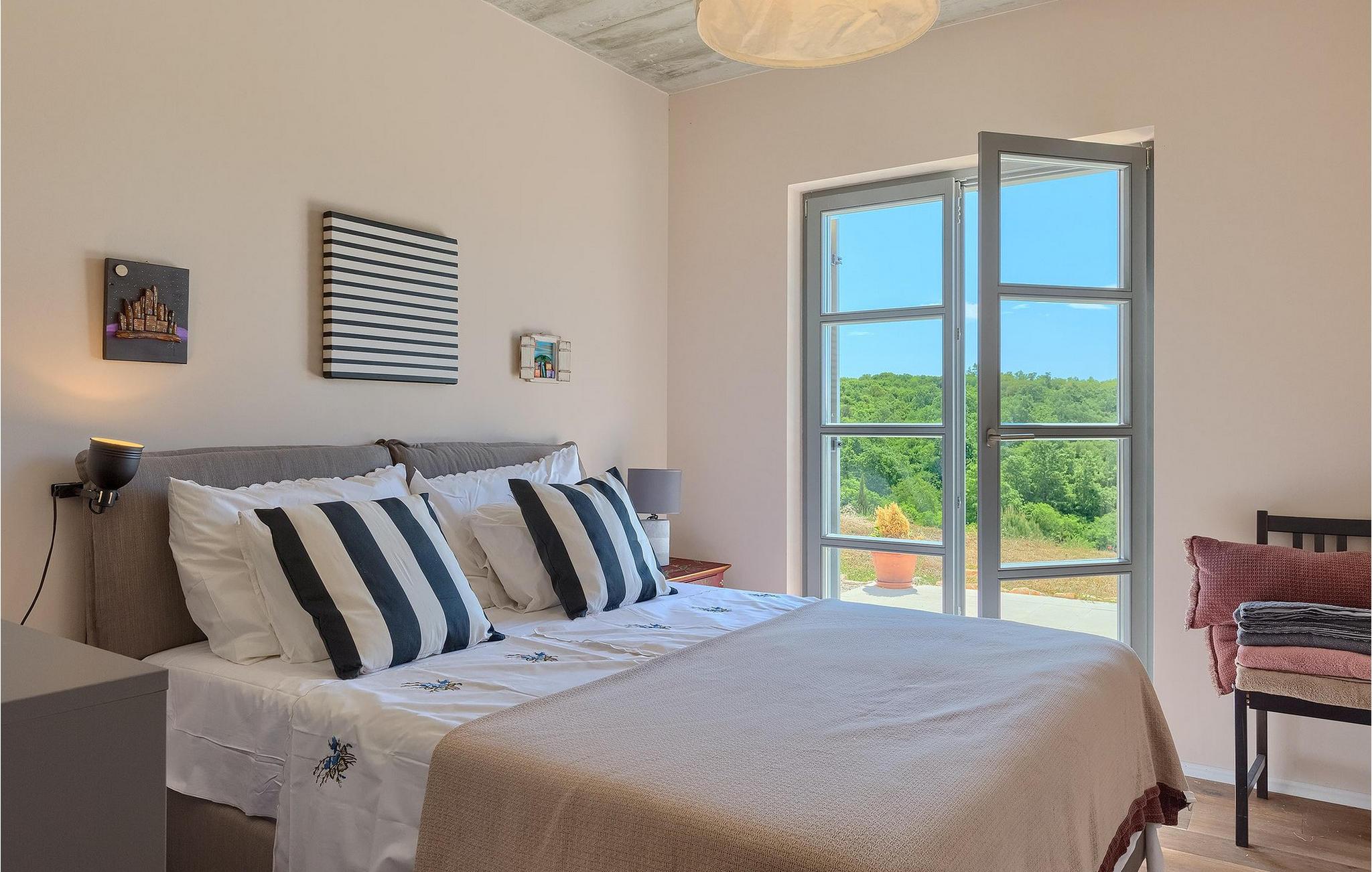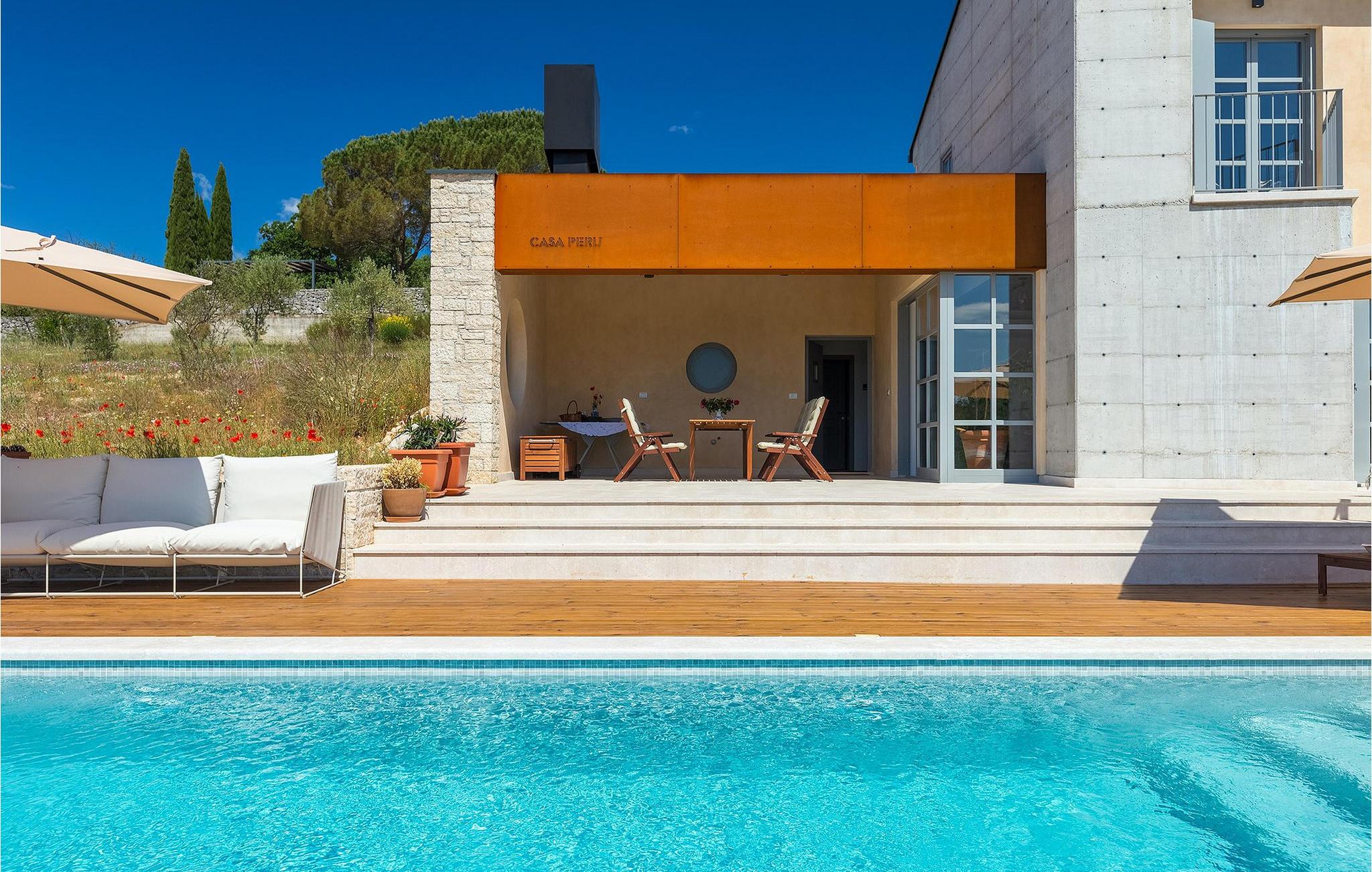 Villa Casa Peru er en dejlig villa beliggende i den lille landsby Kurili. Denne charmerende villa kan nemt rumme en familie på 6 i 3 soveværelser, alle med dobbeltsenge. I stueetagen af villa Casa Peru kommer du ind i en åben-koncept stue med et fuldt udstyret køkken, som strækker sig udendørs til terrassen med en udendørs spiseplads og en pool. I stueetagen finder du udover køkkenet og stuen et af soveværelserne med eget badeværelse med bruser og separat toilet. Køkkenet er udstyret med alt hvad du måtte have brug for - kaffemaskine, ovn, brødrister, mikroovn osv. og stuen har et spisebord til 6 og en dejlig pejs. På første sal finder du de resterende 2 soveværelser med ensuite badeværelser med bruser. Begge soveværelser har store glasdøre, der åbner ud til den lille balkon med udsigt over poolen. Hvis du foretrækker at spise udendørs, har du mulighed for at spise på terrassen med et spisebord, der kan rumme 8 gæster. De sommerdage, hvor du føler dig doven og gerne vil nyde solen, kan du slappe af ved en af liggestolene ved poolen. Der er også en sauna til din rådighed. Parkeringspladsen tilbyder plads til op til 4 biler. Denne villa er beliggende i den lille landsby Kurili, som er beliggende i kommunen Kanfanar, i den indre del af Istrien. Udover at være berømt for de middelalderlige ruiner af Dvigrad, Lim-bugtens uberørte natur og adskillige arkæologiske steder, betragtes denne region som hjemstedet for den istriske okse, et engang næsten truet dyr og for fuzi - dronningen af istriens pasta. Istrien okse og fuzi er en central del af Kanfanars største begivenhed - Jakovlje, hvor du kan opleve Istrien, som det engang var.