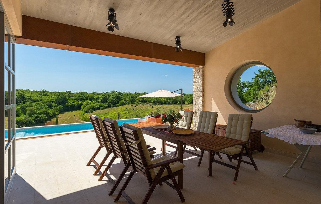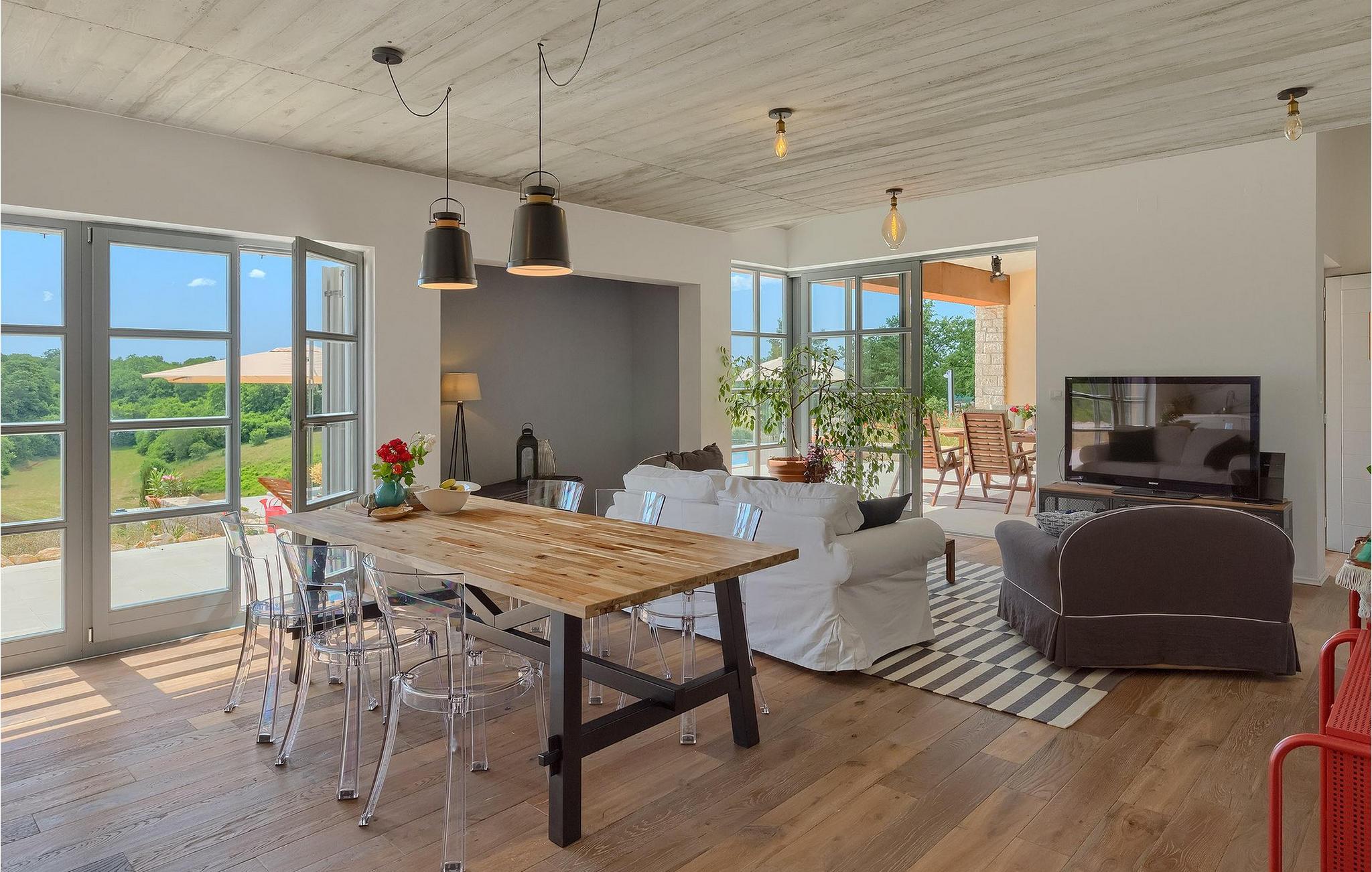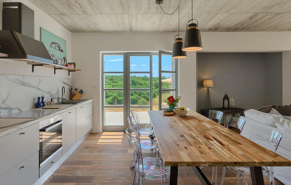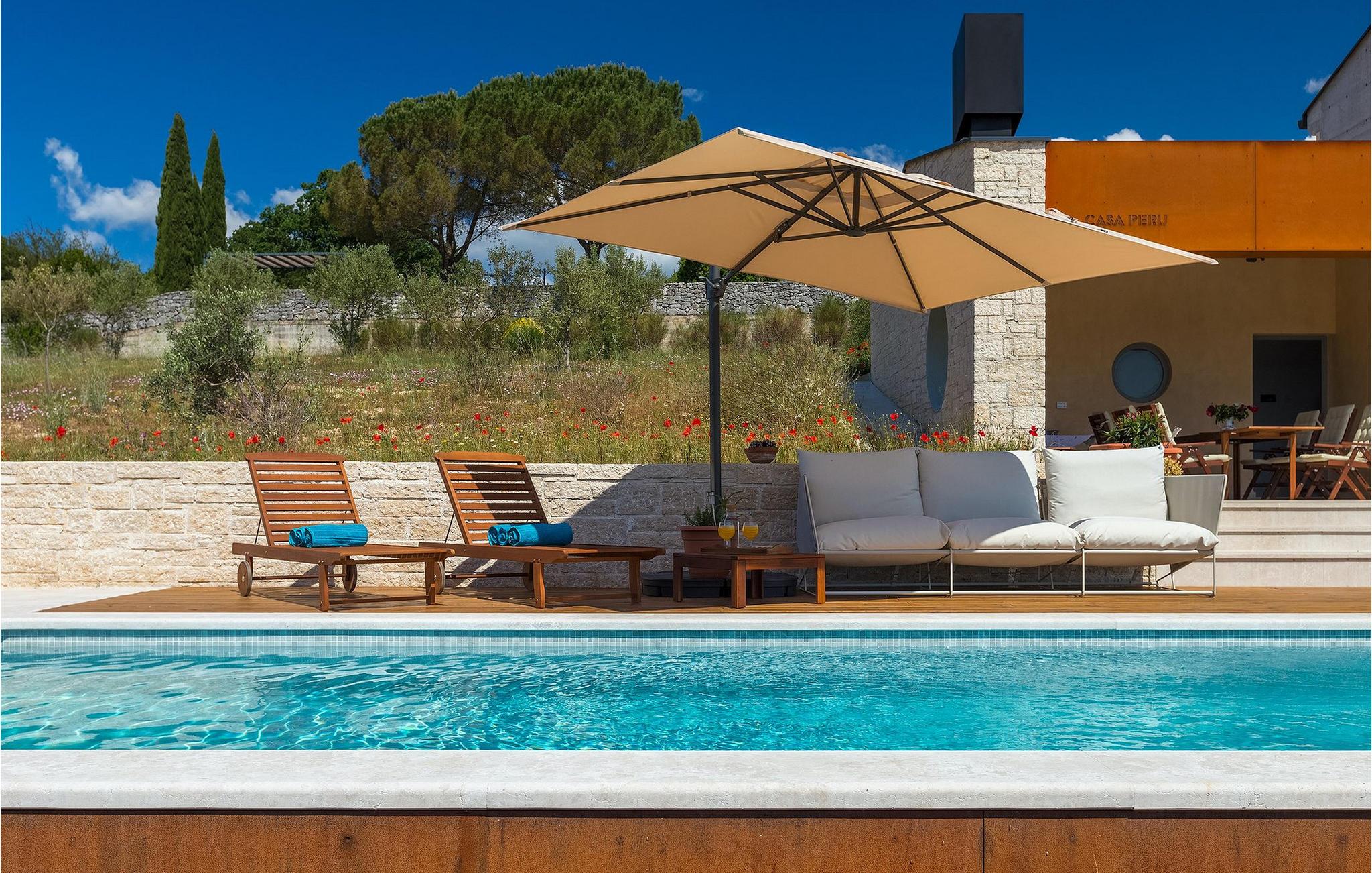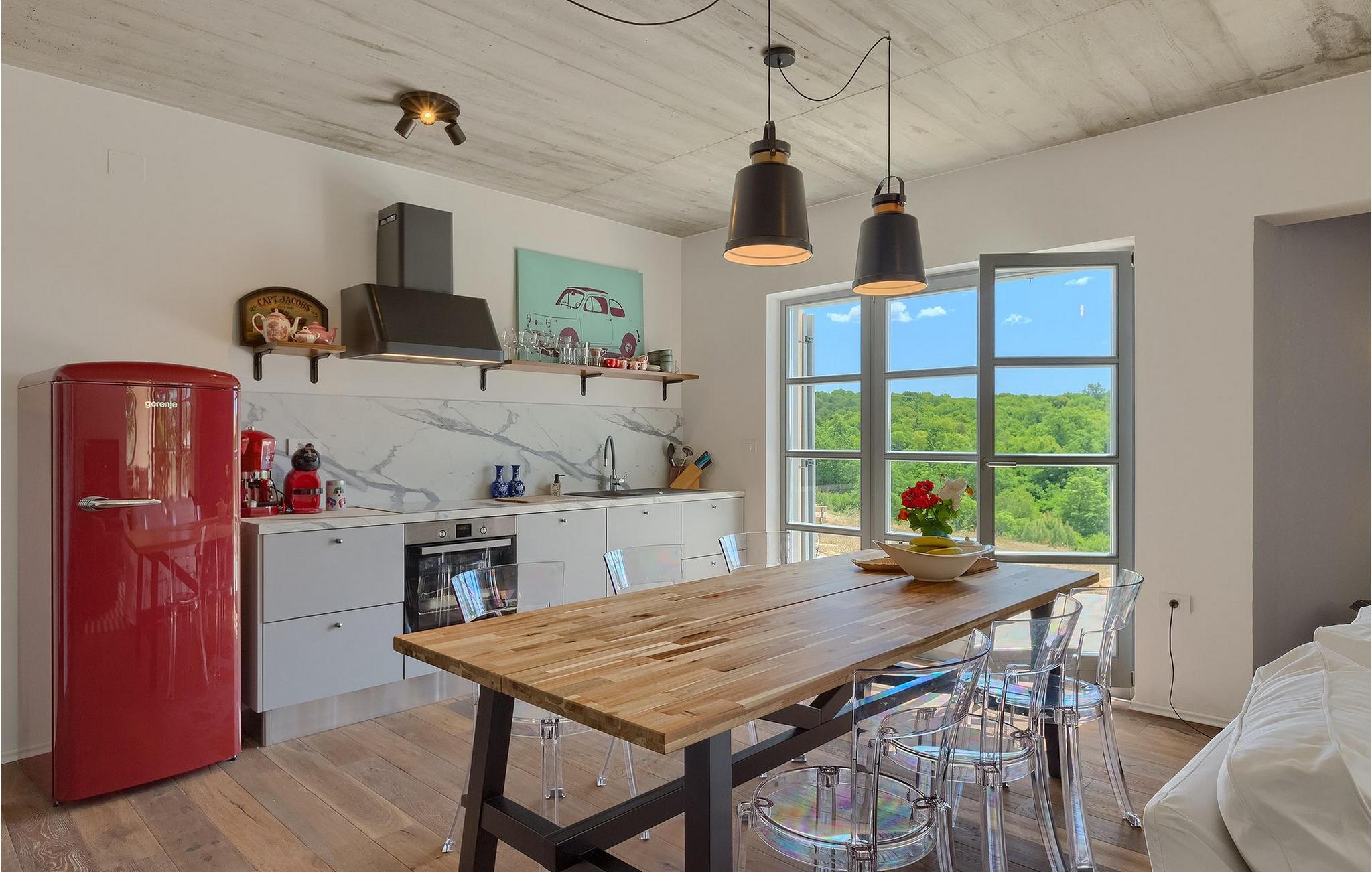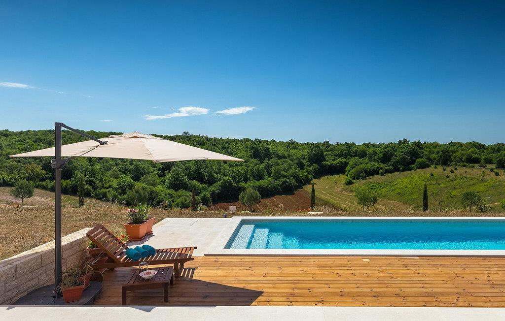 Villa Casa Peru er en dejlig villa beliggende i den lille landsby Kurili. Denne charmerende villa kan nemt rumme en familie på 6 i 3 soveværelser, alle med dobbeltsenge. I stueetagen af villa Casa Peru kommer du ind i en åben-koncept stue med et fuldt udstyret køkken, som strækker sig udendørs til terrassen med en udendørs spiseplads og en pool. I stueetagen finder du udover køkkenet og stuen et af soveværelserne med eget badeværelse med bruser og separat toilet. Køkkenet er udstyret med alt hvad du måtte have brug for - kaffemaskine, ovn, brødrister, mikroovn osv. og stuen har et spisebord til 6 og en dejlig pejs. På første sal finder du de resterende 2 soveværelser med ensuite badeværelser med bruser. Begge soveværelser har store glasdøre, der åbner ud til den lille balkon med udsigt over poolen. Hvis du foretrækker at spise udendørs, har du mulighed for at spise på terrassen med et spisebord, der kan rumme 8 gæster. De sommerdage, hvor du føler dig doven og gerne vil nyde solen, kan du slappe af ved en af liggestolene ved poolen. Der er også en sauna til din rådighed. Parkeringspladsen tilbyder plads til op til 4 biler. Denne villa er beliggende i den lille landsby Kurili, som er beliggende i kommunen Kanfanar, i den indre del af Istrien. Udover at være berømt for de middelalderlige ruiner af Dvigrad, Lim-bugtens uberørte natur og adskillige arkæologiske steder, betragtes denne region som hjemstedet for den istriske okse, et engang næsten truet dyr og for fuzi - dronningen af istriens pasta. Istrien okse og fuzi er en central del af Kanfanars største begivenhed - Jakovlje, hvor du kan opleve Istrien, som det engang var.