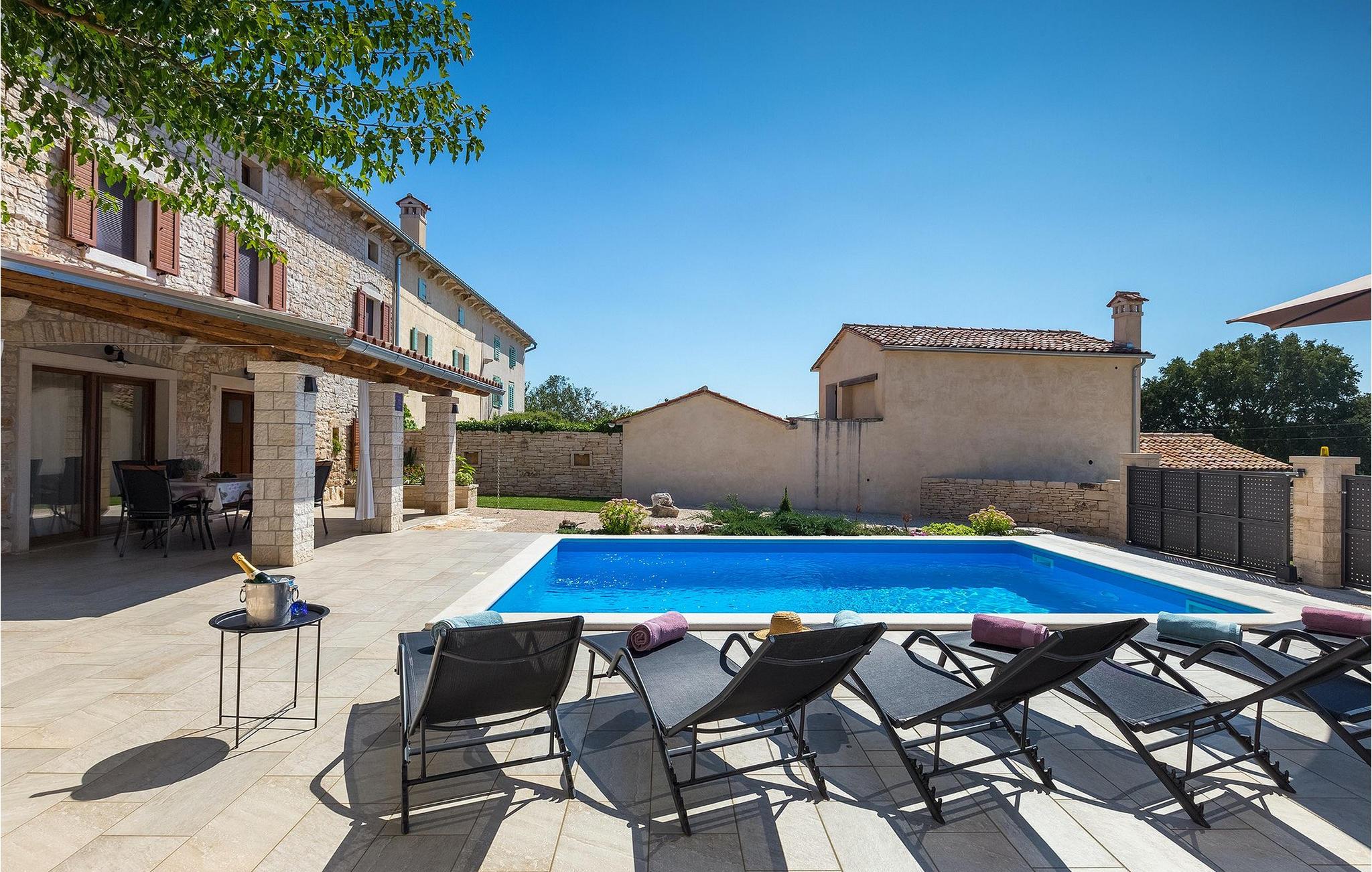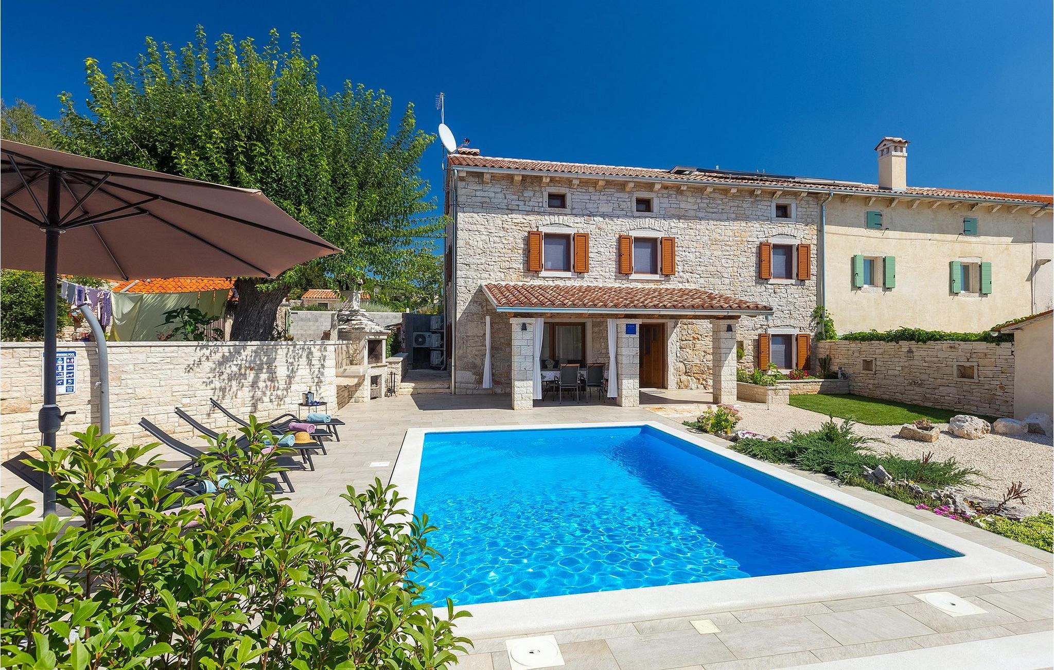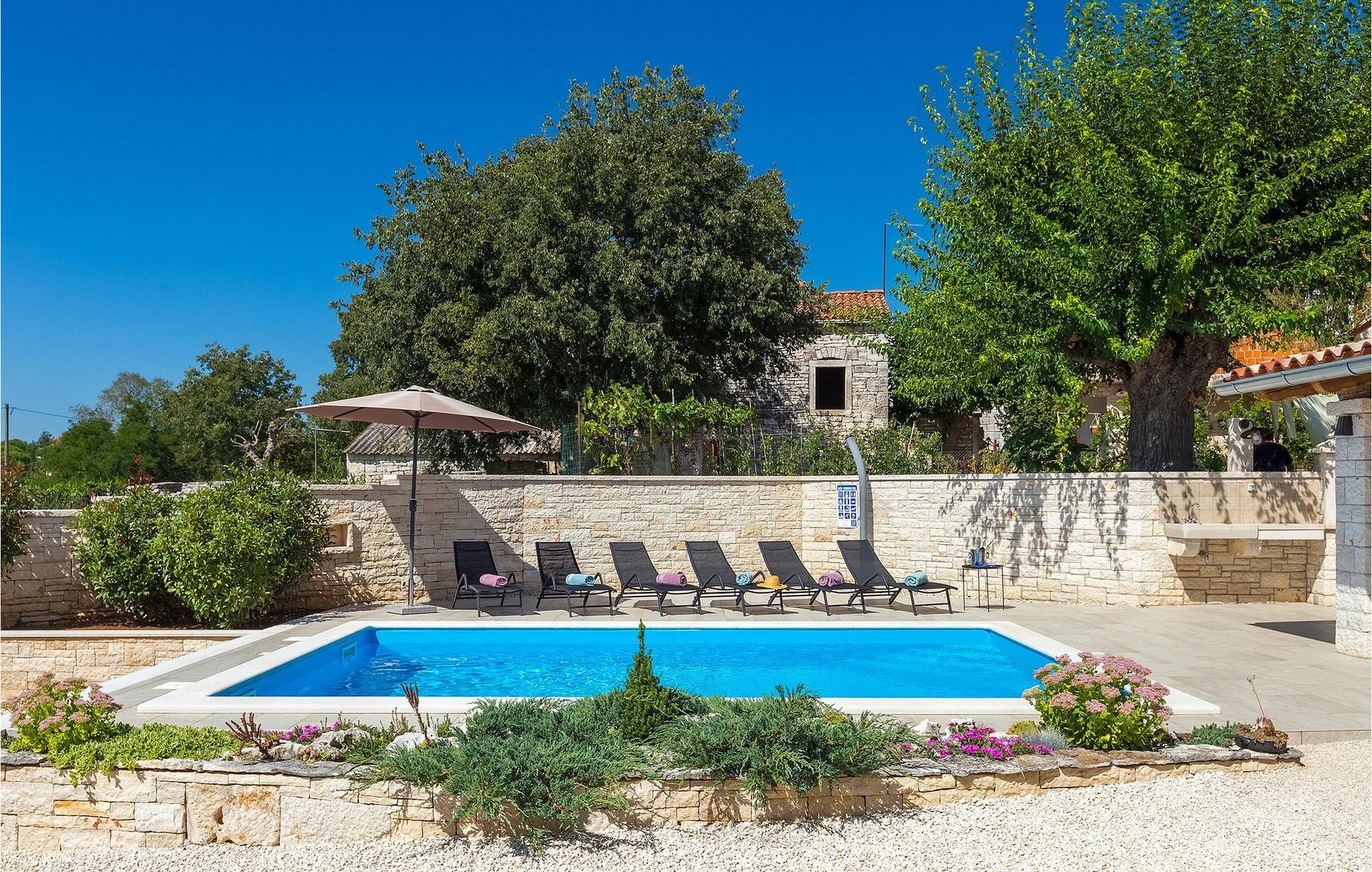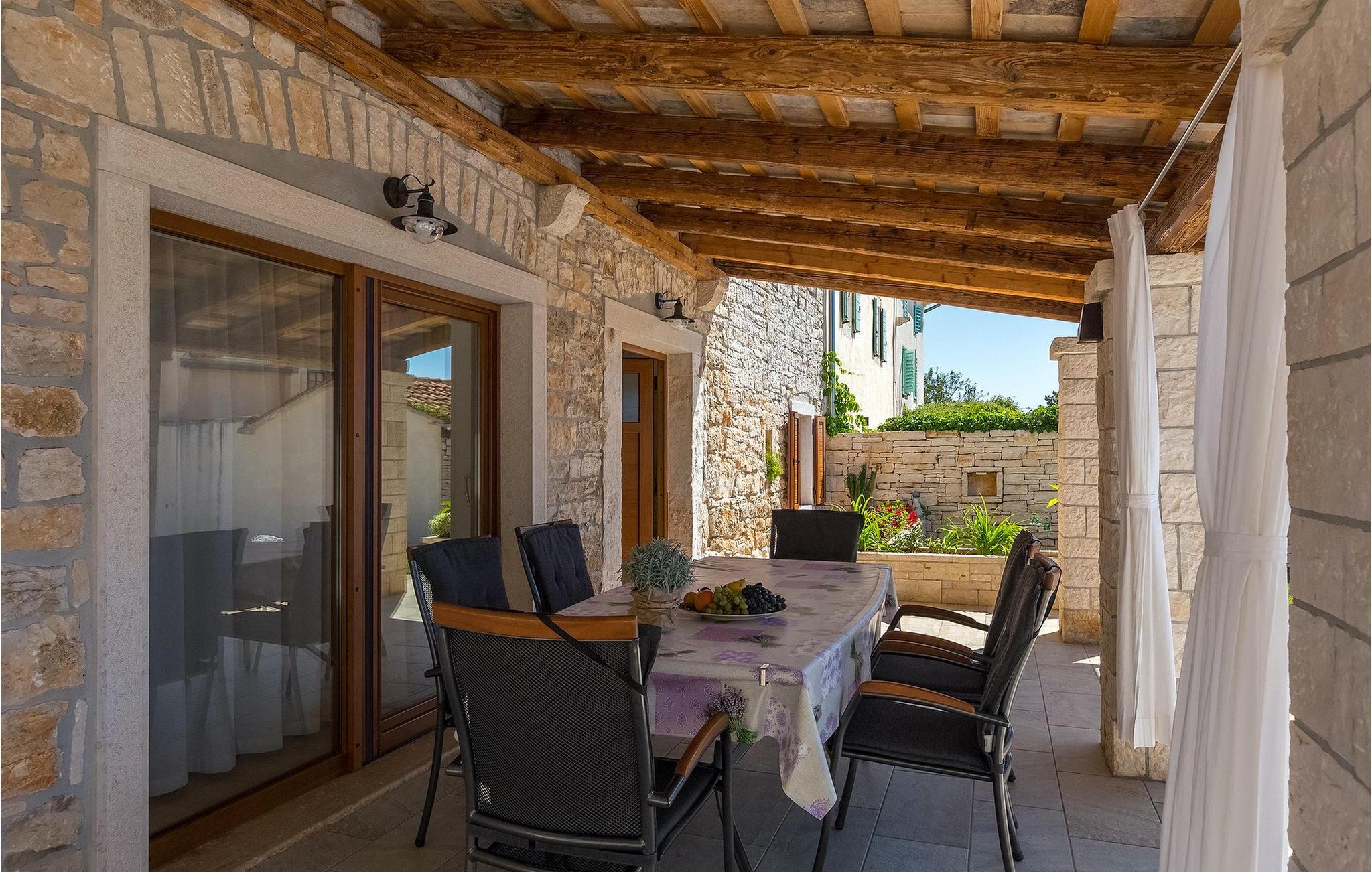 Villa Masi ist eine wunderschöne alte restaurierte Villa, die ideal für einen erholsamen Urlaub in Istrien für eine Gruppe mit 6 Gästen ist. Das Äußere und das Innere der Villa tragen mit ihren Steinwänden zum antiken Flair bei und bringen Nostalgie aus den alten Zeiten. Im Erdgeschoss der Villa Masi erwartet Sie ein offenes Wohnzimmer mit einem Esstisch für 6 Personen und einer voll ausgestatteten Küche. Im Wohnzimmer befindet sich ein bequemes Ecksofa mit Fernseher. Vom Wohnzimmer führt die Treppe in den ersten Stock, wo Sie weitere 2 Schlafzimmer mit eigenem Bad finden. Eines der Schlafzimmer verfügt über ein Doppelbett und das andere über 2 Einzelbetten, die auf Anfrage zu einem Doppelbett zusammengestellt werden können. Wenn Sie die Treppe hinaufsteigen, gelangen Sie schließlich auf den Dachboden, in dem sich das geräumige Schlafzimmer mit Doppelbett und zusätzlicher Schlafcouch, sowie ein ensuite- Badezimmer befindet. Das Äußere der Villa ist sehr geräumig und verfügt über einen schönen Pool zum erfrischen und Liegestühle. Die mediterranen Pflanzen rund um den Hof runden den Gesamteindruck der Villa ab.Diese Villa befindet sich in dem kleinen Dorf Kurili in der Gemeinde Kanfanar im Inneren Istriens. Hier finden Sie mittelalterliche Ruinen von Dvigrad und unberührte Natur der Bucht von Lim sowie zahlreiche archäologische Stätten. Diese Region gilt als Heimat des istrischen Ochsen, der einst fast vom Aussterben bedroht war und Fuzi - die Königin der istrischen Nudeln. Istrischer Ochse und Fuzi sind ein zentraler Bestandteil von Kanfanars größter Veranstaltung - Jakovlje, bei der Sie Istrien so erleben können, wie es einmal war.
