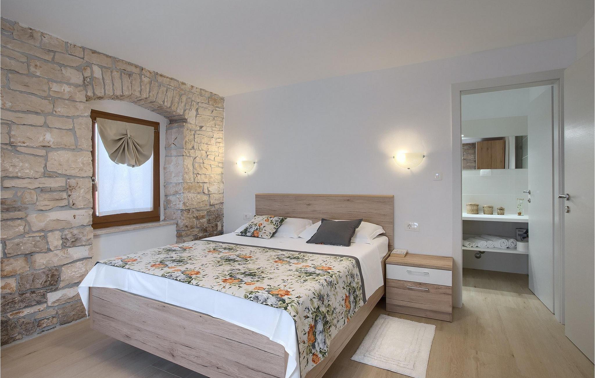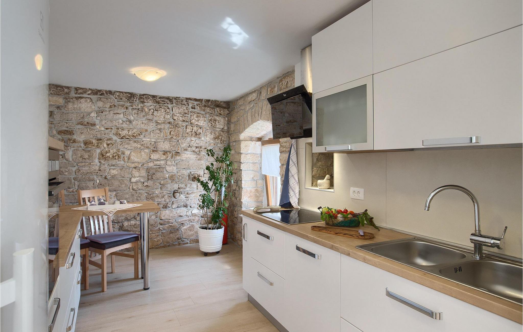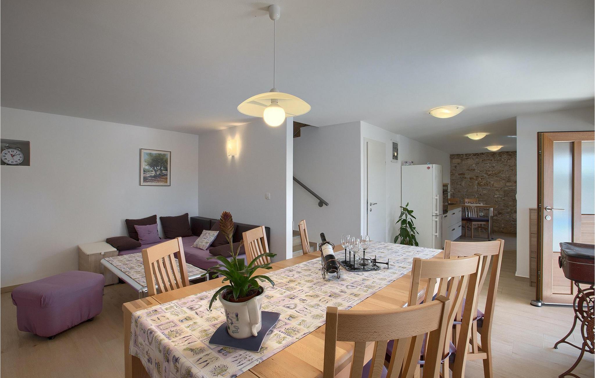 Villa Masi ist eine wunderschöne alte restaurierte Villa, die ideal für einen erholsamen Urlaub in Istrien für eine Gruppe mit 6 Gästen ist. Das Äußere und das Innere der Villa tragen mit ihren Steinwänden zum antiken Flair bei und bringen Nostalgie aus den alten Zeiten. Im Erdgeschoss der Villa Masi erwartet Sie ein offenes Wohnzimmer mit einem Esstisch für 6 Personen und einer voll ausgestatteten Küche. Im Wohnzimmer befindet sich ein bequemes Ecksofa mit Fernseher. Vom Wohnzimmer führt die Treppe in den ersten Stock, wo Sie weitere 2 Schlafzimmer mit eigenem Bad finden. Eines der Schlafzimmer verfügt über ein Doppelbett und das andere über 2 Einzelbetten, die auf Anfrage zu einem Doppelbett zusammengestellt werden können. Wenn Sie die Treppe hinaufsteigen, gelangen Sie schließlich auf den Dachboden, in dem sich das geräumige Schlafzimmer mit Doppelbett und zusätzlicher Schlafcouch, sowie ein ensuite- Badezimmer befindet. Das Äußere der Villa ist sehr geräumig und verfügt über einen schönen Pool zum erfrischen und Liegestühle. Die mediterranen Pflanzen rund um den Hof runden den Gesamteindruck der Villa ab.Diese Villa befindet sich in dem kleinen Dorf Kurili in der Gemeinde Kanfanar im Inneren Istriens. Hier finden Sie mittelalterliche Ruinen von Dvigrad und unberührte Natur der Bucht von Lim sowie zahlreiche archäologische Stätten. Diese Region gilt als Heimat des istrischen Ochsen, der einst fast vom Aussterben bedroht war und Fuzi - die Königin der istrischen Nudeln. Istrischer Ochse und Fuzi sind ein zentraler Bestandteil von Kanfanars größter Veranstaltung - Jakovlje, bei der Sie Istrien so erleben können, wie es einmal war.