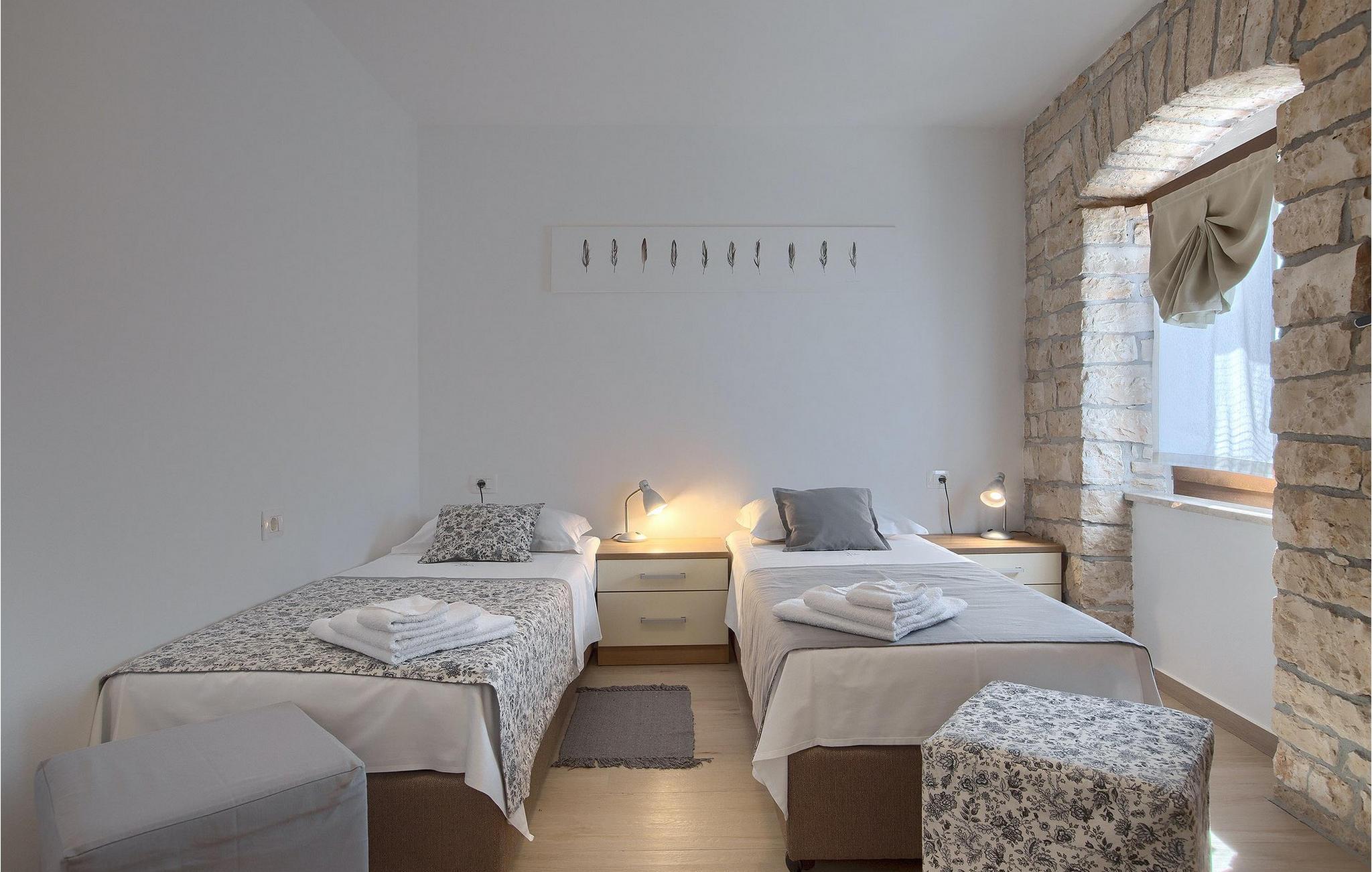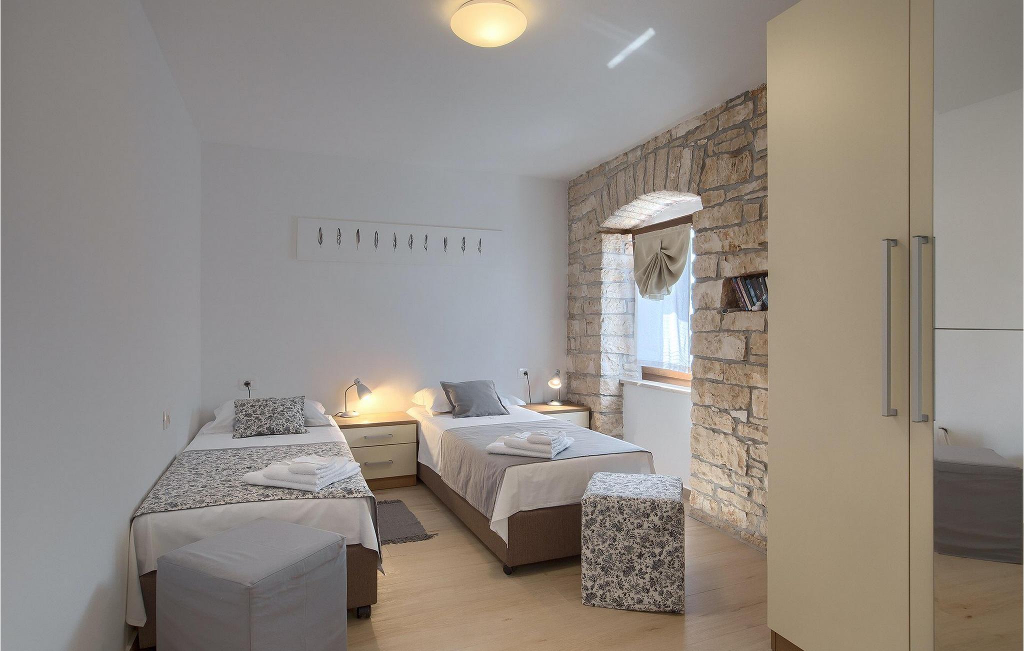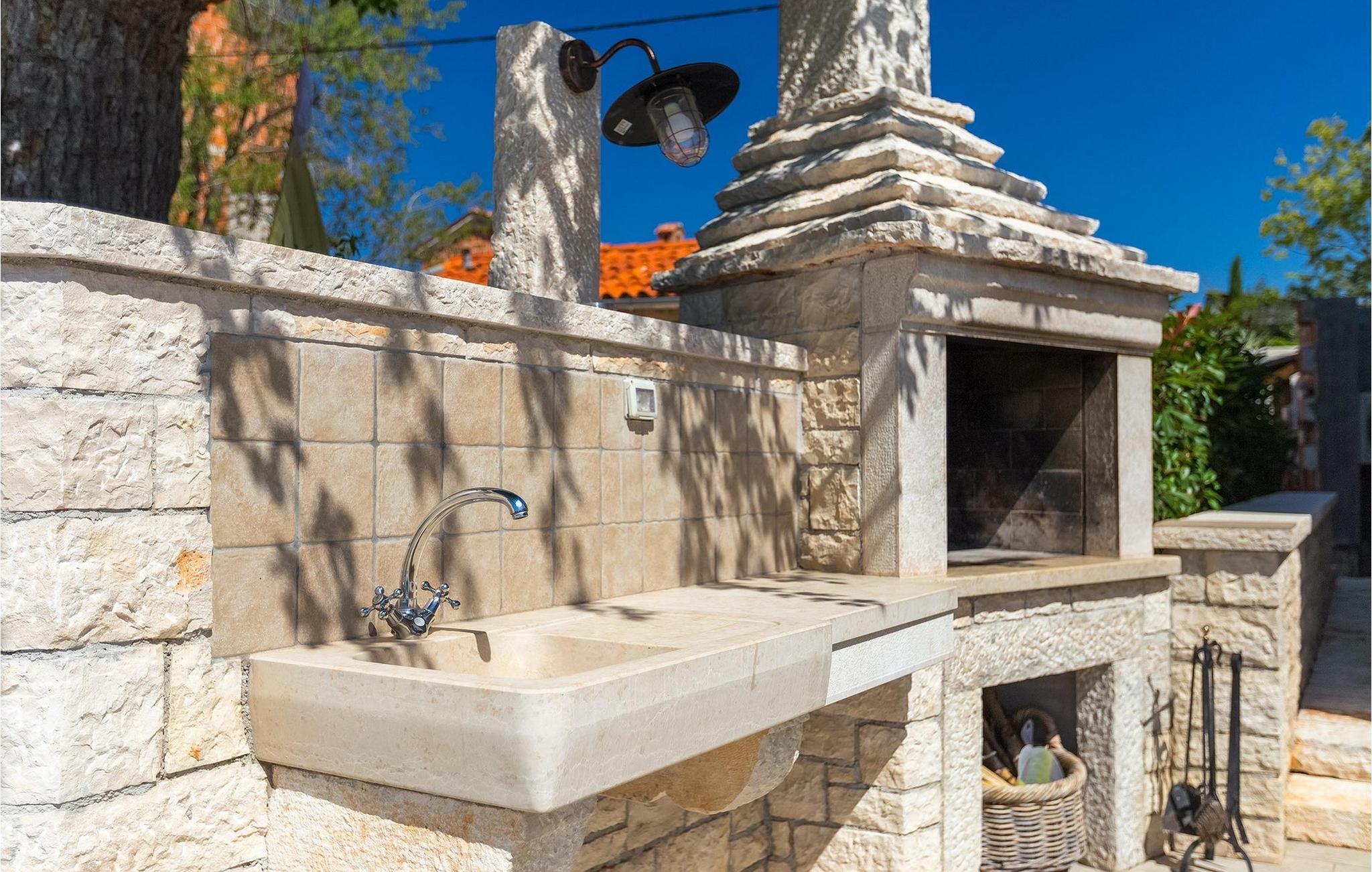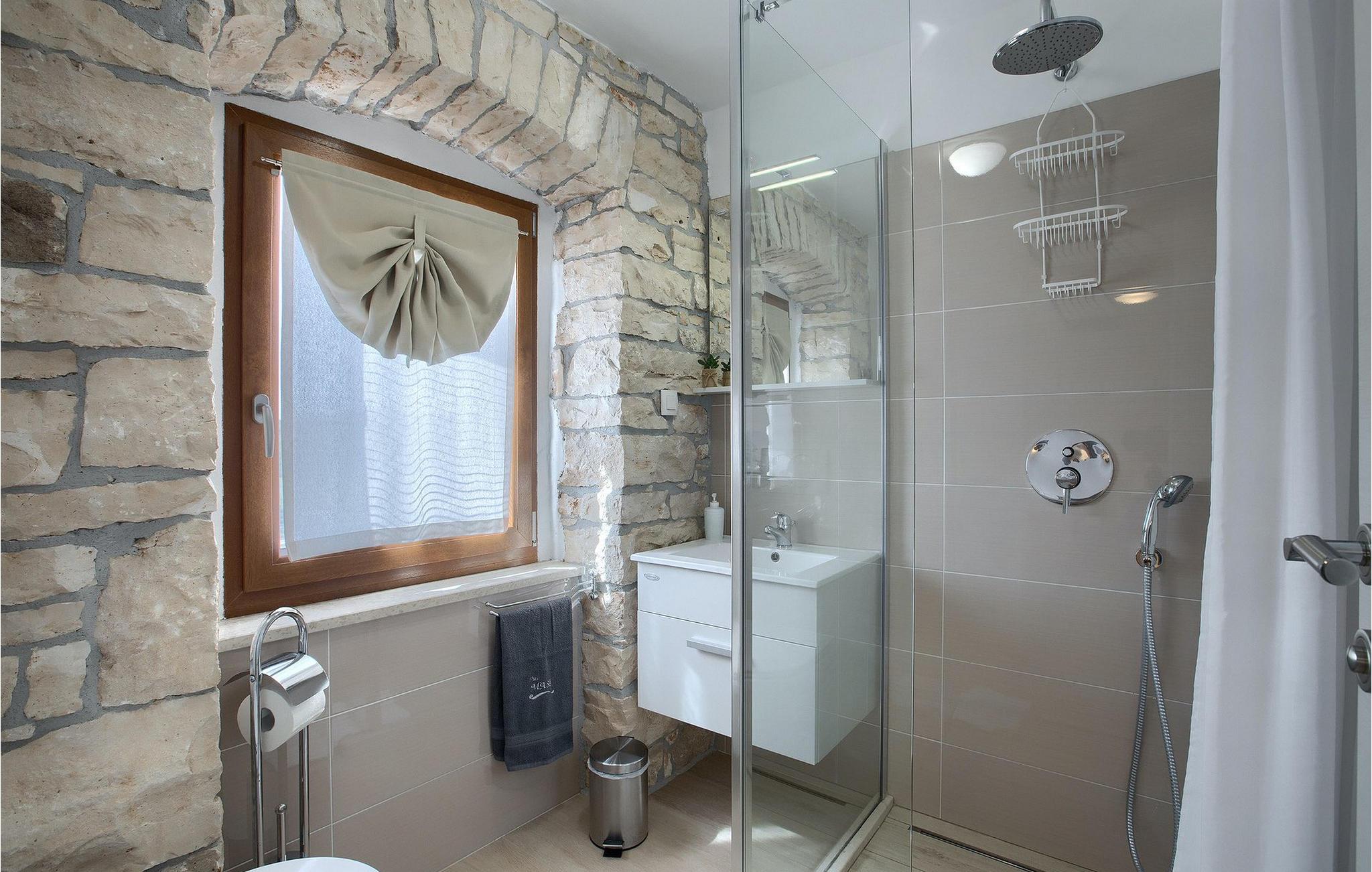 Villa Masi ist eine wunderschöne alte restaurierte Villa, die ideal für einen erholsamen Urlaub in Istrien für eine Gruppe mit 6 Gästen ist. Das Äußere und das Innere der Villa tragen mit ihren Steinwänden zum antiken Flair bei und bringen Nostalgie aus den alten Zeiten. Im Erdgeschoss der Villa Masi erwartet Sie ein offenes Wohnzimmer mit einem Esstisch für 6 Personen und einer voll ausgestatteten Küche. Im Wohnzimmer befindet sich ein bequemes Ecksofa mit Fernseher. Vom Wohnzimmer führt die Treppe in den ersten Stock, wo Sie weitere 2 Schlafzimmer mit eigenem Bad finden. Eines der Schlafzimmer verfügt über ein Doppelbett und das andere über 2 Einzelbetten, die auf Anfrage zu einem Doppelbett zusammengestellt werden können. Wenn Sie die Treppe hinaufsteigen, gelangen Sie schließlich auf den Dachboden, in dem sich das geräumige Schlafzimmer mit Doppelbett und zusätzlicher Schlafcouch, sowie ein ensuite- Badezimmer befindet. Das Äußere der Villa ist sehr geräumig und verfügt über einen schönen Pool zum erfrischen und Liegestühle. Die mediterranen Pflanzen rund um den Hof runden den Gesamteindruck der Villa ab.Diese Villa befindet sich in dem kleinen Dorf Kurili in der Gemeinde Kanfanar im Inneren Istriens. Hier finden Sie mittelalterliche Ruinen von Dvigrad und unberührte Natur der Bucht von Lim sowie zahlreiche archäologische Stätten. Diese Region gilt als Heimat des istrischen Ochsen, der einst fast vom Aussterben bedroht war und Fuzi - die Königin der istrischen Nudeln. Istrischer Ochse und Fuzi sind ein zentraler Bestandteil von Kanfanars größter Veranstaltung - Jakovlje, bei der Sie Istrien so erleben können, wie es einmal war.