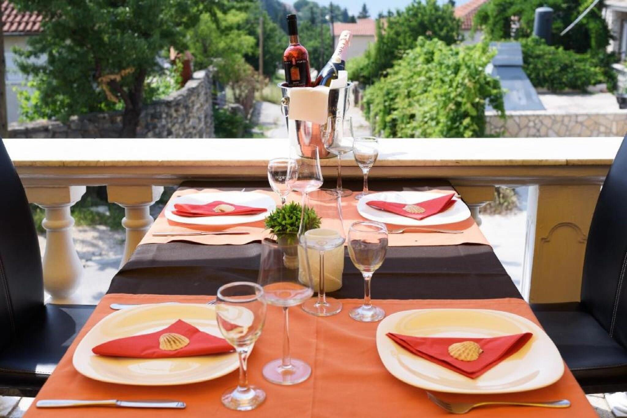 Apartments Smilje i Maslina is located in small place Karin Gornji, approximately 45 kilometers away from Zadar. A private terrace as well as a common BBQ grill with an outdoor dining area are at your disposal, which makes this place a perfect spot for a nice and relaxing vacation. Private parking is provided, reservation is not needed. Luggage storage is possible prior to check in and after check out, so you can explore the city a little more before your departure. A baby cot and highchair are available upon request. Laundry room is available with an additional coast of 5 euros. The property has a restaurant on-site. This one bedroom apartment with terrace can accommodate up to four people. It features SAT LCD TV as well as air-conditioning. The open space living room comes with sofa and sitting area, and it's combined with the equipped kitchen and dining area. The private bathroom comes with shower and toilet. Hair dryer as well as linens and towels are at your disposal. This location is perfect for guests who love to enjoy the sun and the sea, being close to the touristic center, but far enough to avoid the crowds and keep their peace and privacy. The closest sandy beach is 500 m away from Šljuncana beach. All You need can be found within 50 m range, such as restaurants, grocery store. Airport is 23 km away, while bus stop is only 500 m away.