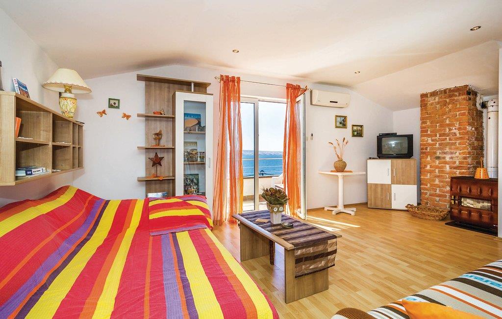 Dette enkelt og funktionelt indrettede feriehus ligger i den lille by Baric Draga, ikke langt fra Paklenica National Park. Når I træder ind i lejligheden, finder I et lille køkken med spiseplads. Herfra har I en storslået udsigt over Adriaterhavet og offshore-øen Pag.