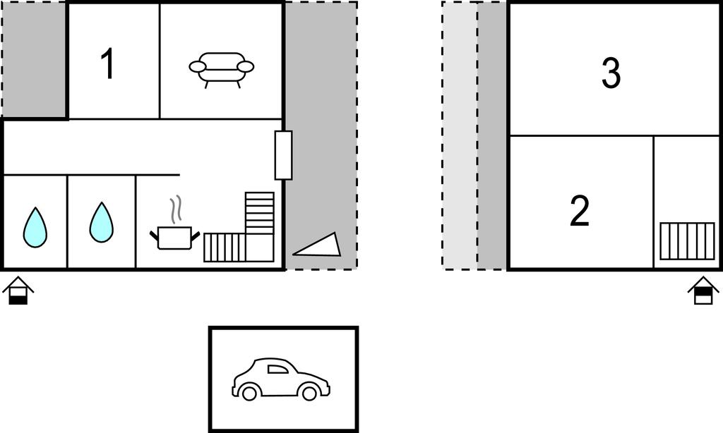 Opholdsstue/køkken 25m2 - 1 Soveplads. (Sofa, madras eller lignende).
