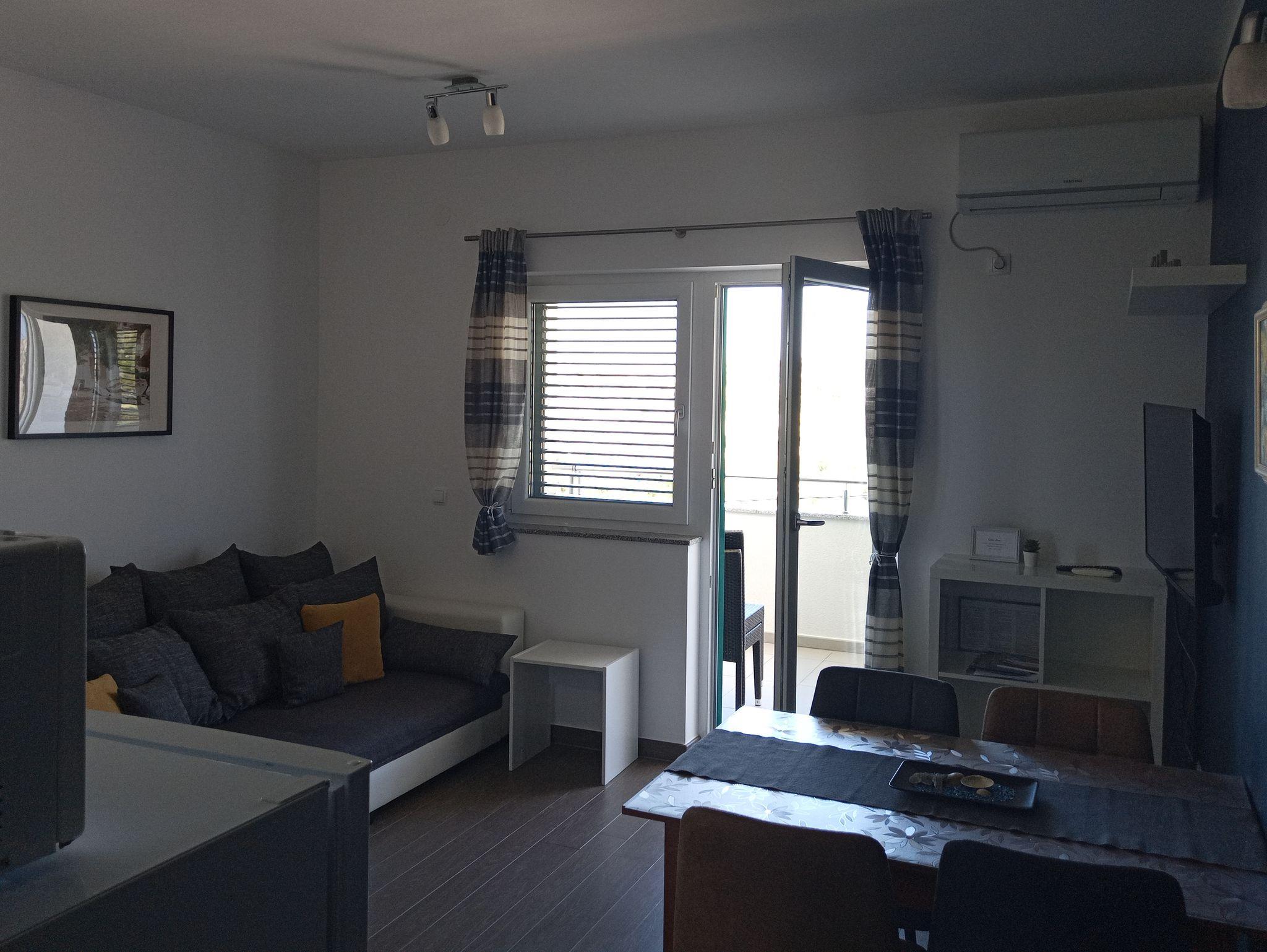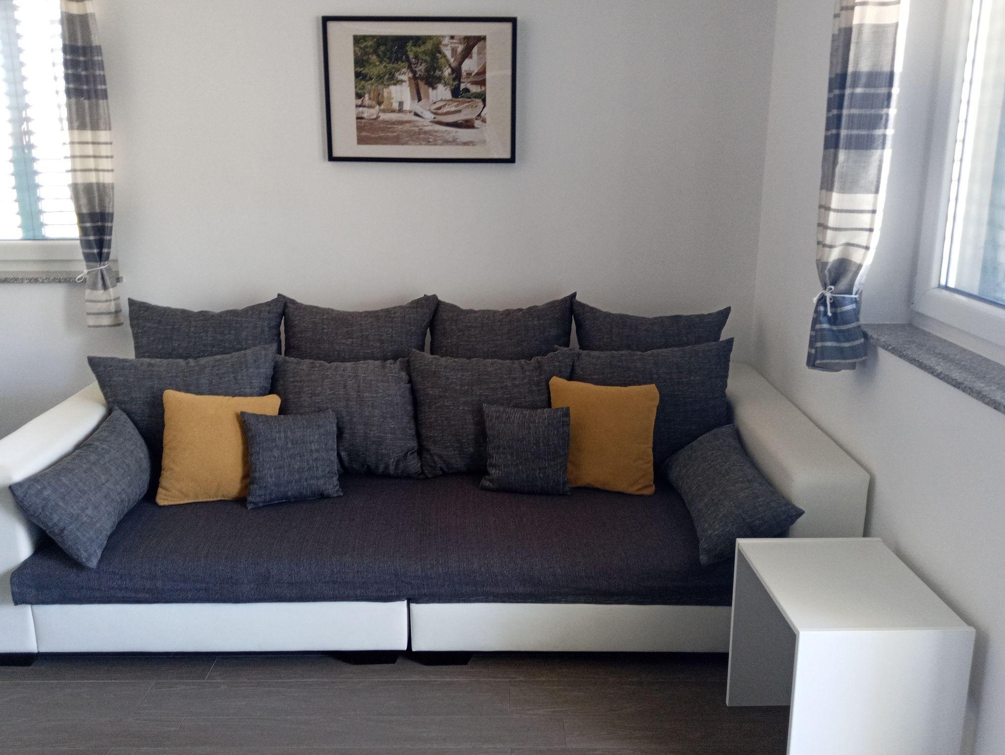Ferienwohnung bietet Platz für 4 Gäste. Die Betten sind in Schlafzimmern, die es 2 gibt, innerhalb einer Gesamtfläche von 55m2, angeordnet. Die Gäste haben einen eigenen Balkon zur Verfügung, auf der sie in warmen Sommernächten genießen können. Das Apartment bietet Meerblick. Es ist erlaubt, Speisen auf dem Gemeinschafts-Grill vorzubereiten. IM PREIS INBEGRIFFEN: Kurtaxe, Endreinigung, Klimatisierung, Parkplatz, Internet, Bügeleisen, Bügelbrett, Föhn. VERBINDLICHE ZUSÄTZLICHE KOSTEN: Aufzahlung für Kurzaufenthalte (prozentualer Zuschlag pro Nächtigungsanzahl: 30% - 1, 20% - 2, 10% - 3). Die Verfügbarkeit zusätzlicher Dienstleistungen in Ihrem reservierten Termin und die Preise derselben (falls nicht aufgeführt) müssen im Voraus überprüft werden. Zusätzliche Dienstleistungen die in der Zahlungsaufforderung nicht aufgeführt sind werden direkt beim Vermieter bezahlt, angenommen der Gast nutzt auch diese.