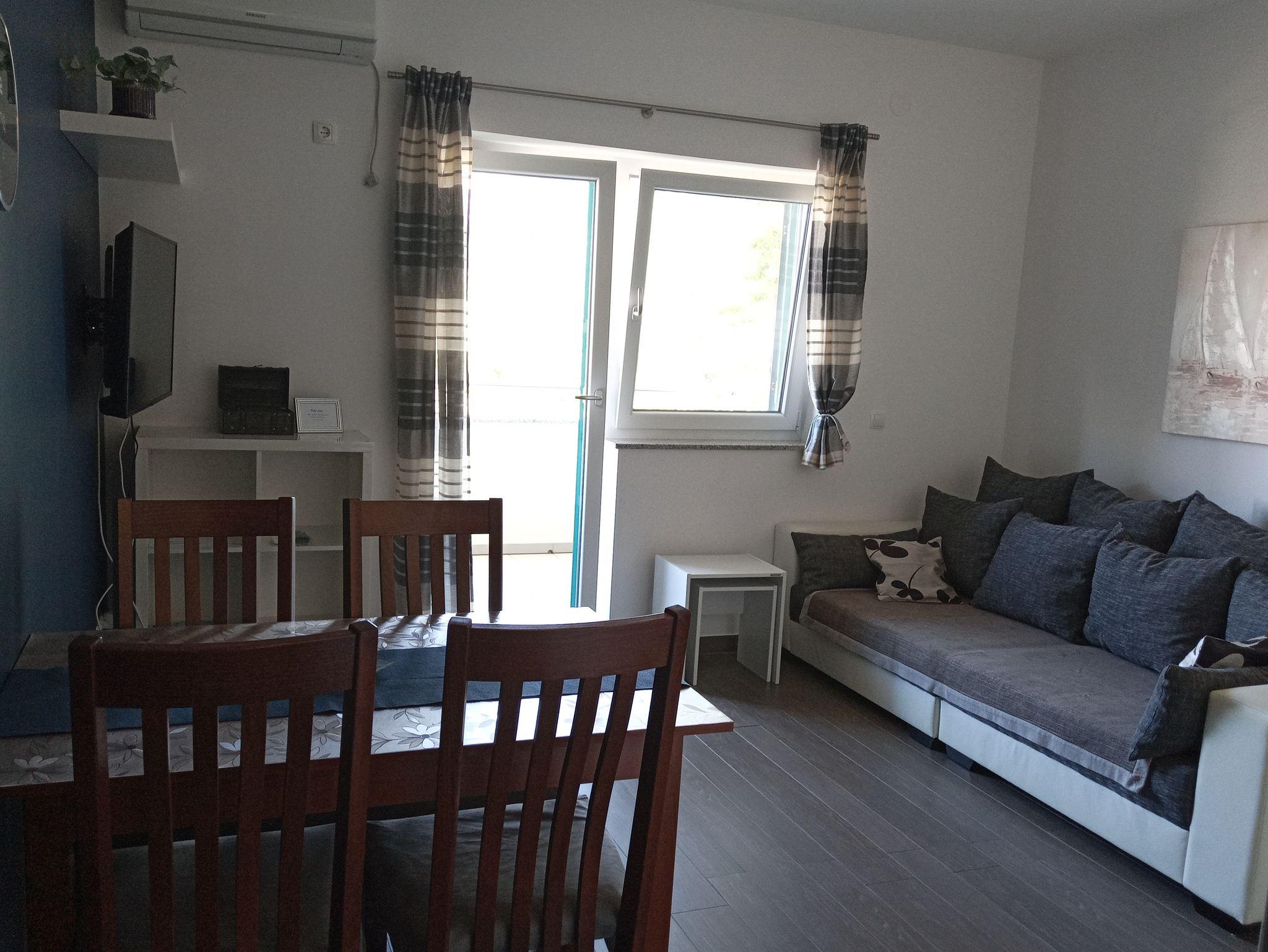 Ferienwohnung bietet Platz für 3 Gäste. Die Betten sind in Schlafzimmern, die es 1 gibt, und in Wohnzimmer, innerhalb einer Gesamtfläche von 43m2, angeordnet. Die Gäste haben einen eigenen Balkon zur Verfügung, auf der sie in warmen Sommernächten genießen können. Das Apartment bietet Meerblick. Es ist erlaubt, Speisen auf dem Gemeinschafts-Grill vorzubereiten. IM PREIS INBEGRIFFEN: Kurtaxe, Endreinigung, Klimatisierung, Parkplatz, Internet, Bügeleisen, Bügelbrett, Föhn. VERBINDLICHE ZUSÄTZLICHE KOSTEN: Aufzahlung für Kurzaufenthalte (prozentualer Zuschlag pro Nächtigungsanzahl: 30% - 1, 20% - 2, 10% - 3). Die Verfügbarkeit zusätzlicher Dienstleistungen in Ihrem reservierten Termin und die Preise derselben (falls nicht aufgeführt) müssen im Voraus überprüft werden. Zusätzliche Dienstleistungen die in der Zahlungsaufforderung nicht aufgeführt sind werden direkt beim Vermieter bezahlt, angenommen der Gast nutzt auch diese.