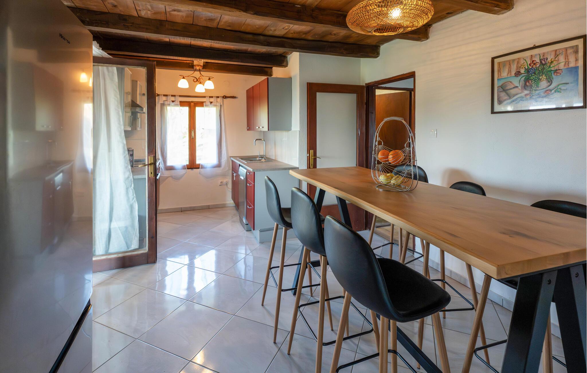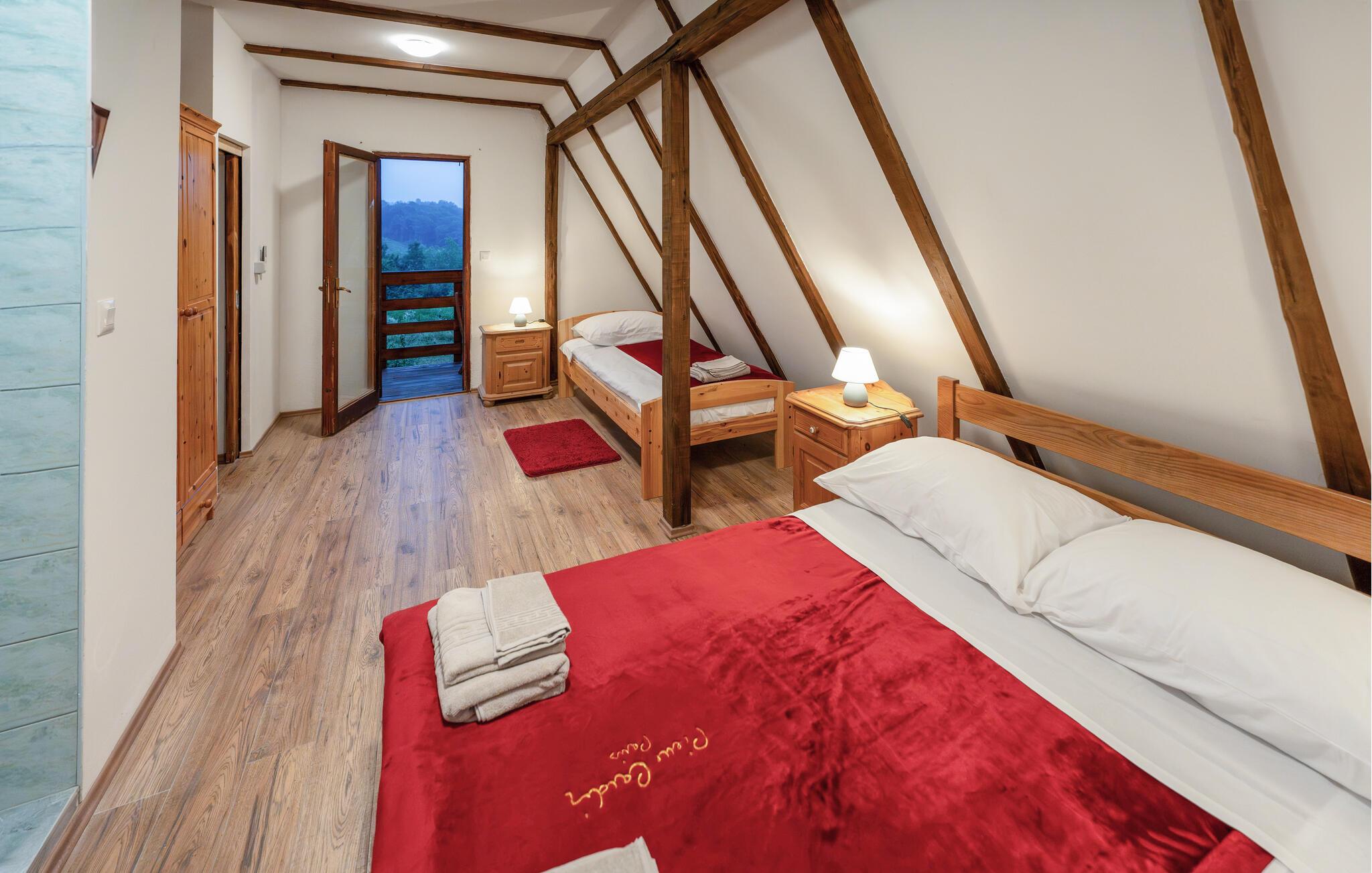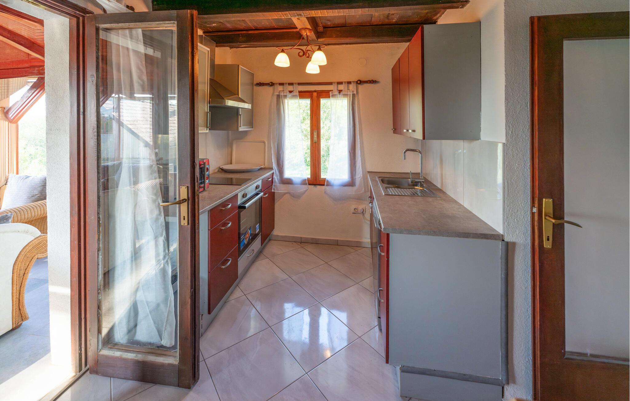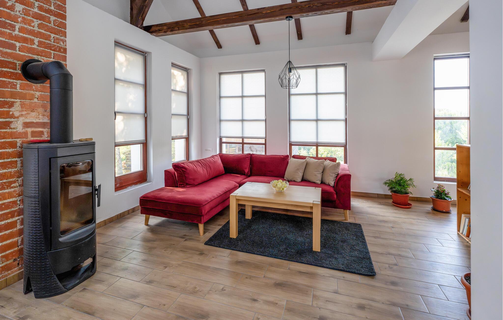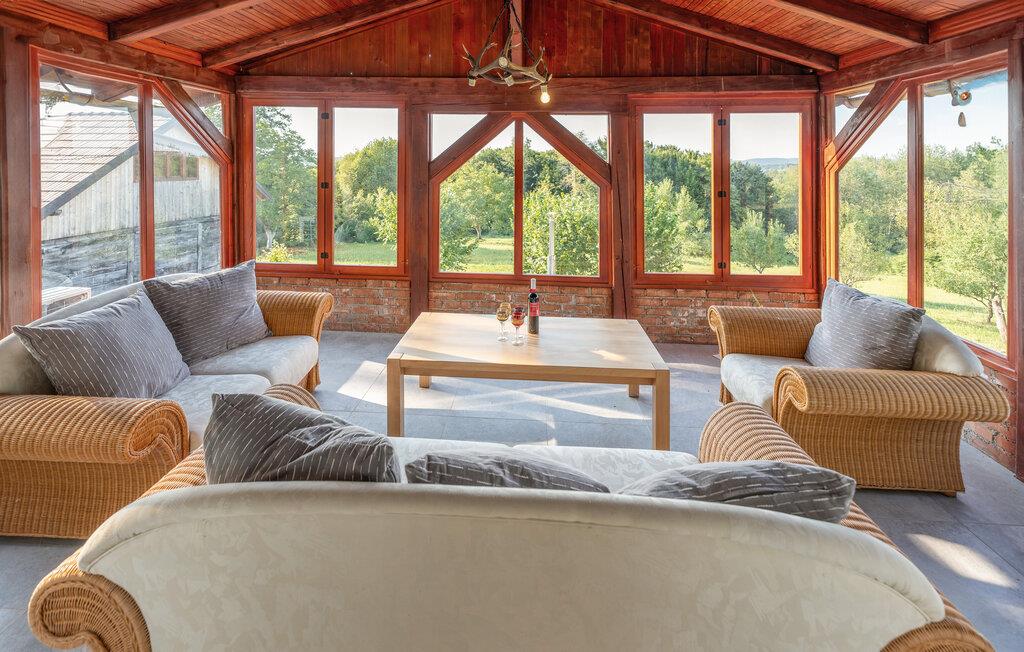 Velkommen til dette stilfulde feriehus i Vojnic, der imponerer med sin åbne indretning og høje lofter. Den moderne indretning og galleriet skaber en lys atmosfære, der indbyder til afslapning. I det hyggelige opholdsrum sørger den knitrende brændeovn for dejlig varme, mens I kan nyde udsigten til den omkringliggende natur fra vinterhaven. Spil en omgang billard, eller slap af i den udendørs jacuzzi med udsigt over det idylliske landskab. Den overdækkede grillplads i haven er ideel til hyggelige aftener i det fri.