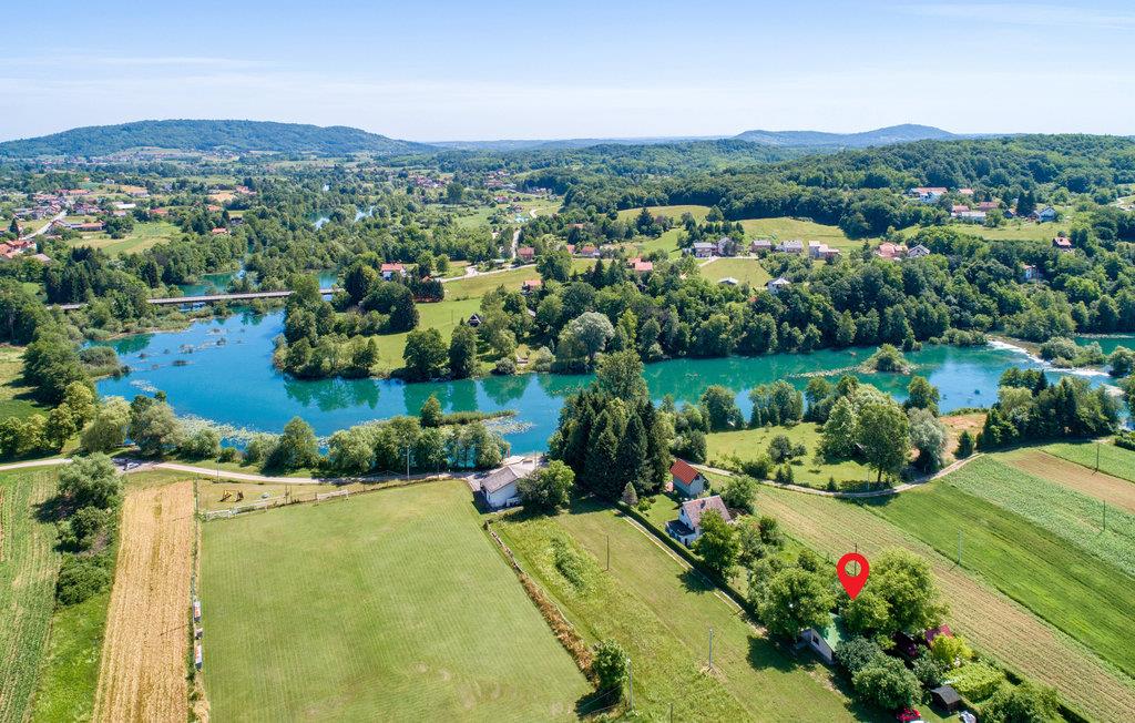 Dette lille feriehus ligger ved floden Mreznica. Det er perfekt til en rolig og ubesværet ferie i den flotte natur. Huset består af stueetagen, hvor der er køkken, stue og badeværelse, og en hems med sovemuligheder, hvor den laveste lofthøjde i siden er på ca. 10 cm. På den overdækkede terrasse med bænke og stole kan I grille og nyde hyggelige eftermiddage i skyggen af et valnødtræ. På de varme sommerdage kan I bade i fantastisk klart vand i floden. I kan vandre eller cykle på de talrige superflotte vandre- og cykelstier, som vil føre jer igennem bakker og lysninger ved flodens bred.