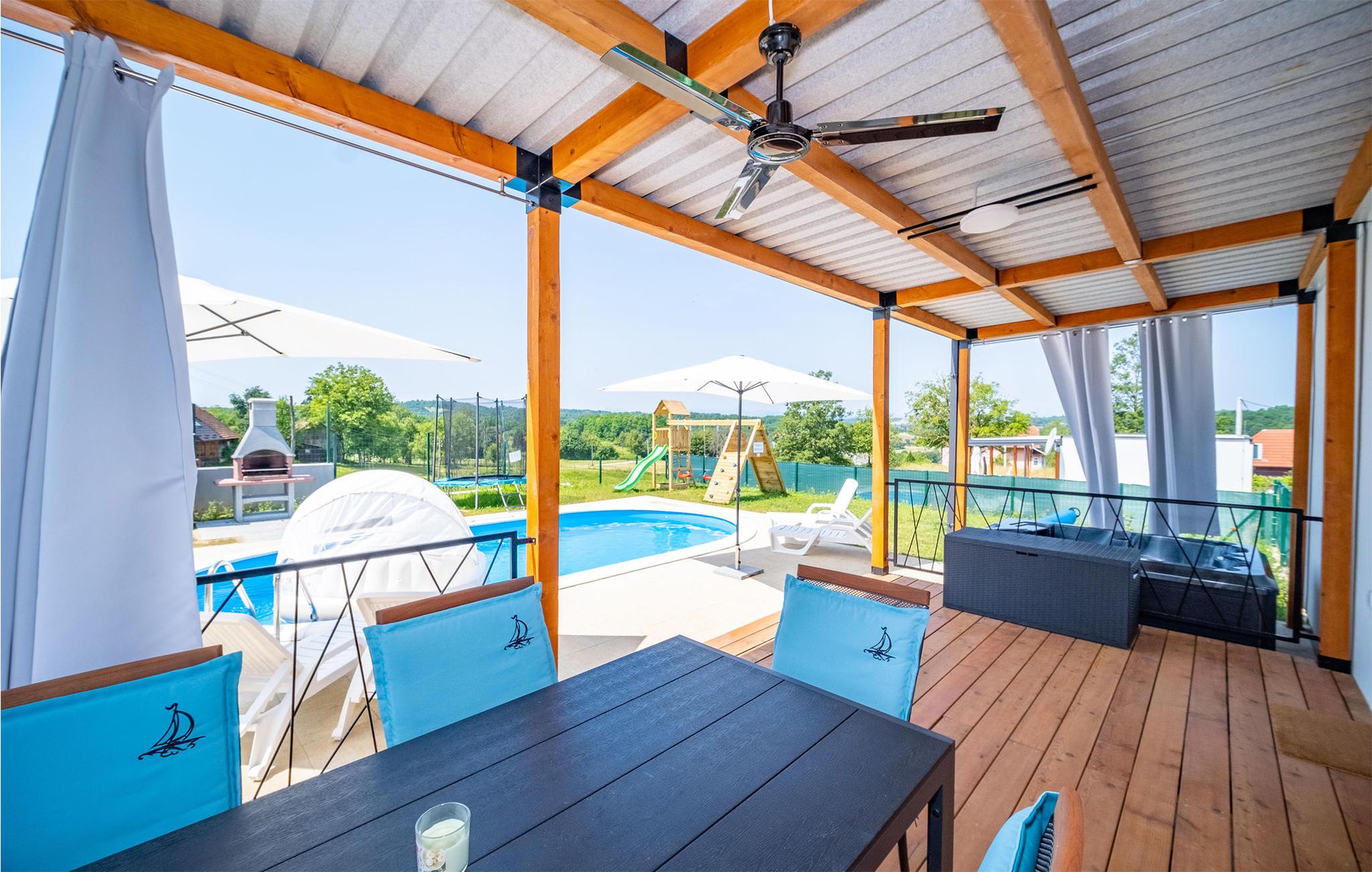 Nyd dejlige timer udendørs, mens I soler jer i udstrakt grad eller en hyggelig grilleftermiddag på terrassen, glemmes alle tanker om hverdagen hurtigt, børnene bliver godt underholdt takket være mange legeredskaber. Forfriskende dukkert i poolen fuldender oplevelsen. Et boblende ophold i det udendørs spabad er særligt gavnligt.