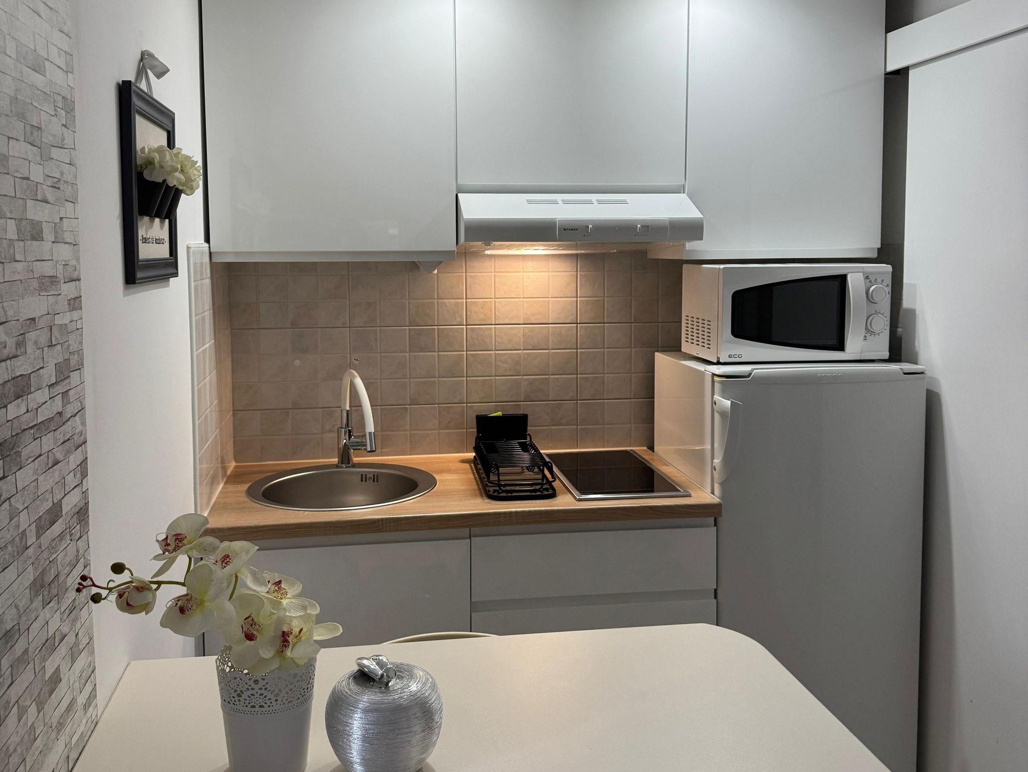 Studio bietet Platz für 2 Gäste. Die Betten sind in Wohnzimmer, innerhalb einer Gesamtfläche von 22m2, angeordnet. Es ist erlaubt, Speisen auf dem Gemeinschafts-Grill vorzubereiten. Die reservierte Unterkunftseinheit hat keinen Balkon und keine Terrasse. IM PREIS INBEGRIFFEN: Kurtaxe, Endreinigung, Klimatisierung, Parkplatz, Internet, Kinderbett, Bügeleisen, Bügelbrett, Föhn. Die Verfügbarkeit zusätzlicher Dienstleistungen in Ihrem reservierten Termin und die Preise derselben (falls nicht aufgeführt) müssen im Voraus überprüft werden. Zusätzliche Dienstleistungen die in der Zahlungsaufforderung nicht aufgeführt sind werden direkt beim Vermieter bezahlt, angenommen der Gast nutzt auch diese.