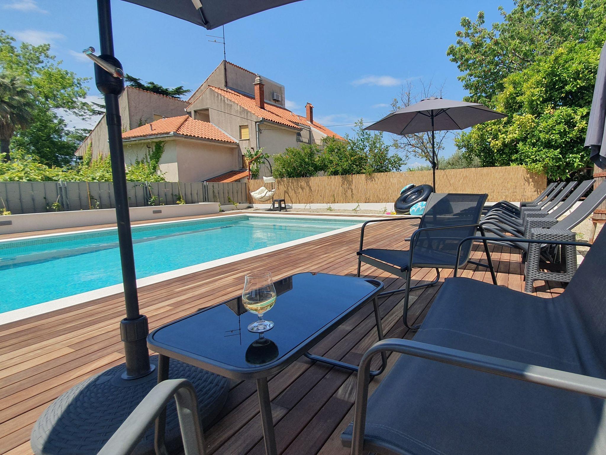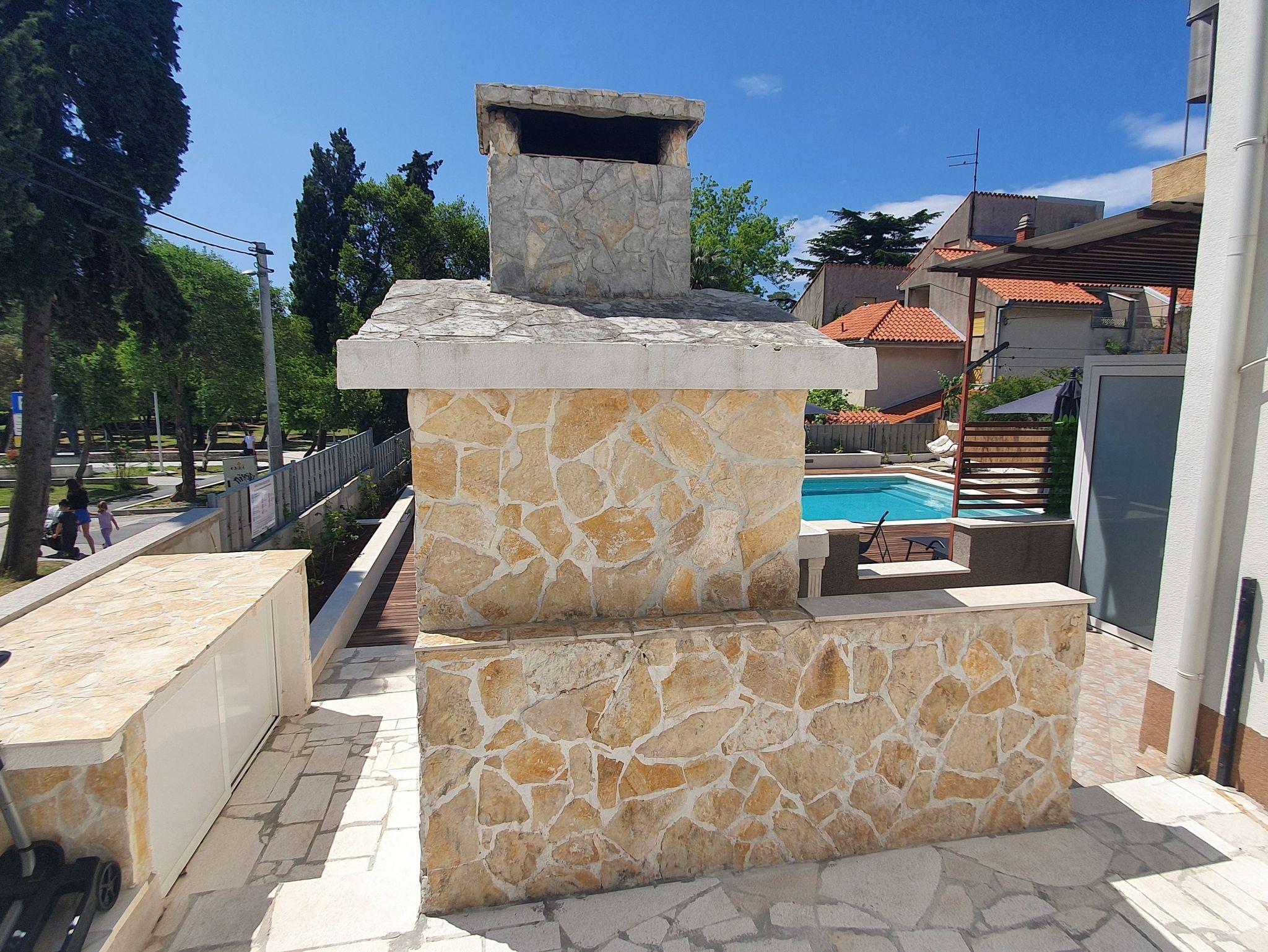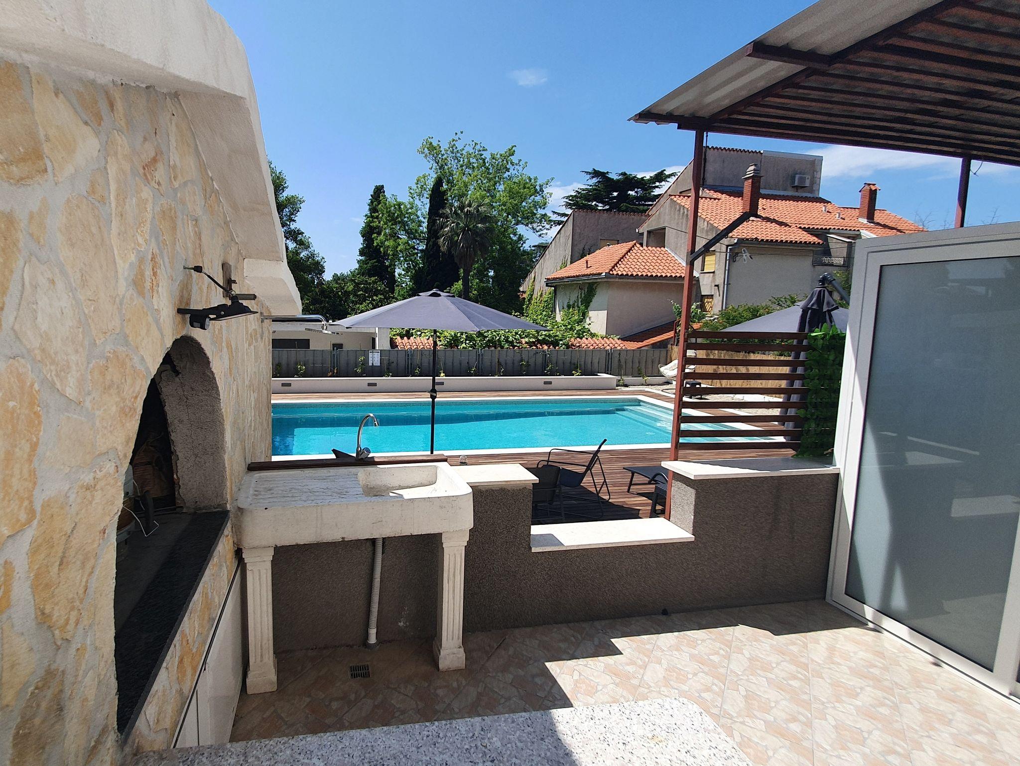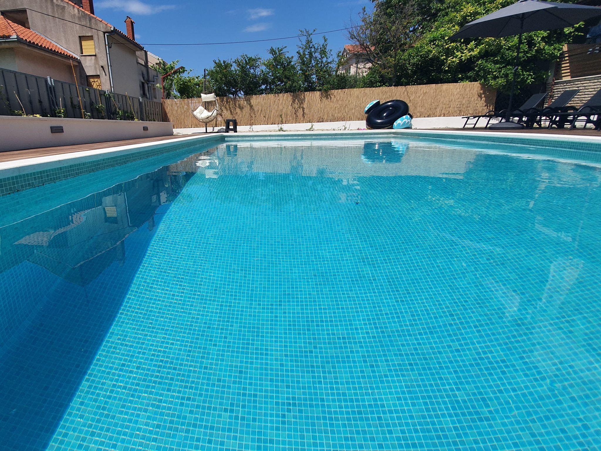 Hof (100m2, Kinderbereich, Sitzbereich), Parkplatz (Anzahl der Parkplätze: 2, Entfernung vom Objekt: im Hof), Parkplatz (Anzahl der Parkplätze: 2, Entfernung vom Objekt: 20 m), Pool: gemeinsam, Dimensionen: 9m x 4.5m x 1.5m, Wassertyp: Süßwasser, Heizung: Ja, WiFi Internet, Föhn, Bügeleisen, Bügelbrett, Tragbarer Grill, Kinderbett