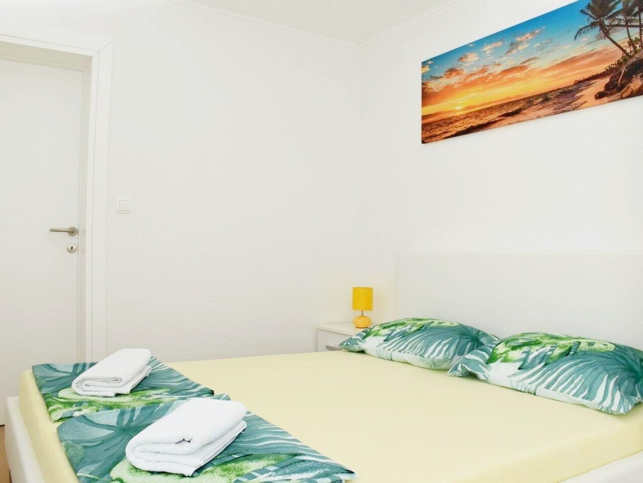 Ferienwohnung bietet Platz für 4 Gäste. Die Betten sind in Schlafzimmern, die es 1 gibt, und in Wohnzimmer, innerhalb einer Gesamtfläche von 44m2, angeordnet. Die Gäste haben eine eigene Terrasse zur Verfügung, auf der sie in warmen Sommernächten genießen können. Das Apartment bietet Meerblick. Für vollen Genuss und Entspannung gibt es einen privaten Grill für Gäste dieser Unterkunft. IM PREIS INBEGRIFFEN: Kurtaxe, Endreinigung, Klimatisierung, Parkplatz, Internet, Bügeleisen, Bügelbrett, Föhn, tragbarer Grill. VERBINDLICHE ZUSÄTZLICHE KOSTEN: Aufzahlung für Kurzaufenthalte (prozentualer Zuschlag pro Nächtigungsanzahl: 30% - 1, 20% - 2, 10% - 3). Die Verfügbarkeit zusätzlicher Dienstleistungen in Ihrem reservierten Termin und die Preise derselben (falls nicht aufgeführt) müssen im Voraus überprüft werden. Zusätzliche Dienstleistungen die in der Zahlungsaufforderung nicht aufgeführt sind werden direkt beim Vermieter bezahlt, angenommen der Gast nutzt auch diese.
