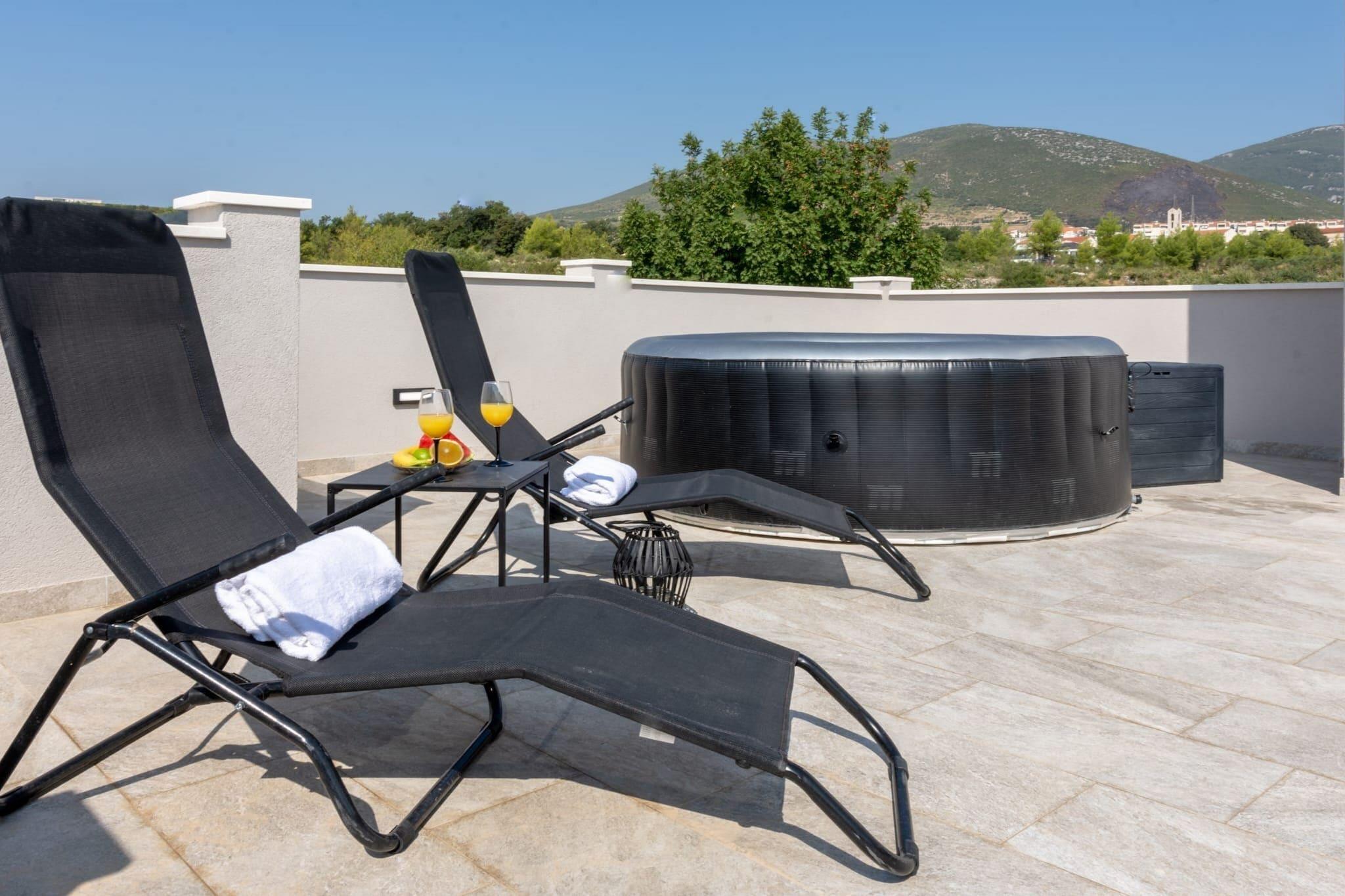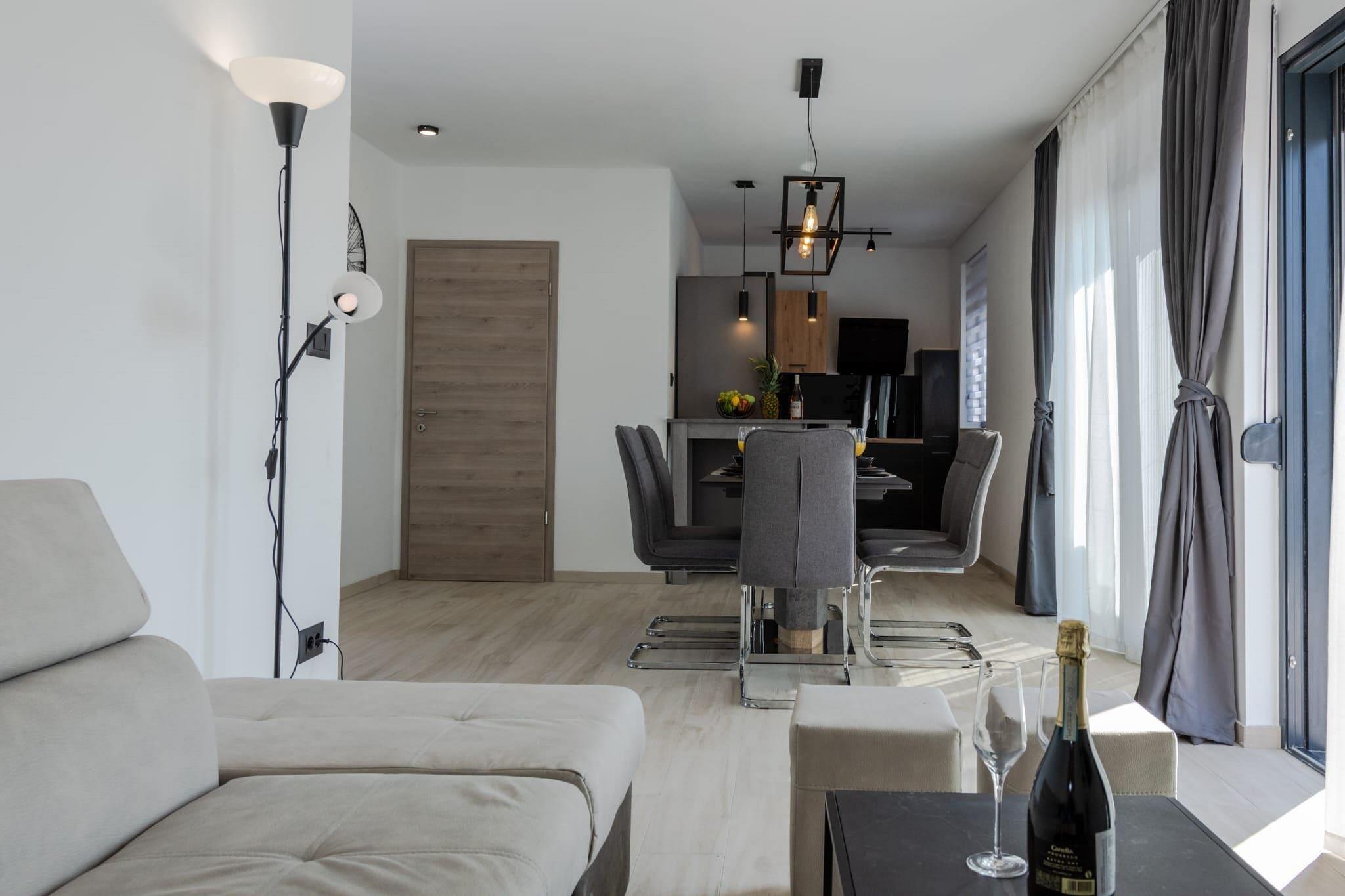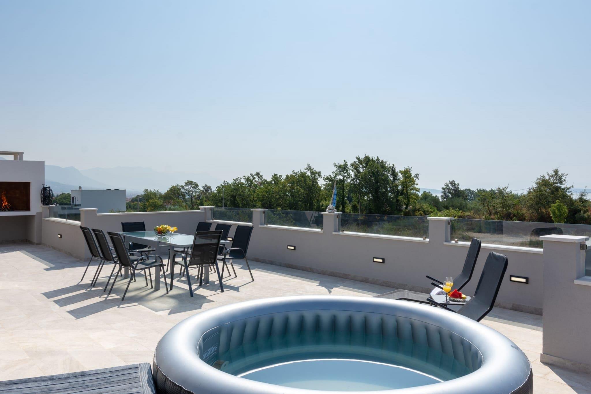 Villa Infinity is located in Kastel Novi, a small place in the Split region. A spacious terrace fitted with sun beds and sun umbrellas as well as a seasonal outdoor swimming pool, private hot tub and garden is at your disposal. An outdoor kitchen with BBQ facilities is at your disposal. This property has access to an electric car charging station. Private parking is provided, reservation is not requested. Garage is available. A baby cot is available upon request. Pets are allowed. This lovely six bedroom apartment with furnished terrace and a private hot-tub is perfectly fit for twelve people. It features free WiFi, air conditioning as well as LCD TV. The open space living room comes with sofa and sitting area, and it's combined with the fully equipped kitchen and dining area. All the bedrooms are furnished with a large double beds.Two private bathrooms come with a shower and toilet, while the third one comes with bathtub. You have access to washing machine, iron and ironing board. Free toiletries, hair dryer as well as linens and towels are at your disposal. Villa Infinity is located in Kastel Novi, one of the seven coastal villages between Split and Trogir. With a beautiful seaside promenade, rich culture, local taverns, shady parks and lovely sight seeings, Kastel Novi makes a peaceful vacation destination. The nearest beach is 2 km from the accommodation. The nearest restaurant is 900 m and the nearest market 800m from the property. The ferry port is located 22 km from the accommodation. Split airport is 2 km away. Bus stop is located 300 m from the property.