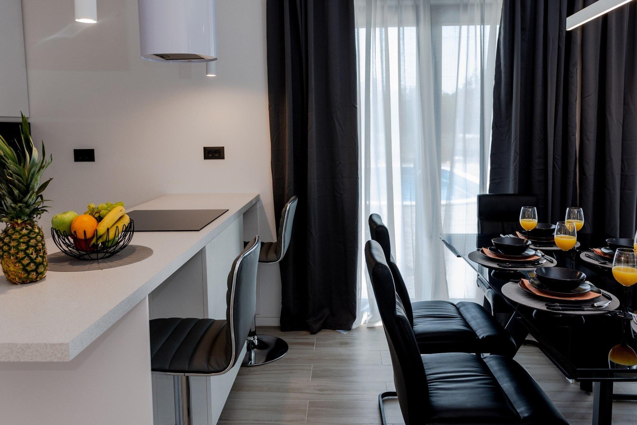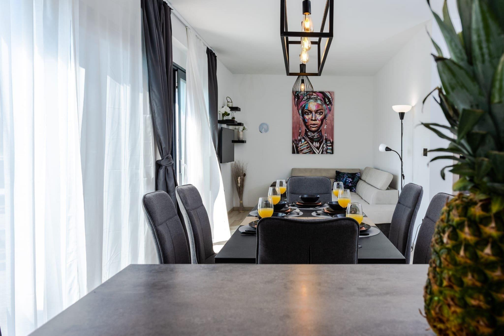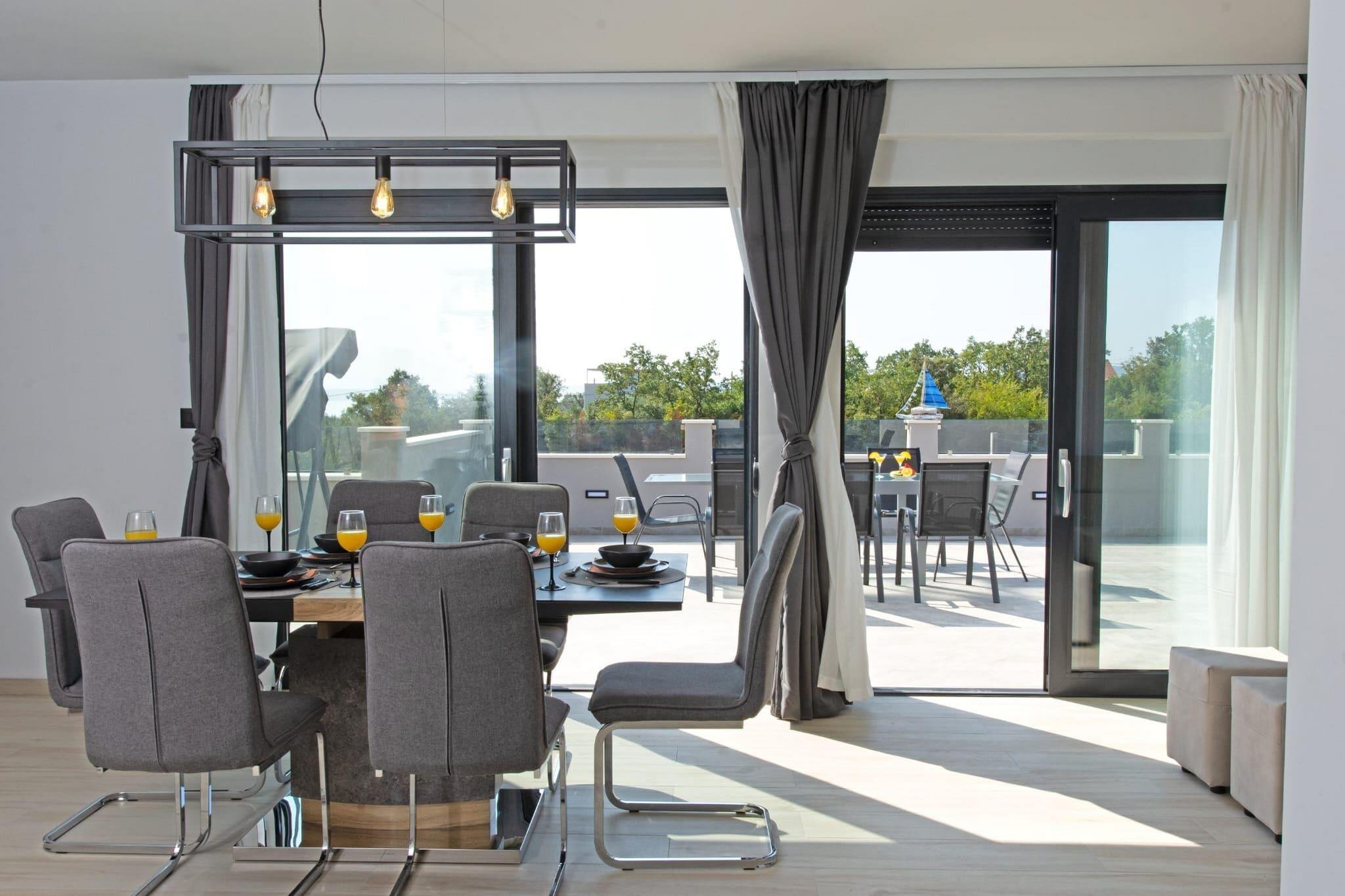 Villa Infinity is located in Kastel Novi, a small place in the Split region. A spacious terrace fitted with sun beds and sun umbrellas as well as a seasonal outdoor swimming pool, private hot tub and garden is at your disposal. An outdoor kitchen with BBQ facilities is at your disposal. This property has access to an electric car charging station. Private parking is provided, reservation is not requested. Garage is available. A baby cot is available upon request. Pets are allowed. This lovely six bedroom apartment with furnished terrace and a private hot-tub is perfectly fit for twelve people. It features free WiFi, air conditioning as well as LCD TV. The open space living room comes with sofa and sitting area, and it's combined with the fully equipped kitchen and dining area. All the bedrooms are furnished with a large double beds.Two private bathrooms come with a shower and toilet, while the third one comes with bathtub. You have access to washing machine, iron and ironing board. Free toiletries, hair dryer as well as linens and towels are at your disposal. Villa Infinity is located in Kastel Novi, one of the seven coastal villages between Split and Trogir. With a beautiful seaside promenade, rich culture, local taverns, shady parks and lovely sight seeings, Kastel Novi makes a peaceful vacation destination. The nearest beach is 2 km from the accommodation. The nearest restaurant is 900 m and the nearest market 800m from the property. The ferry port is located 22 km from the accommodation. Split airport is 2 km away. Bus stop is located 300 m from the property.