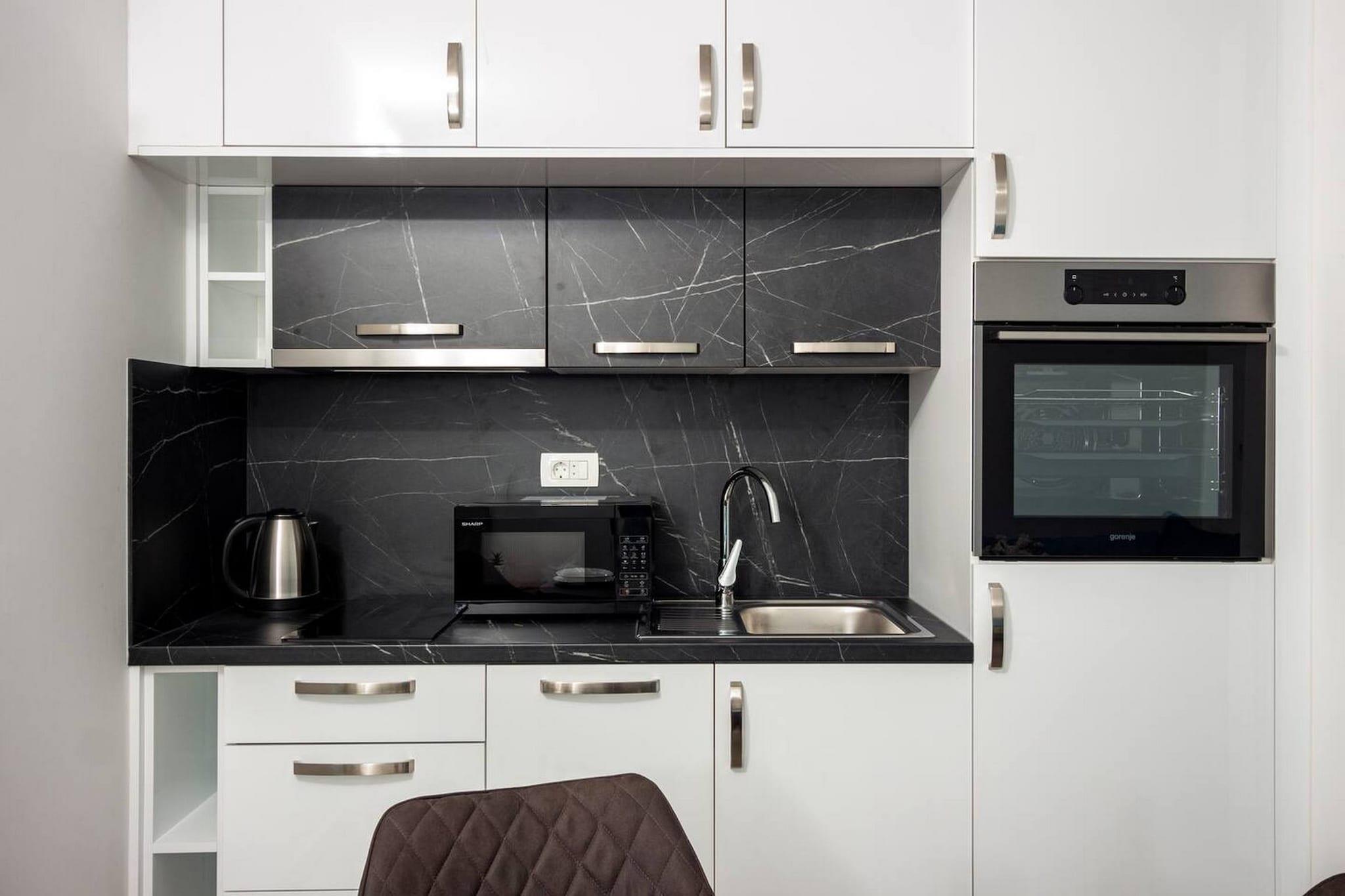 The Modern Apartments with Private Balcony in Kaštel Novi, Split-Dalmatia County, Croatia, offer a contemporary and comfortable stay with scenic views. Located between Split and Trogir, these apartments provide easy access to nearby beaches, local shops, and dining. The private balcony is perfect for relaxing and enjoying the Mediterranean atmosphere. Kaštel Novi is known for its charming old town, historic sites, and proximity to Split Airport, making it a convenient base for exploring the Dalmatian coast. Note: Private parking is available, reservation is not required. Wi-Fi is available throughout the property. Pets are not allowed. Baby cot is available on request. This one-bedroom can accommodate up to four guests. It features a cable TV/flat-screen TV and is combined with a living room seating area, sofa, and kitchen. The private bathroom is equipped with a shower and toilet. Free toiletries are available on request. Thanks to its excellent location, everything you'll need for your vacation is just a short walk away from the property. Grocery stores, cafes, restaurants—everything is within a 1.80 m radius. The beach is 800 m away from the property. The airport is 2.89 km away from the property.