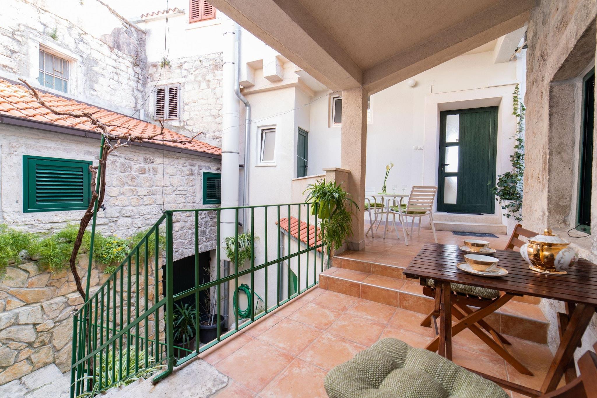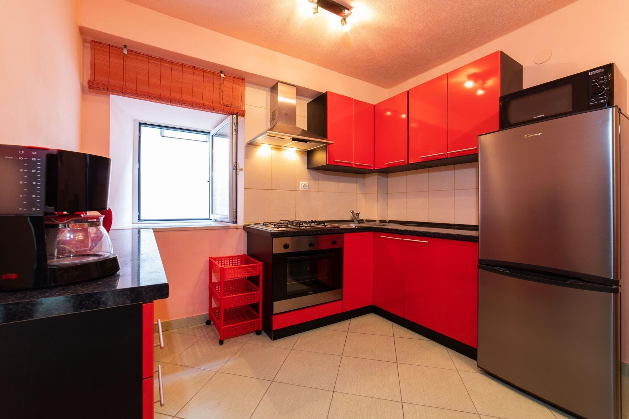 The Seafront Villa with Furnished Sun Terrace in Kaštel Stari, located in Split-Dalmatia County, Croatia, is an appealing property that combines stunning coastal views with modern amenities.The Seafront Villa with Furnished Sun Terrace in Kaštel Stari is a fantastic option for travelers looking to experience the beauty of the Croatian coast. Its combination of luxury, comfort, and proximity to attractions makes it a desirable destination for various types of travelers. Note: Private parking is available, reservation is not required. Baggage drop-off is available before check-in. Wi-Fi is available throughout the property. Pets are not allowed. This four-bedroom can accommodate up to eight guests. It features a TV and is combined with a living room and kitchen. The private bathroom is equipped with a shower and toilet. Thanks to its excellent location, everything you'll need for your vacation is just a short walk away from the property. Restaurant and Caffe / bar - 10.00 m, Grocery store / supermarket -80.00 m, Market -70.00 m. The beach is 200 m away from the property. The airport is 4.4 km away from the property.