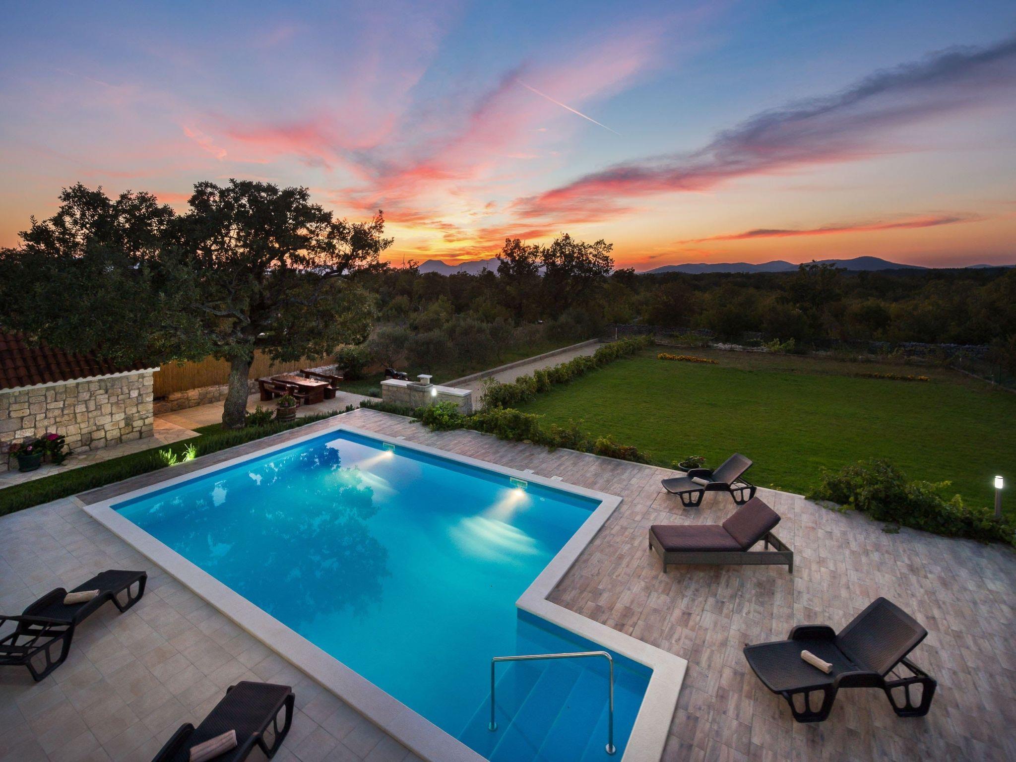 This holiday villa with a modern and tasteful interior is situated on the edge of a forest in a quiet residential area of the little village Katuni by the blue Adriatic coast along the Makarska Riviera. You can spend a relaxing holiday here in a green landscape with plenty of privacy.