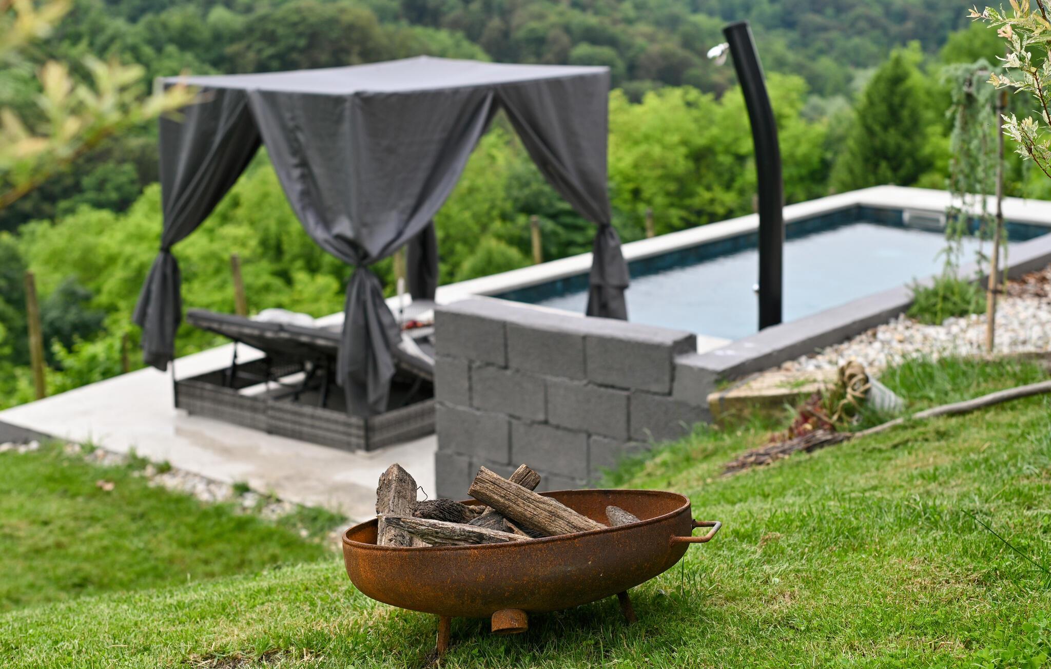 Nyd en vidunderlig udsigt over landskabet fra dette indbydende feriehus, hvor der både er pool og spabad.