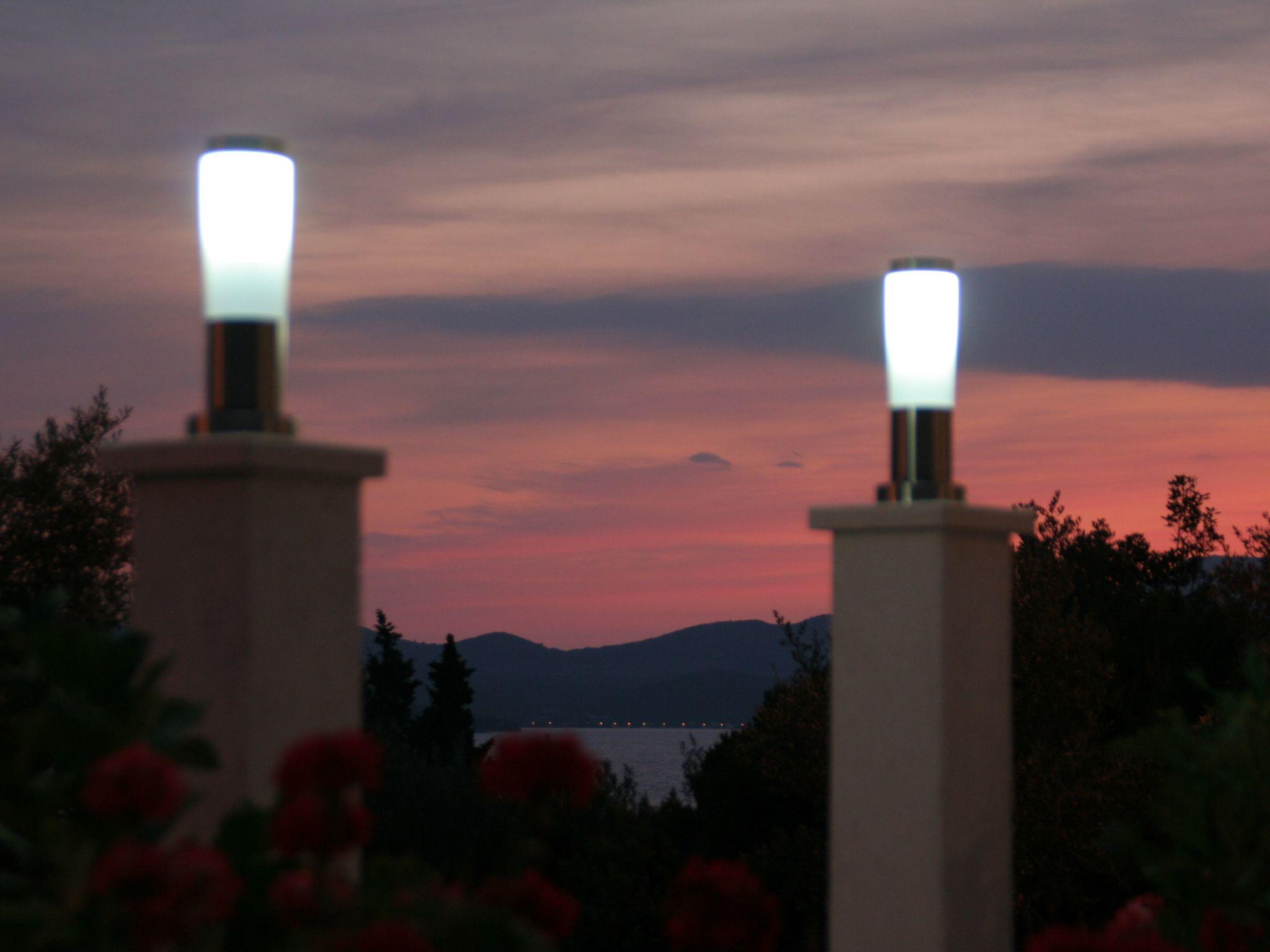 Step outside to the apartment's delightful terrace, where comfort meets nature. This inviting space is fitted with garden furniture, a sunshade, and two garden loungers, ideal for soaking up the Dalmatian sun or enjoying meals alfresco. The communal garden offers a lush, green backdrop for leisurely afternoons. Furthermore, the exclusive roof terrace provides a serene spot for private relaxation, allowing you to unwind in peace.