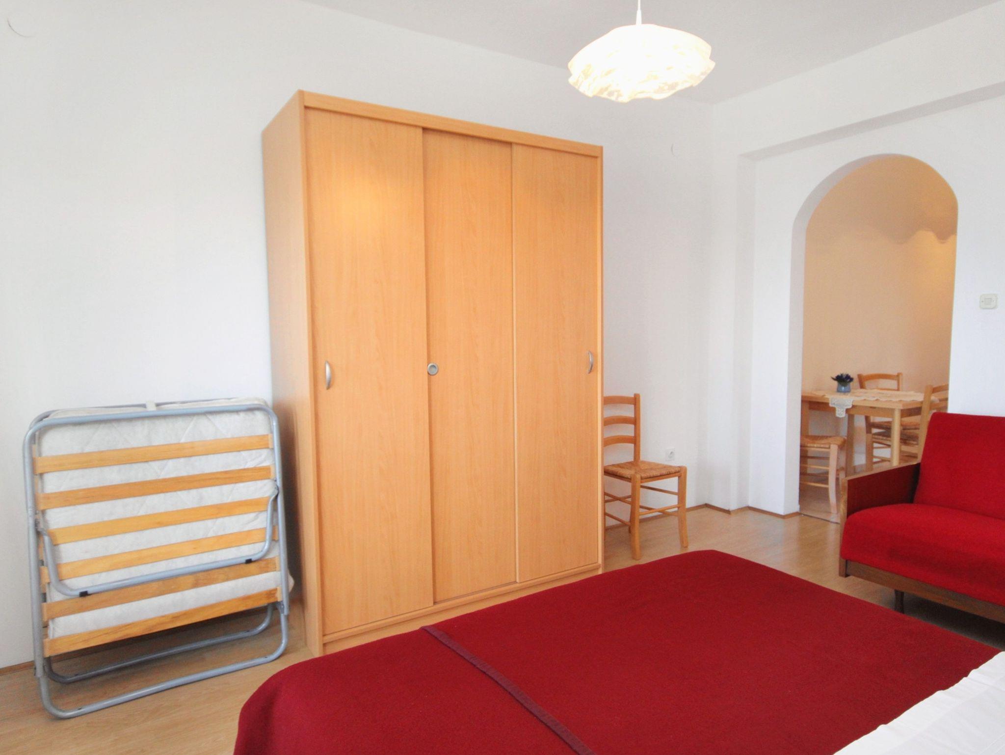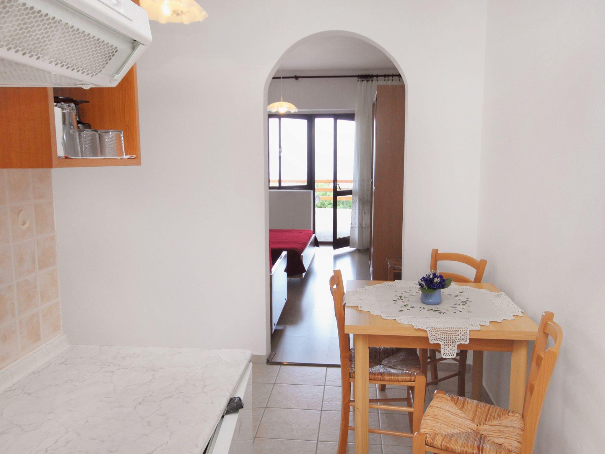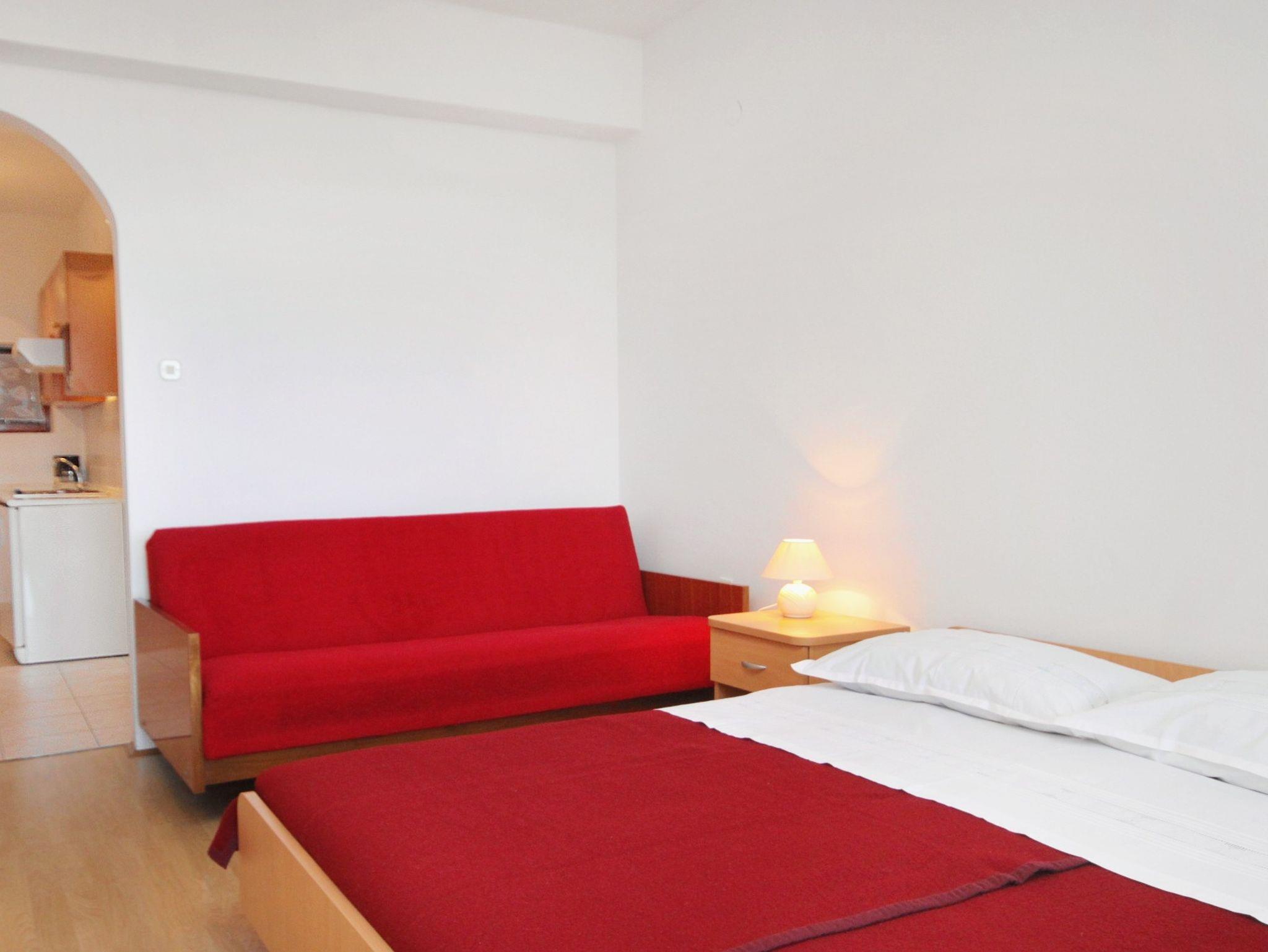 Studio bietet Platz für 3 Gäste. Die Betten sind in Schlafzimmern, die es 1 gibt, innerhalb einer Gesamtfläche von 30m2, angeordnet. Die Gäste haben eine eigene Terrasse zur Verfügung, auf der sie in warmen Sommernächten genießen können. Das Studio-Apartment bietet Meerblick. IM PREIS INBEGRIFFEN: Kurtaxe, Endreinigung, Parkplatz, Garage, Internet, Sonnenschirm. VERBINDLICHE ZUSÄTZLICHE KOSTEN: Aufzahlung für Kurzaufenthalte (prozentualer Zuschlag pro Nächtigungsanzahl: 30% - 1, 20% - 2, 10% - 3). Die Verfügbarkeit zusätzlicher Dienstleistungen in Ihrem reservierten Termin und die Preise derselben (falls nicht aufgeführt) müssen im Voraus überprüft werden. Zusätzliche Dienstleistungen die in der Zahlungsaufforderung nicht aufgeführt sind werden direkt beim Vermieter bezahlt, angenommen der Gast nutzt auch diese.