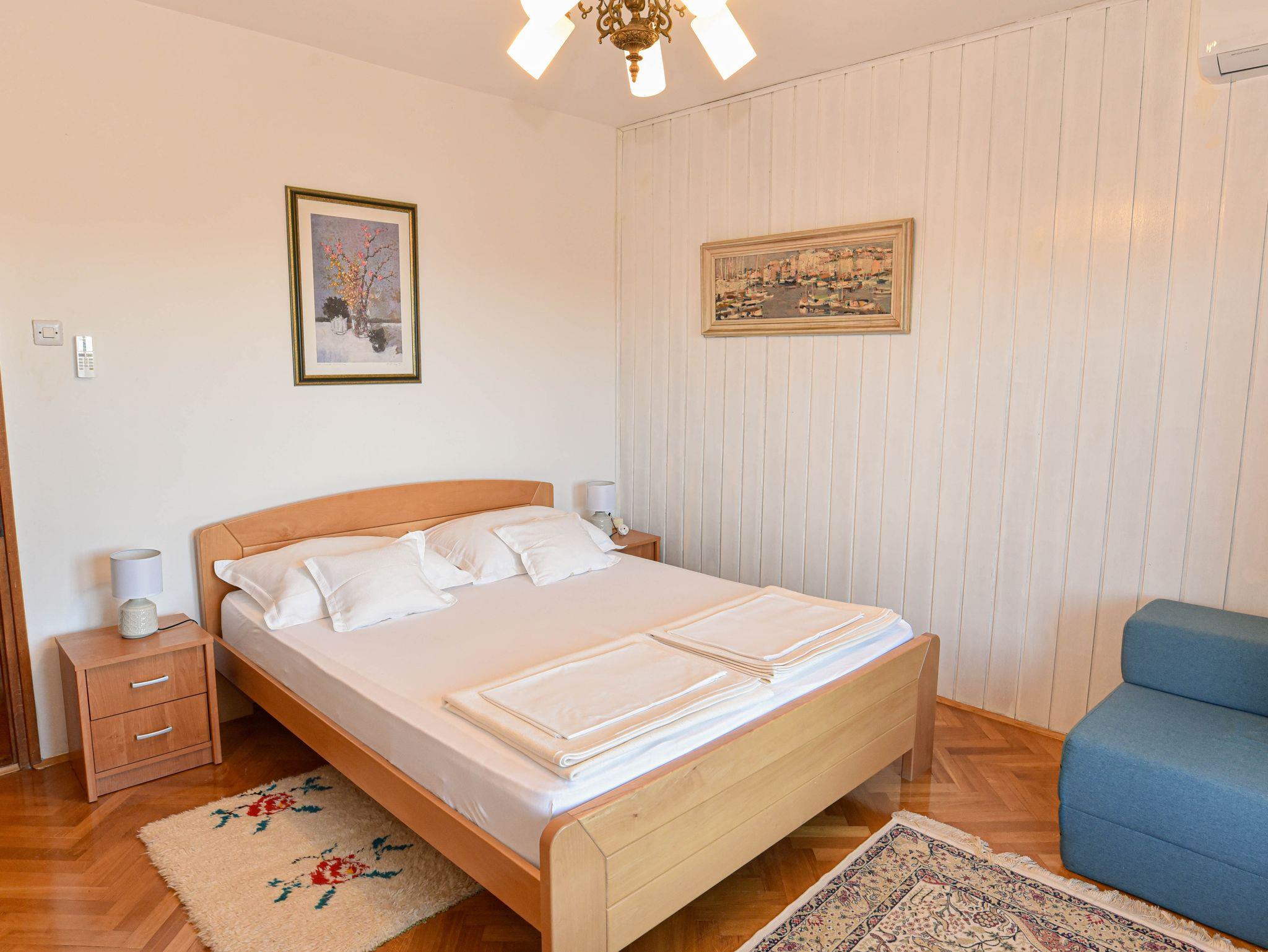 Ferienwohnung bietet Platz für 5 Gäste. Die Betten sind in Schlafzimmern, die es 2 gibt, und in Wohnzimmer, innerhalb einer Gesamtfläche von 49m2, angeordnet. Die Gäste haben eine eigene Terrasse zur Verfügung, auf der sie in warmen Sommernächten genießen können. Das Apartment bietet Meerblick. Für vollen Genuss und Entspannung gibt es einen privaten Grill für Gäste dieser Unterkunft. IM PREIS INBEGRIFFEN: Kurtaxe, Endreinigung, Klimatisierung, Parkplatz, Internet, Föhn. Die Verfügbarkeit zusätzlicher Dienstleistungen in Ihrem reservierten Termin und die Preise derselben (falls nicht aufgeführt) müssen im Voraus überprüft werden. Zusätzliche Dienstleistungen die in der Zahlungsaufforderung nicht aufgeführt sind werden direkt beim Vermieter bezahlt, angenommen der Gast nutzt auch diese.