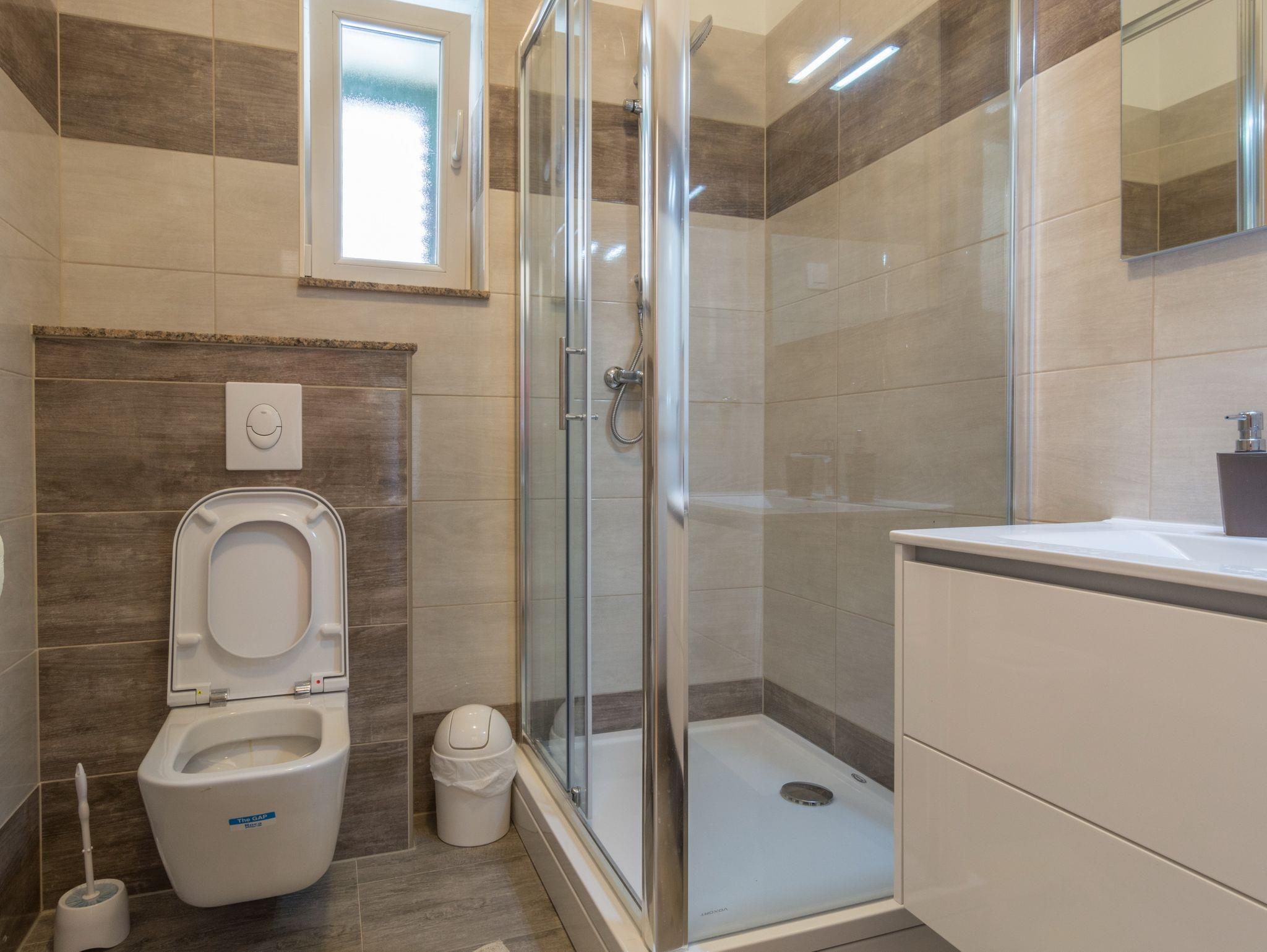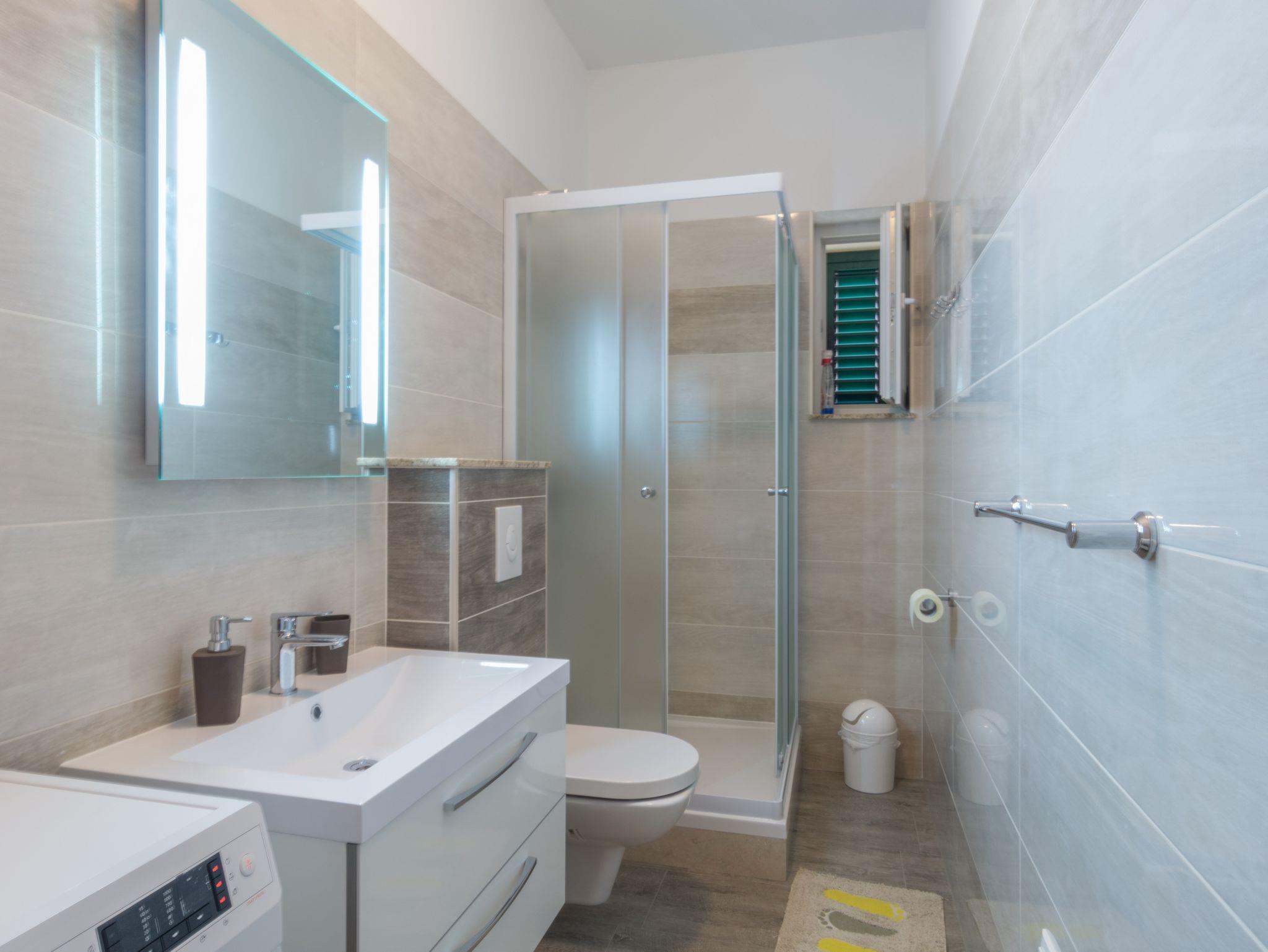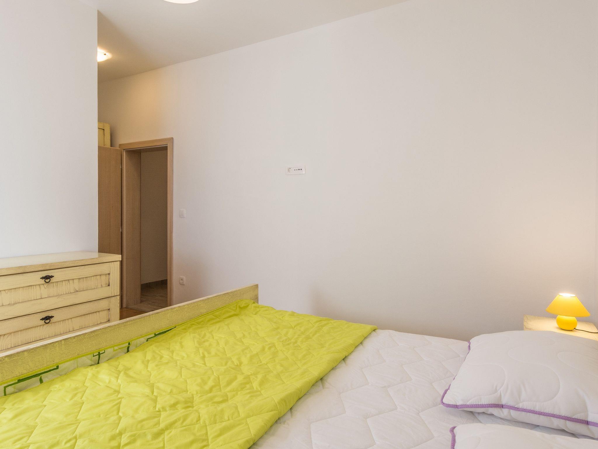 Ferienwohnung bietet Platz für 4 Gäste. Die Betten sind in Schlafzimmern, die es 2 gibt, innerhalb einer Gesamtfläche von 63m2, angeordnet. Die Gäste haben einen eigenen Balkon zur Verfügung, auf der sie in warmen Sommernächten genießen können. Das Apartment bietet Meerblick. Es ist erlaubt, Speisen auf dem Gemeinschafts-Grill vorzubereiten. IM PREIS INBEGRIFFEN: Kurtaxe, Endreinigung, Klimatisierung, Parkplatz, Internet, Kinderbett, Bügeleisen, Bügelbrett, Föhn, 1 Bett für Kinder (im Preis enthalten). VERBINDLICHE ZUSÄTZLICHE KOSTEN: Aufzahlung für Kurzaufenthalte (prozentualer Zuschlag pro Nächtigungsanzahl: 30% - 1, 20% - 2, 10% - 3). Die Verfügbarkeit zusätzlicher Dienstleistungen in Ihrem reservierten Termin und die Preise derselben (falls nicht aufgeführt) müssen im Voraus überprüft werden. Zusätzliche Dienstleistungen die in der Zahlungsaufforderung nicht aufgeführt sind werden direkt beim Vermieter bezahlt, angenommen der Gast nutzt auch diese.