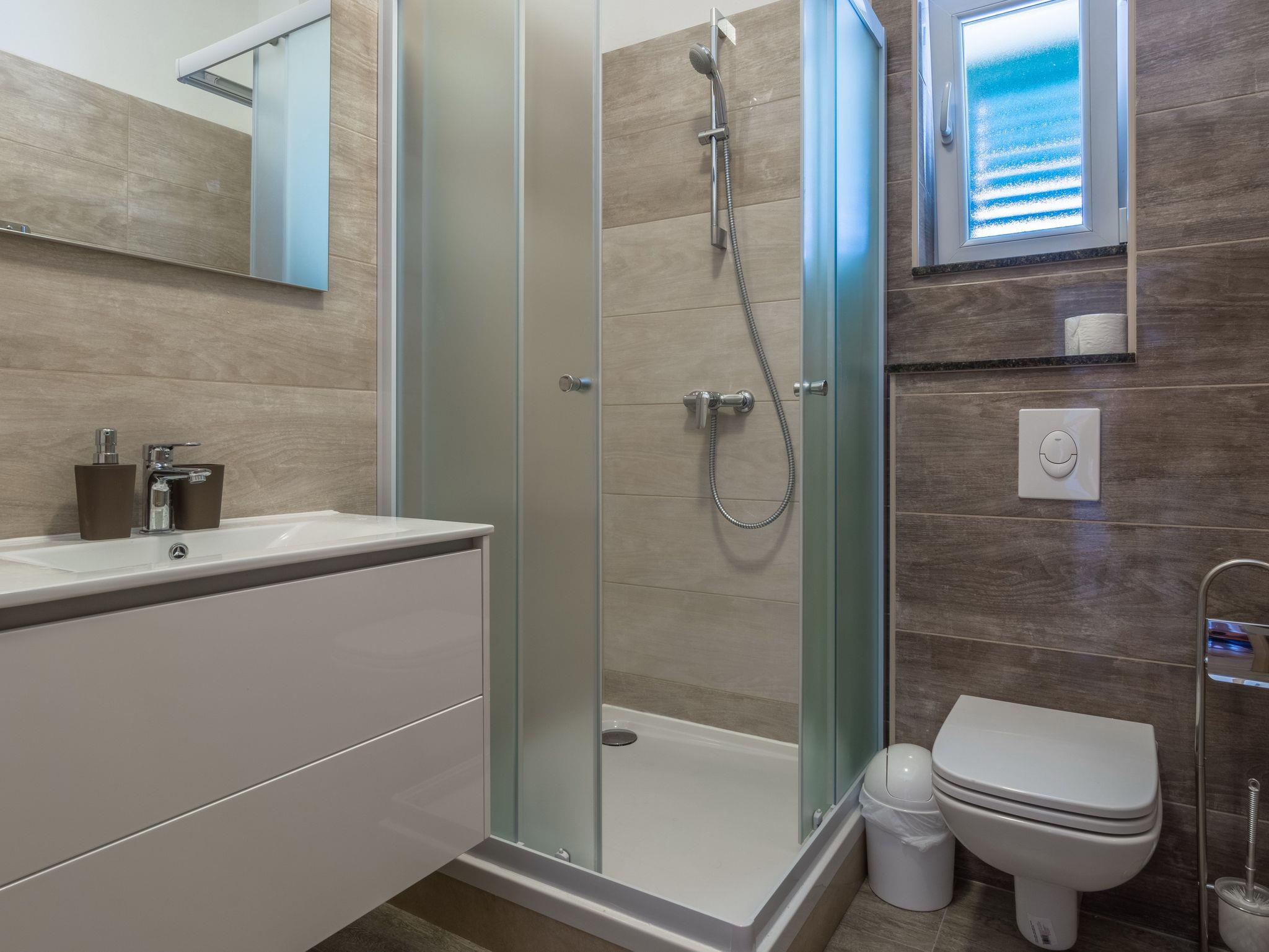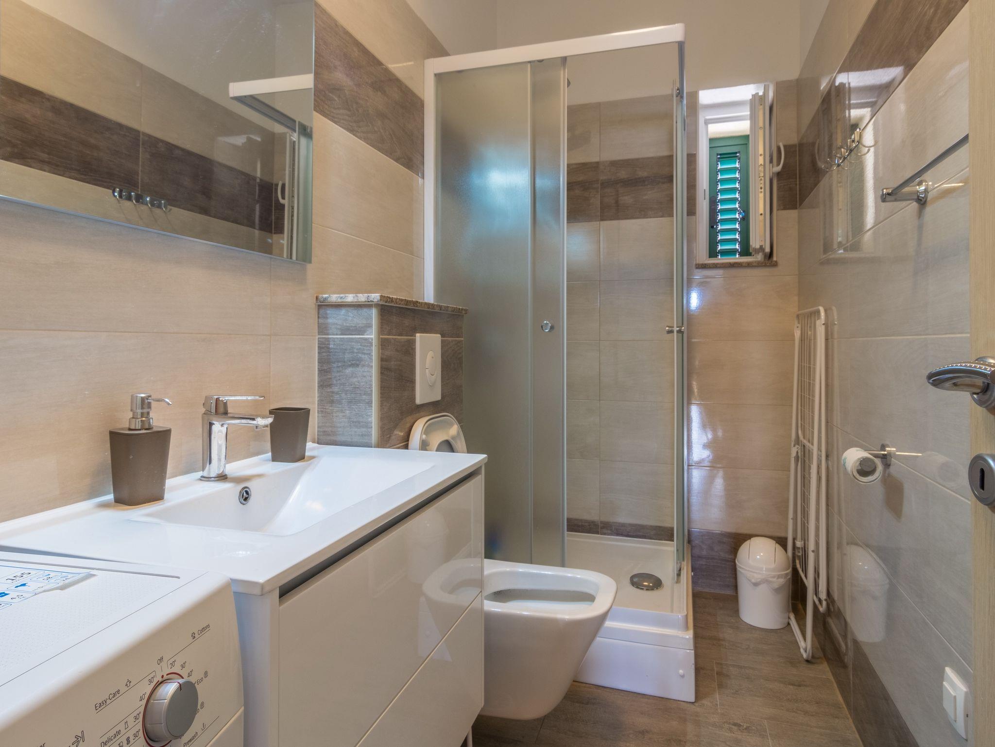 Ferienwohnung bietet Platz für 4 Gäste. Die Betten sind in Schlafzimmern, die es 2 gibt, innerhalb einer Gesamtfläche von 65m2, angeordnet. Die Gäste haben einen eigenen Balkon zur Verfügung, auf der sie in warmen Sommernächten genießen können. Das Apartment bietet Meerblick. Es ist erlaubt, Speisen auf dem Gemeinschafts-Grill vorzubereiten. IM PREIS INBEGRIFFEN: Kurtaxe, Endreinigung, Klimatisierung, Parkplatz, Internet, Kinderbett, Bügeleisen, Bügelbrett, Föhn, 1 Bett für Kinder (im Preis enthalten). VERBINDLICHE ZUSÄTZLICHE KOSTEN: Aufzahlung für Kurzaufenthalte (prozentualer Zuschlag pro Nächtigungsanzahl: 30% - 1, 20% - 2, 10% - 3). Die Verfügbarkeit zusätzlicher Dienstleistungen in Ihrem reservierten Termin und die Preise derselben (falls nicht aufgeführt) müssen im Voraus überprüft werden. Zusätzliche Dienstleistungen die in der Zahlungsaufforderung nicht aufgeführt sind werden direkt beim Vermieter bezahlt, angenommen der Gast nutzt auch diese.