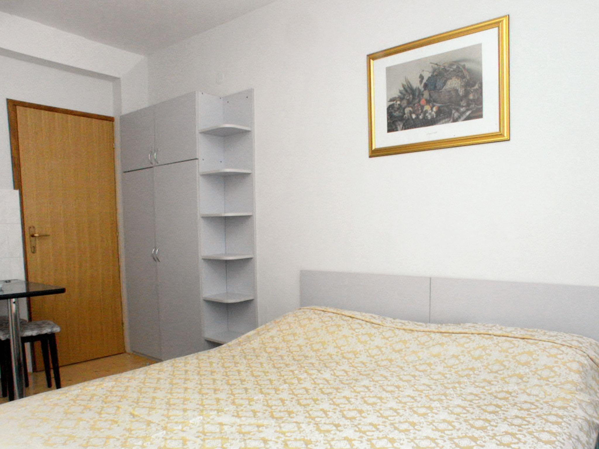 Studio bietet Platz für 2 Gäste. Die Betten sind in Schlafzimmern, die es 1 gibt, innerhalb einer Gesamtfläche von 13m2, angeordnet. In der Unterkunftseinheit besteht die Möglichkeit des Mitbringens von Haustieren gegen Aufpreis. Die reservierte Unterkunftseinheit hat keinen Balkon und keine Terrasse. IM PREIS INBEGRIFFEN: Kurtaxe, Endreinigung, Klimatisierung, Internet, Bügeleisen, Föhn, Sonnenschirm, Liegestühle. VERBINDLICHE ZUSÄTZLICHE KOSTEN: Aufzahlung für Kurzaufenthalte (prozentualer Zuschlag pro Nächtigungsanzahl: 30% - 1, 20% - 2, 10% - 3). UNVERBINDLICHE ZUSÄTZLICHE KOSTEN: Haustiere (3,00 € pro Nacht). Die Verfügbarkeit zusätzlicher Dienstleistungen in Ihrem reservierten Termin und die Preise derselben (falls nicht aufgeführt) müssen im Voraus überprüft werden. Zusätzliche Dienstleistungen die in der Zahlungsaufforderung nicht aufgeführt sind werden direkt beim Vermieter bezahlt, angenommen der Gast nutzt auch diese.