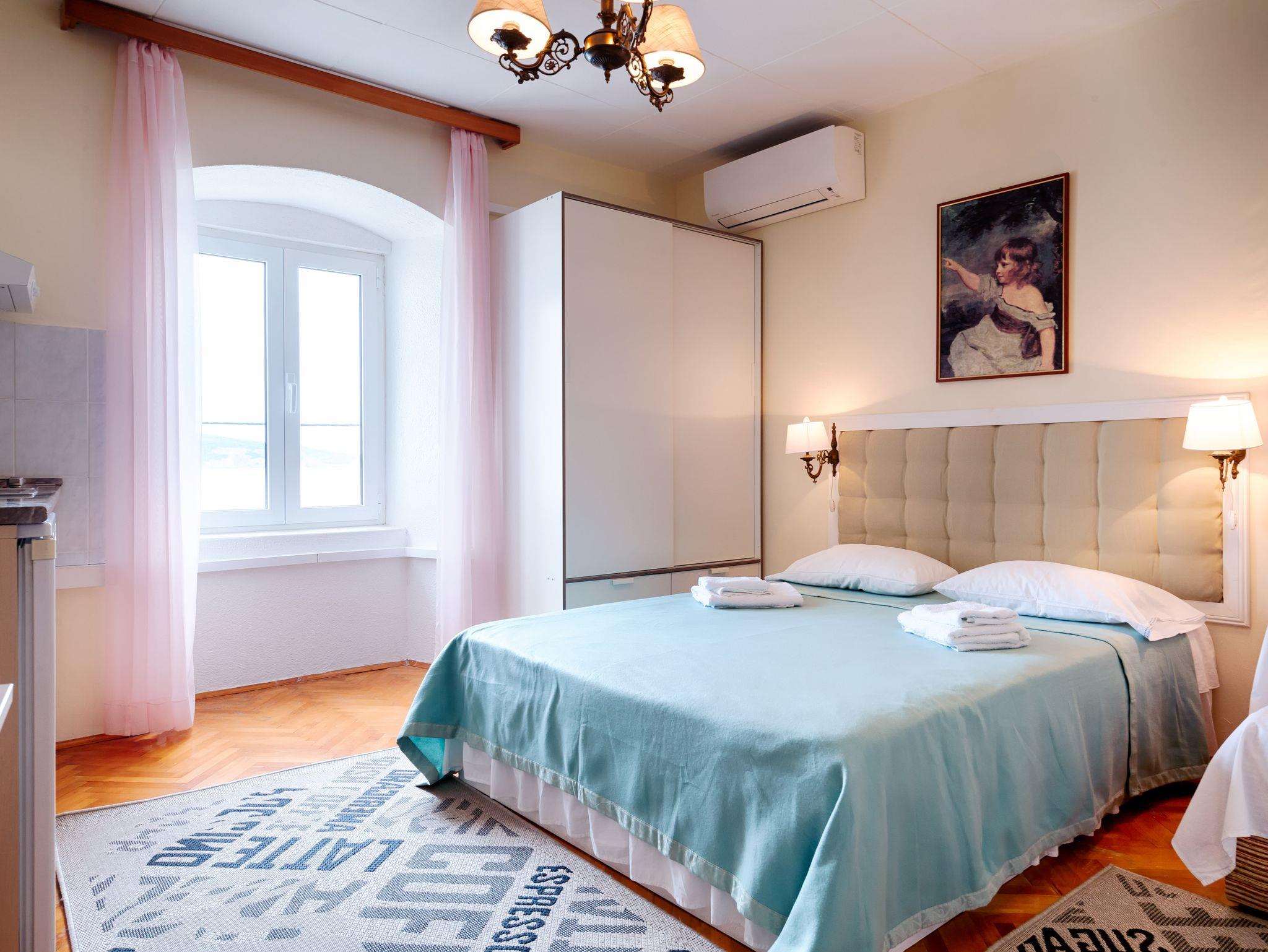 Studio bietet Platz für 3 Gäste. Die Betten sind in Schlafzimmern, die es 1 gibt, innerhalb einer Gesamtfläche von 16m2, angeordnet. Das Studio-Apartment bietet Meerblick. In der Unterkunftseinheit besteht die Möglichkeit des Mitbringens von Haustieren gegen Aufpreis. Die reservierte Unterkunftseinheit verfügt über einen gemeinsamen Balkon. Die reservierte Unterkunftseinheit verfügt über einen gemeinsame Terrasse. IM PREIS INBEGRIFFEN: Kurtaxe, Endreinigung, Klimatisierung, Internet, Bügeleisen, Bügelbrett, Föhn. VERBINDLICHE ZUSÄTZLICHE KOSTEN: Aufzahlung für Kurzaufenthalte (prozentualer Zuschlag pro Nächtigungsanzahl: 30% - 1, 20% - 2, 10% - 3). UNVERBINDLICHE ZUSÄTZLICHE KOSTEN: Haustiere (3,00 € pro Nacht). Die Verfügbarkeit zusätzlicher Dienstleistungen in Ihrem reservierten Termin und die Preise derselben (falls nicht aufgeführt) müssen im Voraus überprüft werden. Zusätzliche Dienstleistungen die in der Zahlungsaufforderung nicht aufgeführt sind werden direkt beim Vermieter bezahlt, angenommen der Gast nutzt auch diese.