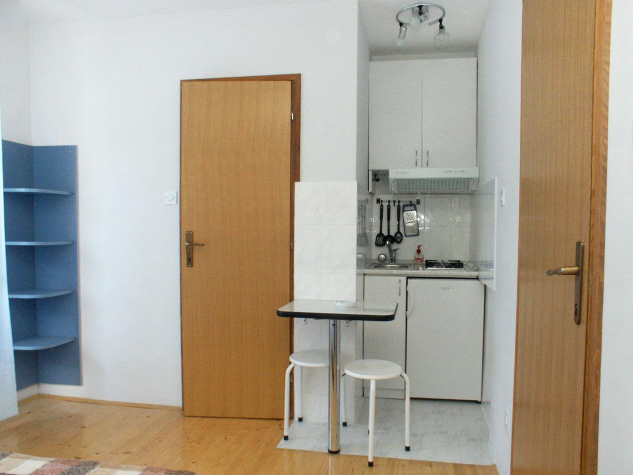 Studio bietet Platz für 2 Gäste. Die Betten sind in Schlafzimmern, die es 1 gibt, innerhalb einer Gesamtfläche von 14m2, angeordnet. In der Unterkunftseinheit besteht die Möglichkeit des Mitbringens von Haustieren gegen Aufpreis. Die reservierte Unterkunftseinheit hat keinen Balkon und keine Terrasse. IM PREIS INBEGRIFFEN: Kurtaxe, Endreinigung, Klimatisierung, Internet, Bügeleisen, Föhn, Sonnenschirm, Liegestühle. VERBINDLICHE ZUSÄTZLICHE KOSTEN: Aufzahlung für Kurzaufenthalte (prozentualer Zuschlag pro Nächtigungsanzahl: 30% - 1, 20% - 2, 10% - 3). UNVERBINDLICHE ZUSÄTZLICHE KOSTEN: Haustiere (3,00 € pro Nacht). Die Verfügbarkeit zusätzlicher Dienstleistungen in Ihrem reservierten Termin und die Preise derselben (falls nicht aufgeführt) müssen im Voraus überprüft werden. Zusätzliche Dienstleistungen die in der Zahlungsaufforderung nicht aufgeführt sind werden direkt beim Vermieter bezahlt, angenommen der Gast nutzt auch diese.