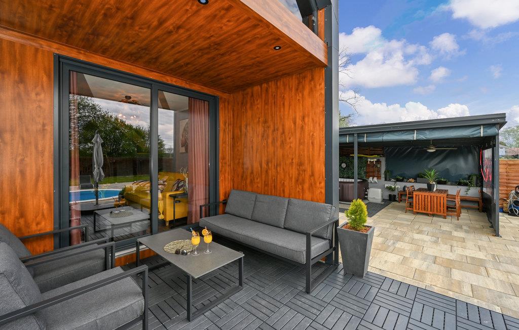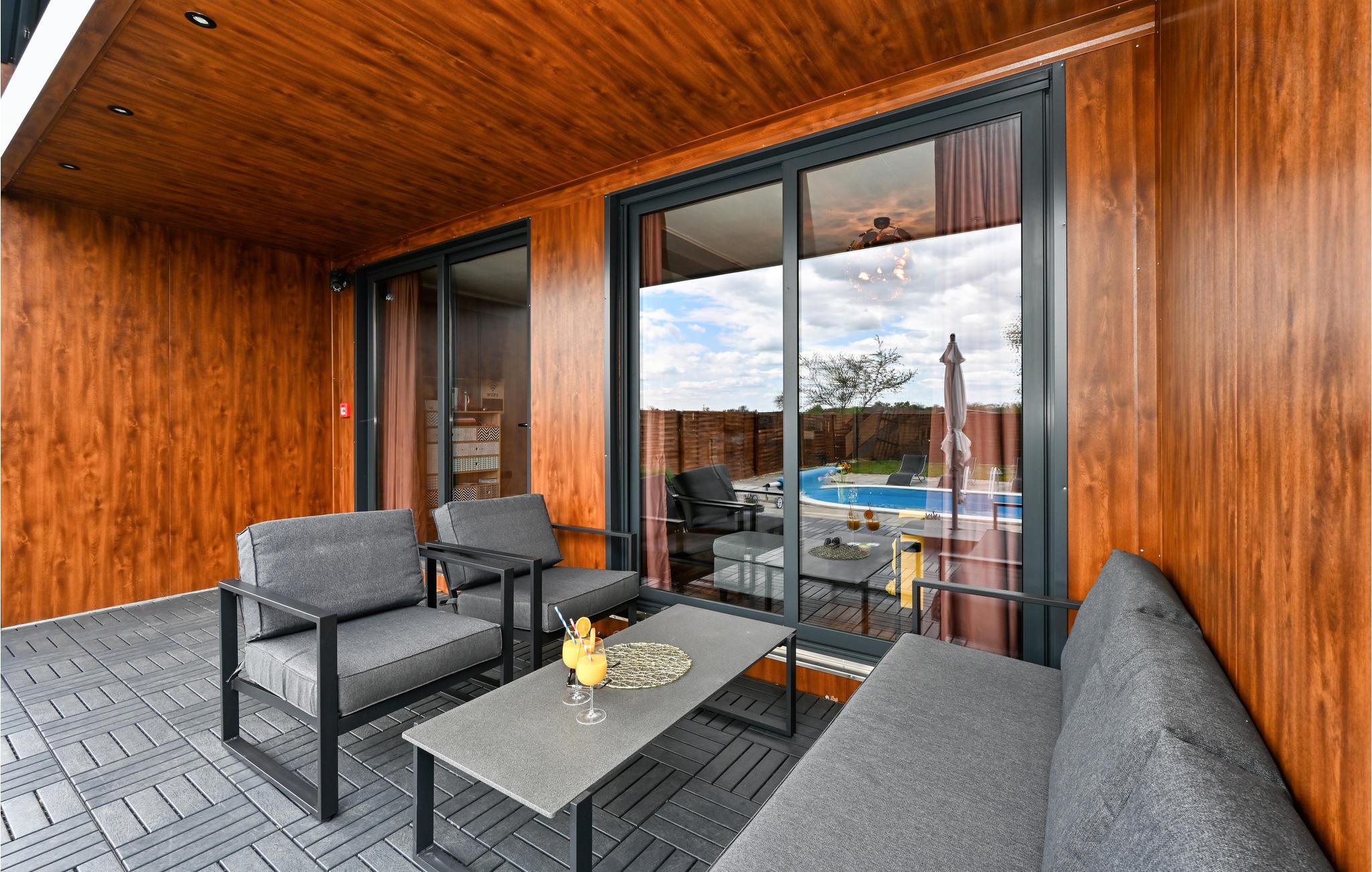 Forkæl jer selv med en stille pause fra jeres hverdag i dette elegante og komfortable feriehus med pool nær grænsen.
