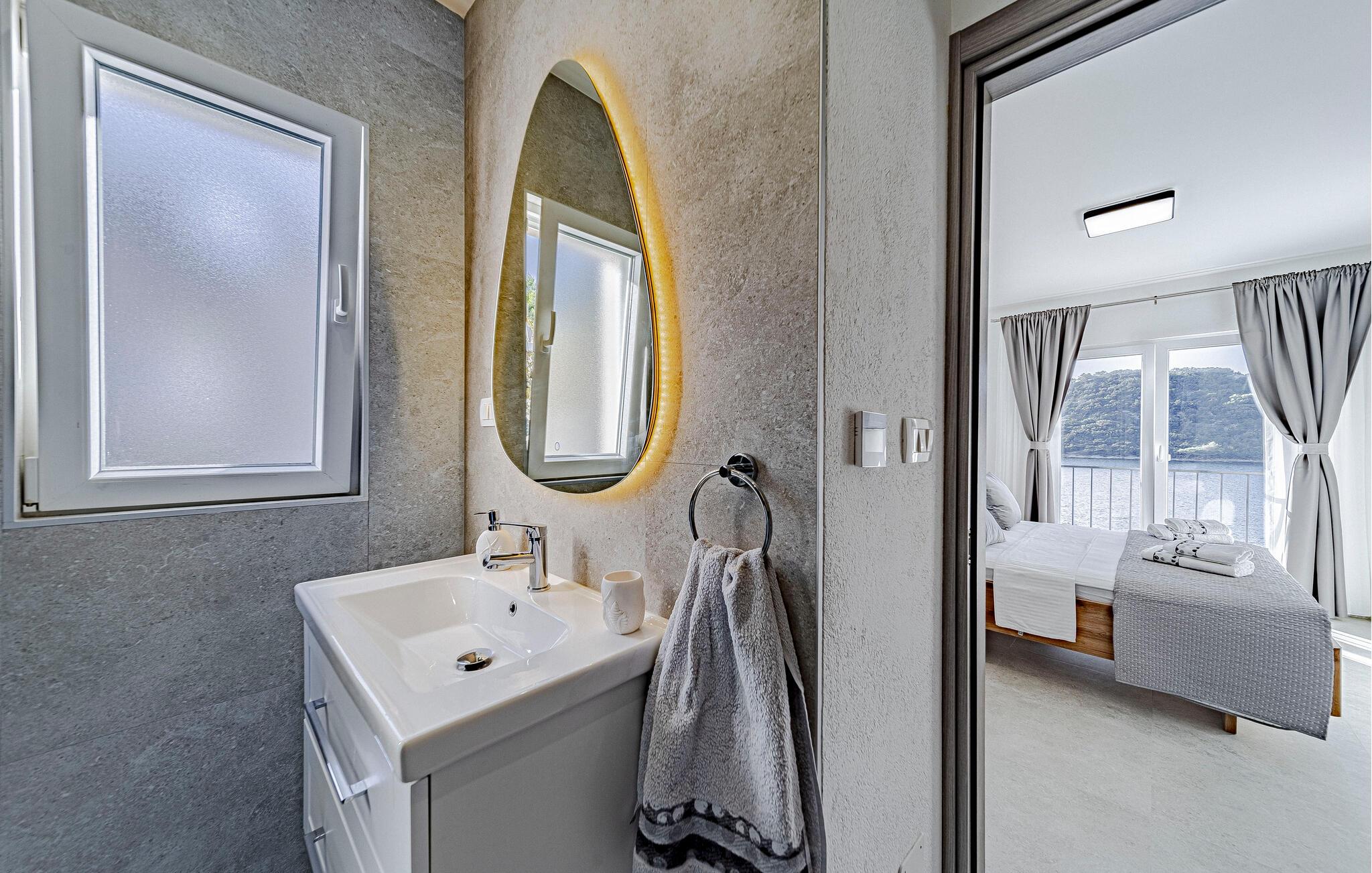 Rigelig plads, lyse værelser og en smuk udsigt over det glitrende hav venter jer i dette moderne feriehus ved Adriaterhavskysten. Brug det fuldt udstyrede køkken til at skabe lokale specialiteter og slap af i det stilfulde opholdsområde med en god bog, en film eller en hyggelig spilleaften.