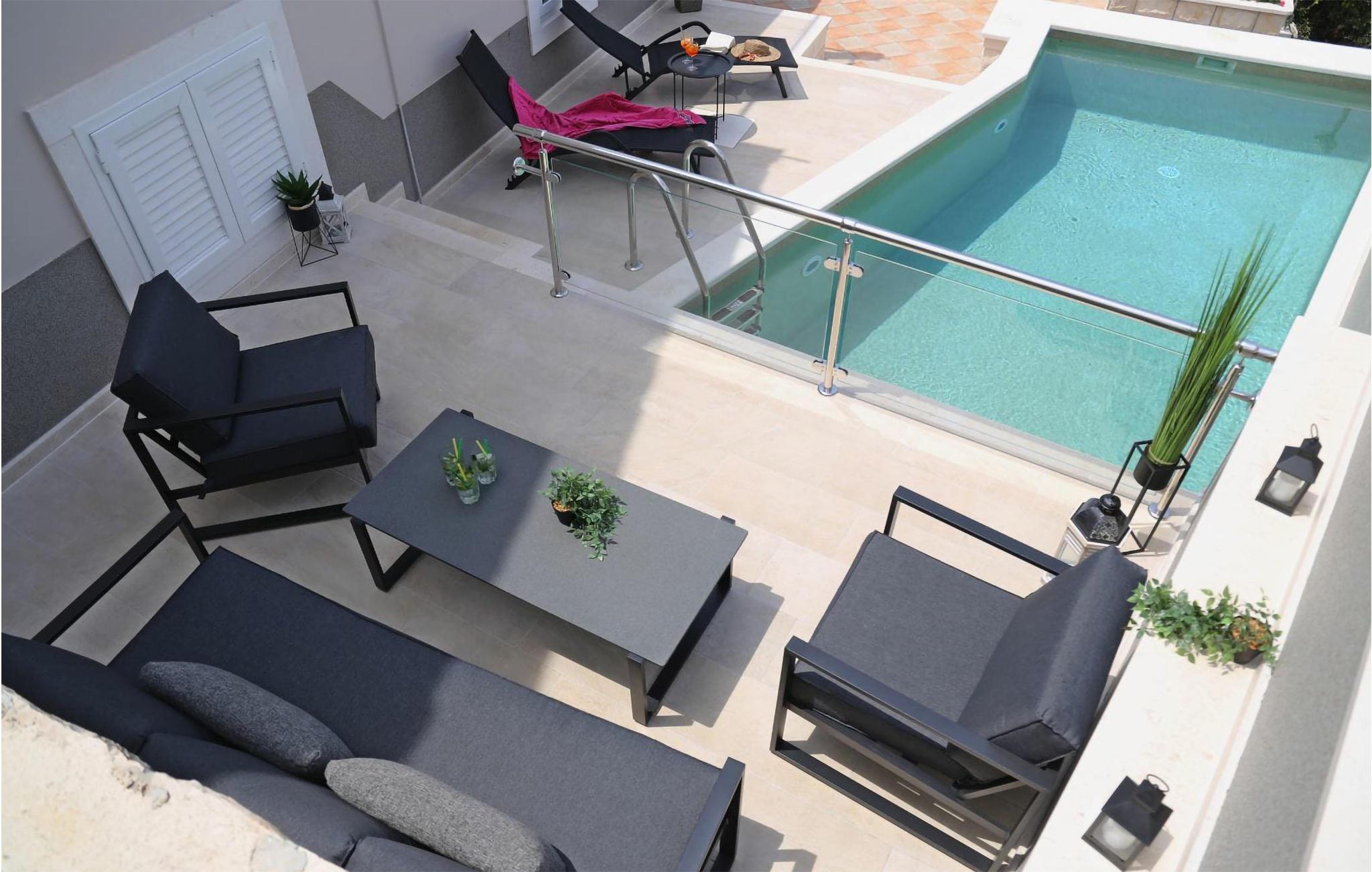 Topmoderne lejlighed med pool, stor terrasse og panoramaudsigt til havet.