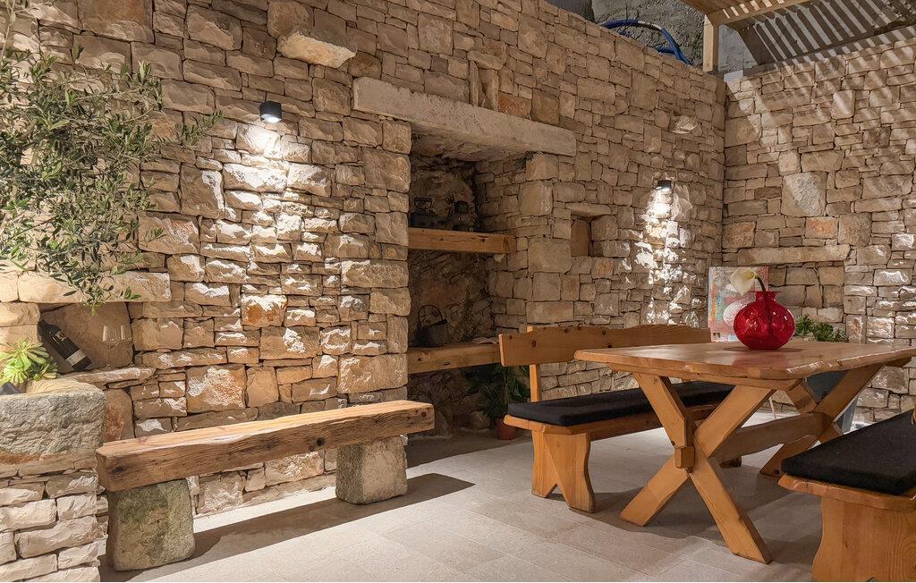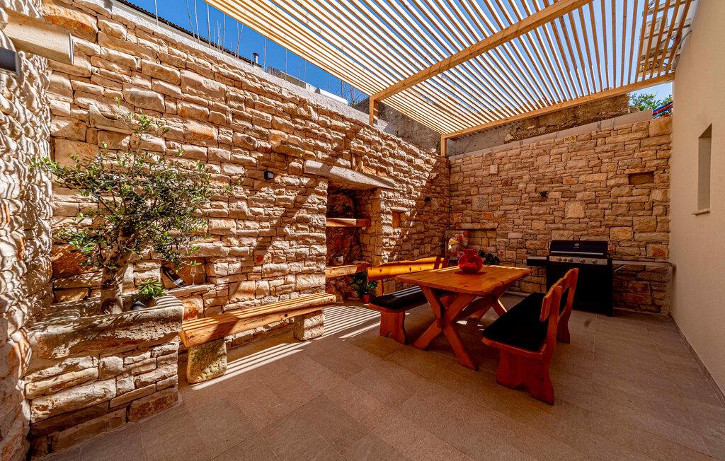 Udenfor venter en rummelig terrasse med imponerende udsigt over det glitrende hav. Start dagen med morgenmad under åben himmel, afslut aftenen med et glas vin, eller nyd fælles stunder med en hyggelig grillaften i den charmerende, let skyggefulde patio.