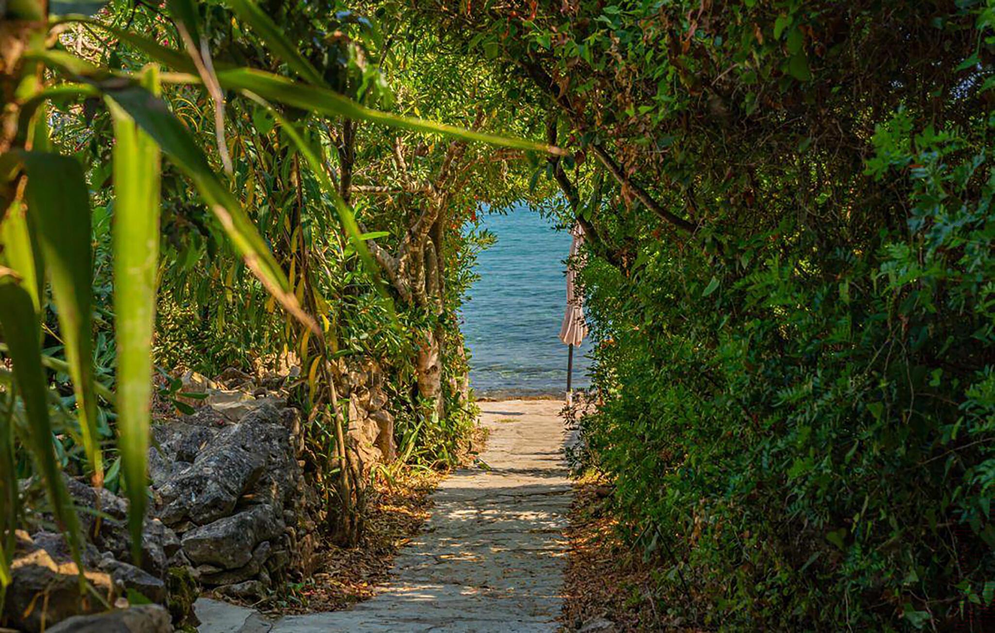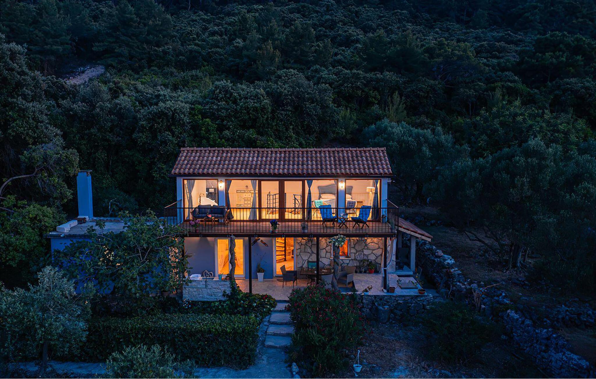 En sti fører de få meter ned til havet, hvor en badebro venter på jer, så I komfortabelt kan hoppe i vandet. En sand luksus, for I kan nyde dette stykke hav helt for jer selv. I kan også udforske øen, for meget tæt på huset kan finder I afmærkede vandrestier og mountainbikestier, og I kan finde skygge i de tætte skove, olivenlunde og vinmarker. I kan også udforske øens små landsbyer og smukke sandstrande.