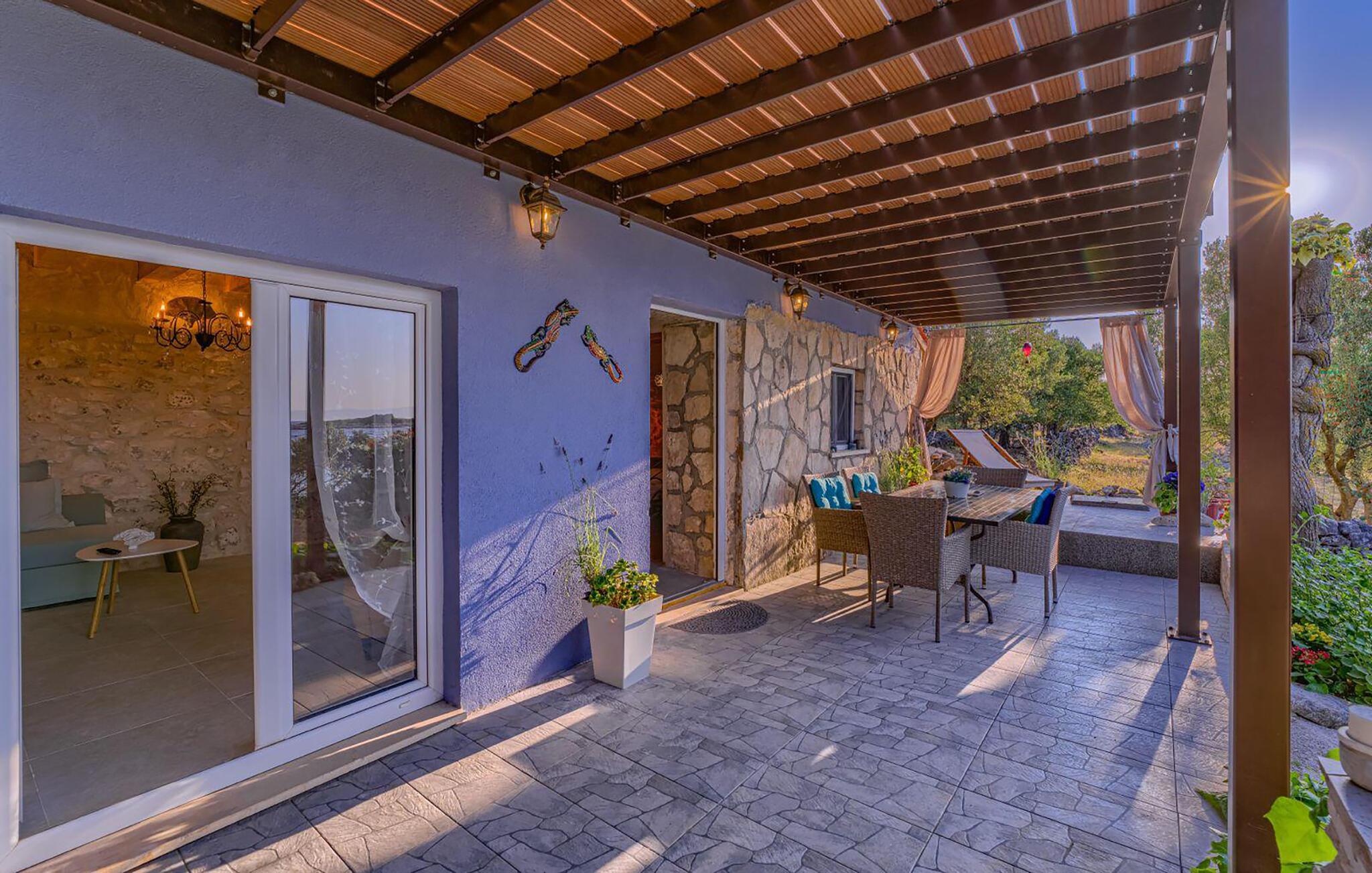 Ønsker I at have privatliv og havet lige uden for døren? Så er I kommet til det rette stes! Huset byder jeres lille familie eller to vennepar velkommen. Den meget rolige beliggenhed lover jer en afslappende ferie, som I kan tilbringe ikke kun i de smukke værelser, men også på den store terrasse med en smuk, beplantet pergola. Her kan I nyde jeres måltider med en fantastisk panoramaudsigt over havet.