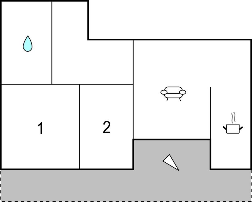 Opholdsstue/køkken - 1 Soveplads. (Sofa, madras eller lignende).