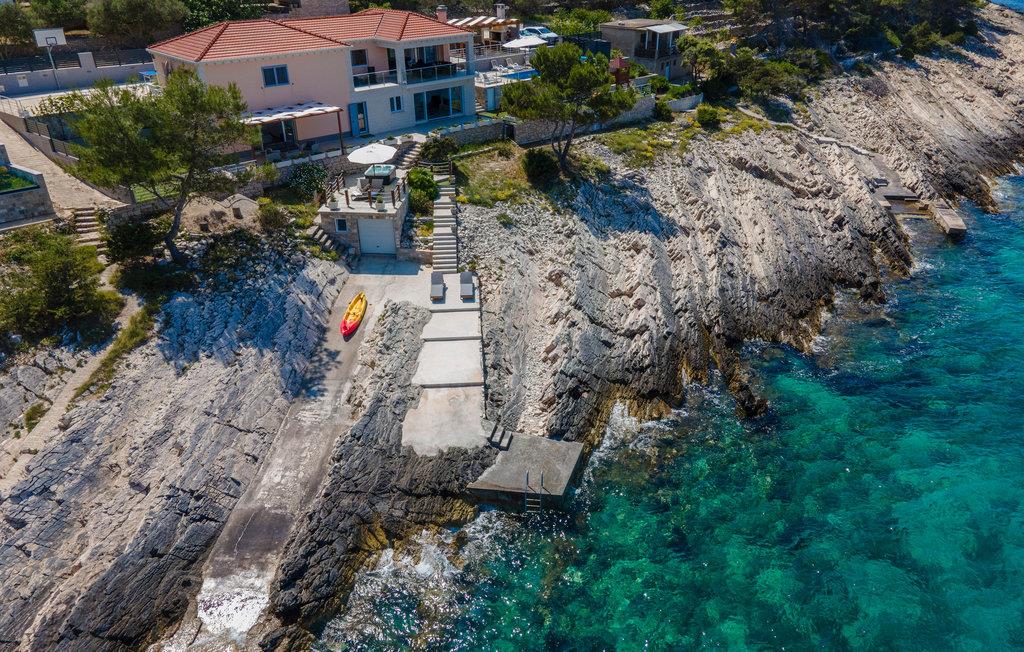 Tilbring jeres ferie i Middeldalmatien, på den fabelagtige ø Korcula, som I kan nå fra fastlandet fra færgehavnene i f.eks. Split eller Dubrovnik. Dette moderne feriehus med fantastisk beliggenhed ved havet, er jeres chance for en helt unik oplevelse. De rummelige værelser er stilfuldt indrettet og med al udstyr for en hyggelig ferie. Huset byder komfort med 4 soveværelser, en åben opholdsstue og 4 badeværelser. Der er et rum med videospil og der er også et fitnessrum til rådighed. Nud den dejlige panoramaudsigt, mens I bader i poolen, eller forbereder en romantisk middag på terassen med grill. Feriehuset er børnevenligt og perfekt egnet til en ferie med hele familien. Til de mindste er der en stor sandkasse, en rutsjebane og en gynge. Vi er sikker på, at I vil tage mange dejlige billeder med hjem herfra, af selskaber ved poolen eller ved grillen, dage ved havet, konkurrencerne i bordtennis eller billard og måske frisk fanget fisk. Udenfor denne oase er øen Korcula det perfekte sted for at gå på opdagelse i naturen, restauranterne og nattelivet. Betagende landskab med skøn natur og det behagelige mediterrane klima venter jer her og gør, at I virkelig kan slappe af. Oplev duften af pinjeskoven og nyd den mediterrane atmosfære. Besøg også de andre byer på øen, såsom Blato, Vela Luka eller den lille by Prigradica. Byen Korpula er den verdenskendte opdagelsesrejsende og sømand Marco Polos fødested, derfor er der et Marco Polo museum i byen. 300 m grusvej fører til huset.