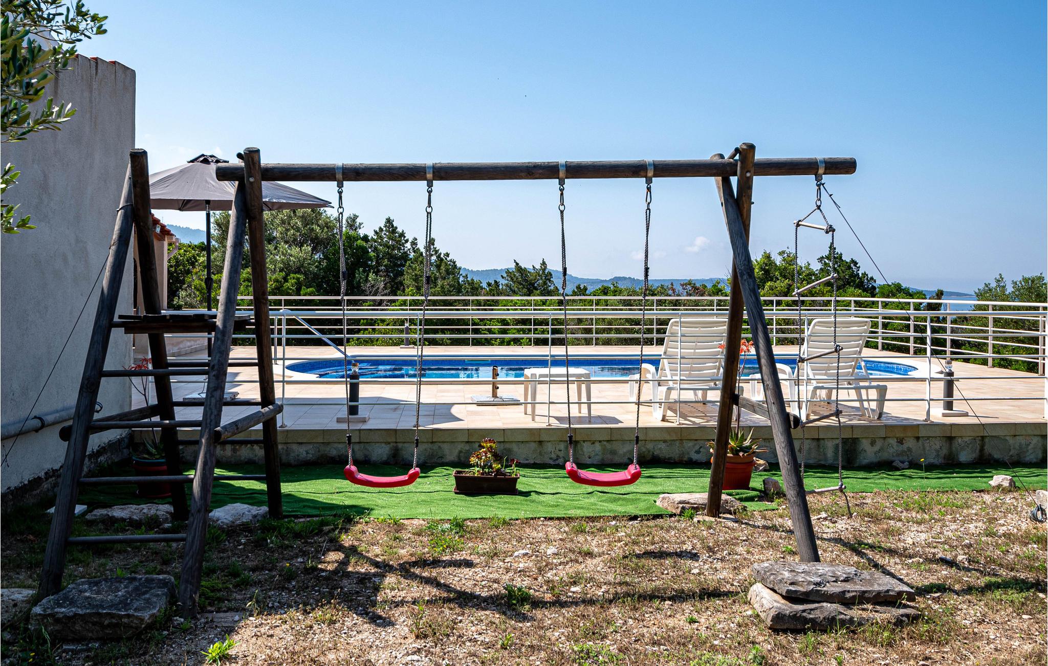 På den store terrasse og haven kan I sidde i skyggen, mens børnene morer sig i swimmingpoolen. Da huset er omgivet af smukke, adriatiske planter, har I masser af privatsfære.