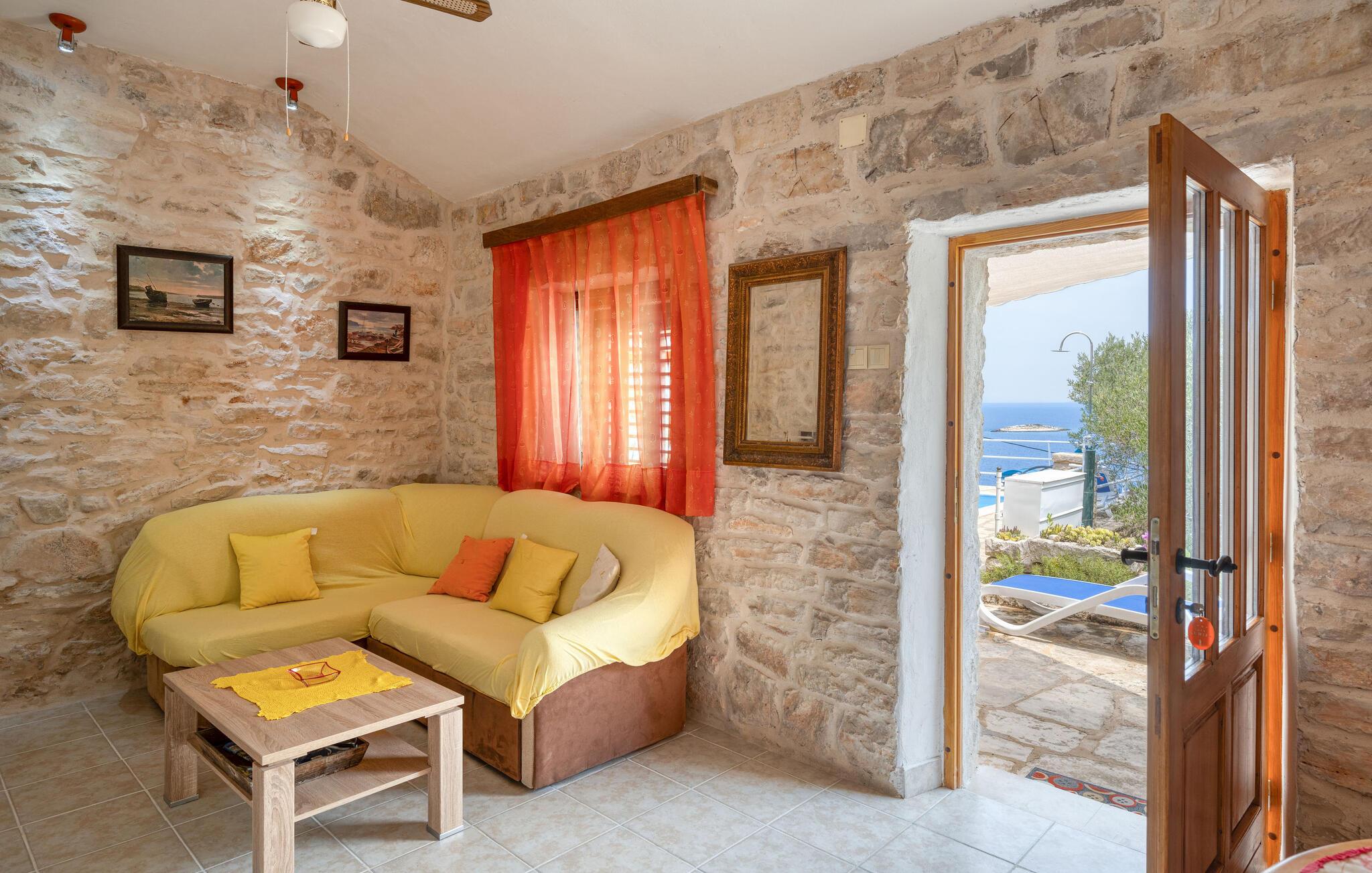 Velkommen til dette indbydende hus, der byder jer velkommen på en fantastisk beliggenhed ved havet og fortryller jer med sin storslåede udsigt. Efter jeres aktiviteter kan I slå jer ned i siddegruppen, diskutere dagens oplevelser og nyde den uforglemmelige havudsigt, mens I spiser sammen eller slapper af.