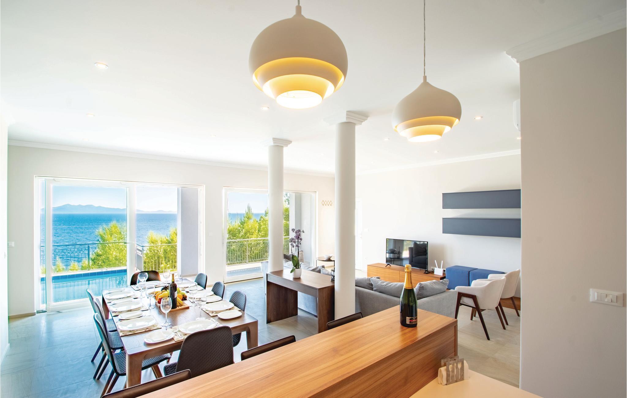 Dette drømmeskønne feriehus med pool ligger lige i nærheden af havet, ved den lille bugt Vinacac nær byen Brna, på øen Korcula. Klare linjer, luksuøse detaljer og materialevalg af høj kvalitet er overskriften i denne villa. Den er fordelt på to etager, i stueplan med et stort opholdsrum og fuldt udstyret køkken, et master-bedroom med badeværelse og en skøn terrasse med pool og en grill. Indre trapper fører til første sal med fire soveværelser med klimaanlæg, badeværelser en suite og en terrasse med havudsigt. Huset ligger kun få meter fra havet, med trin ned til et betonplateau, hvor I kan tage solbade og bade i havet.