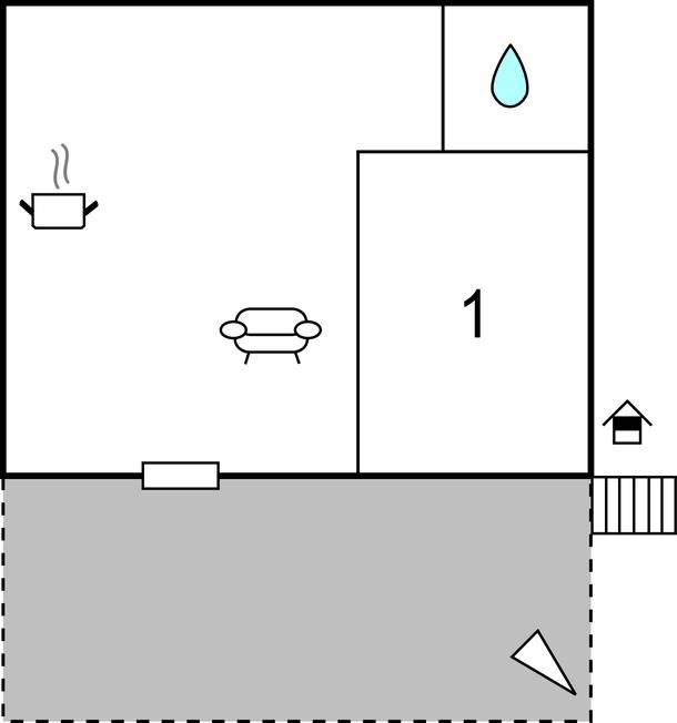 Opholdsstue/køkken 25m2 - 1 Soveplads. (Sofa, madras eller lignende).